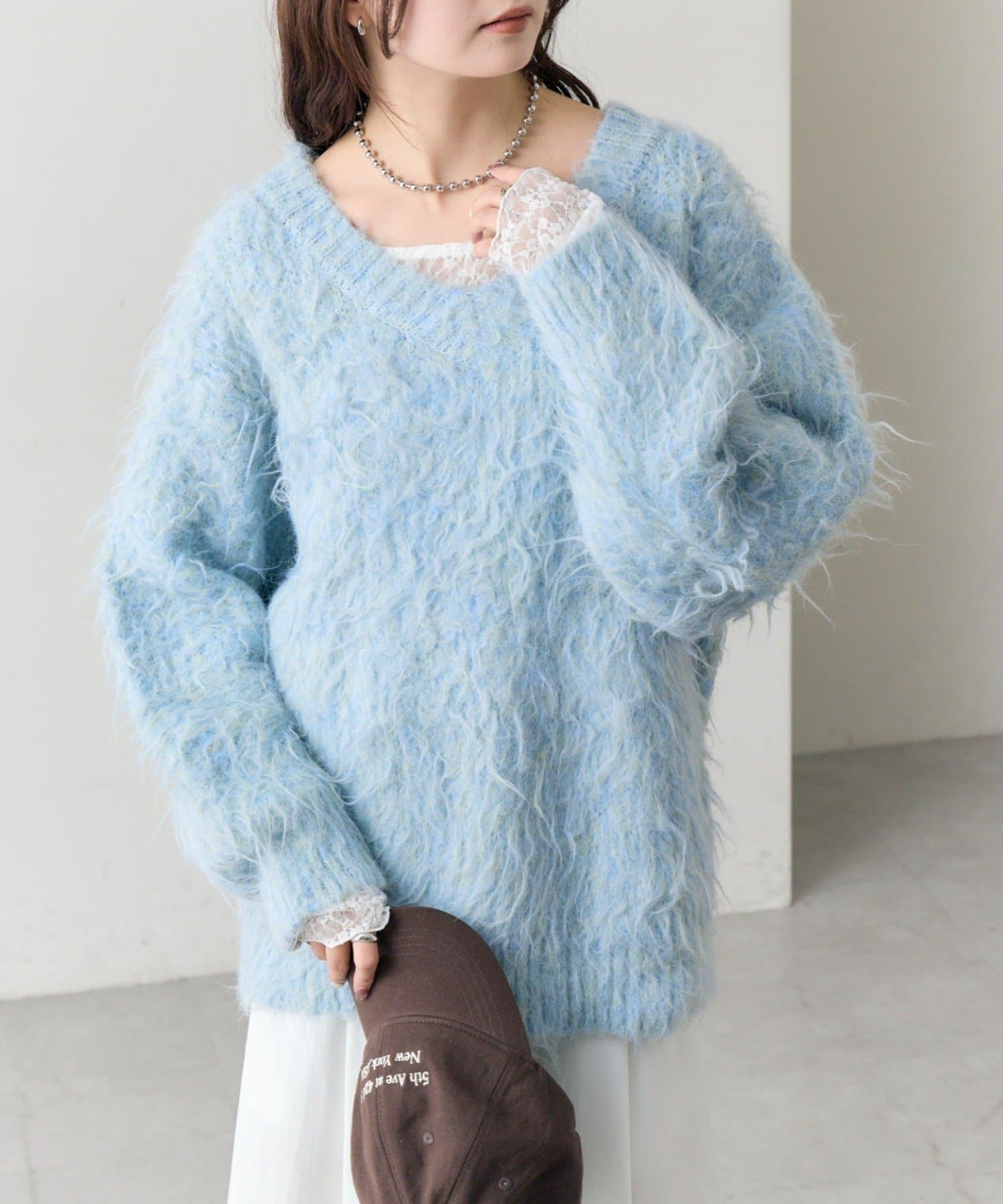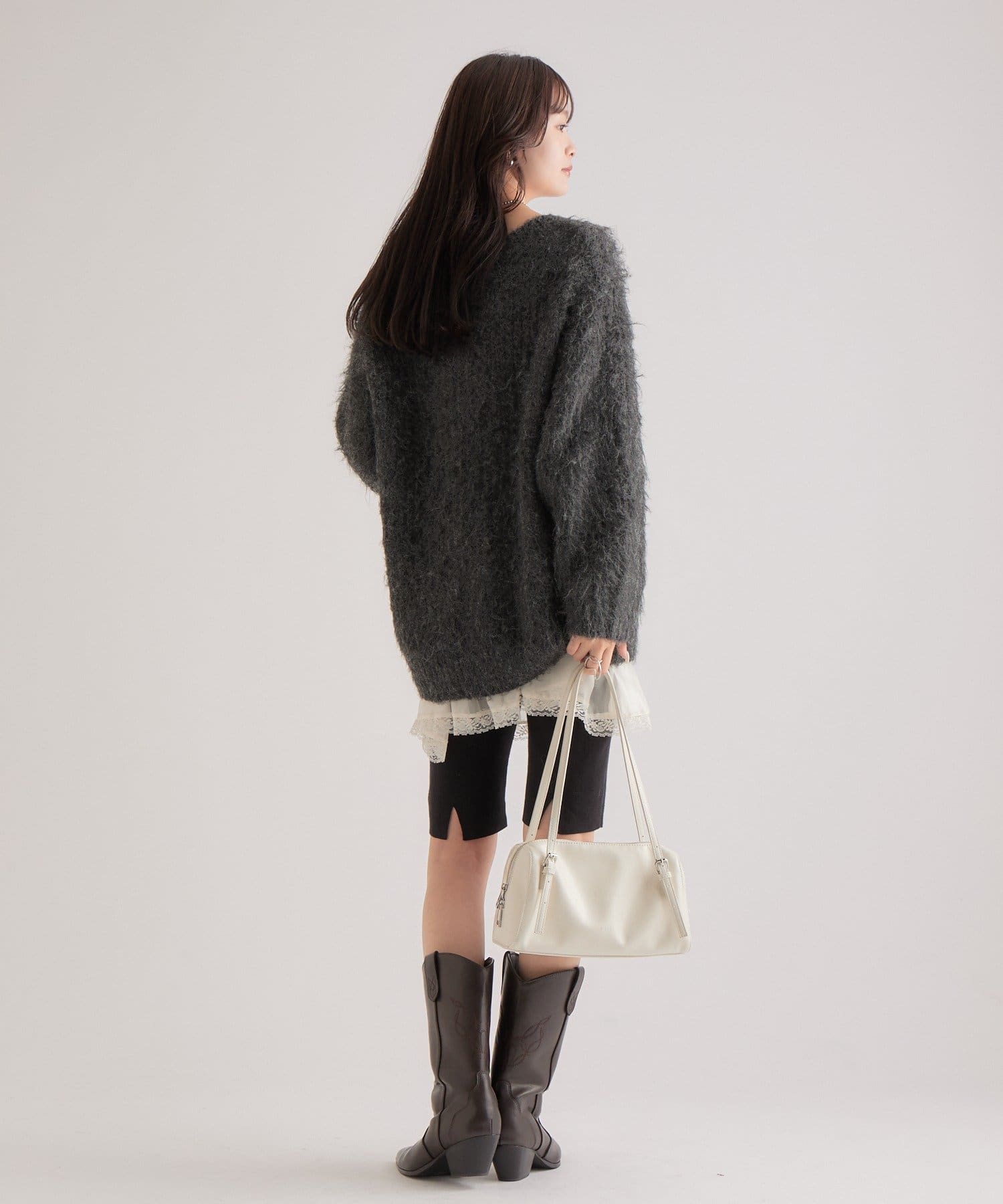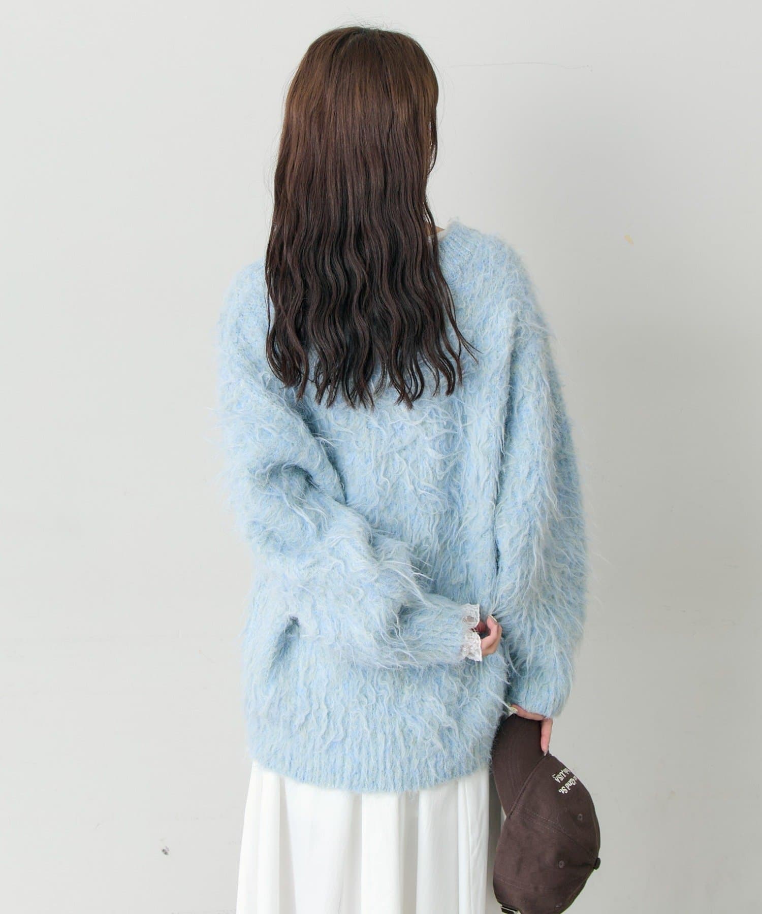 シャギー素材が魅力的♡前後両前で着られるふわふわニット!
