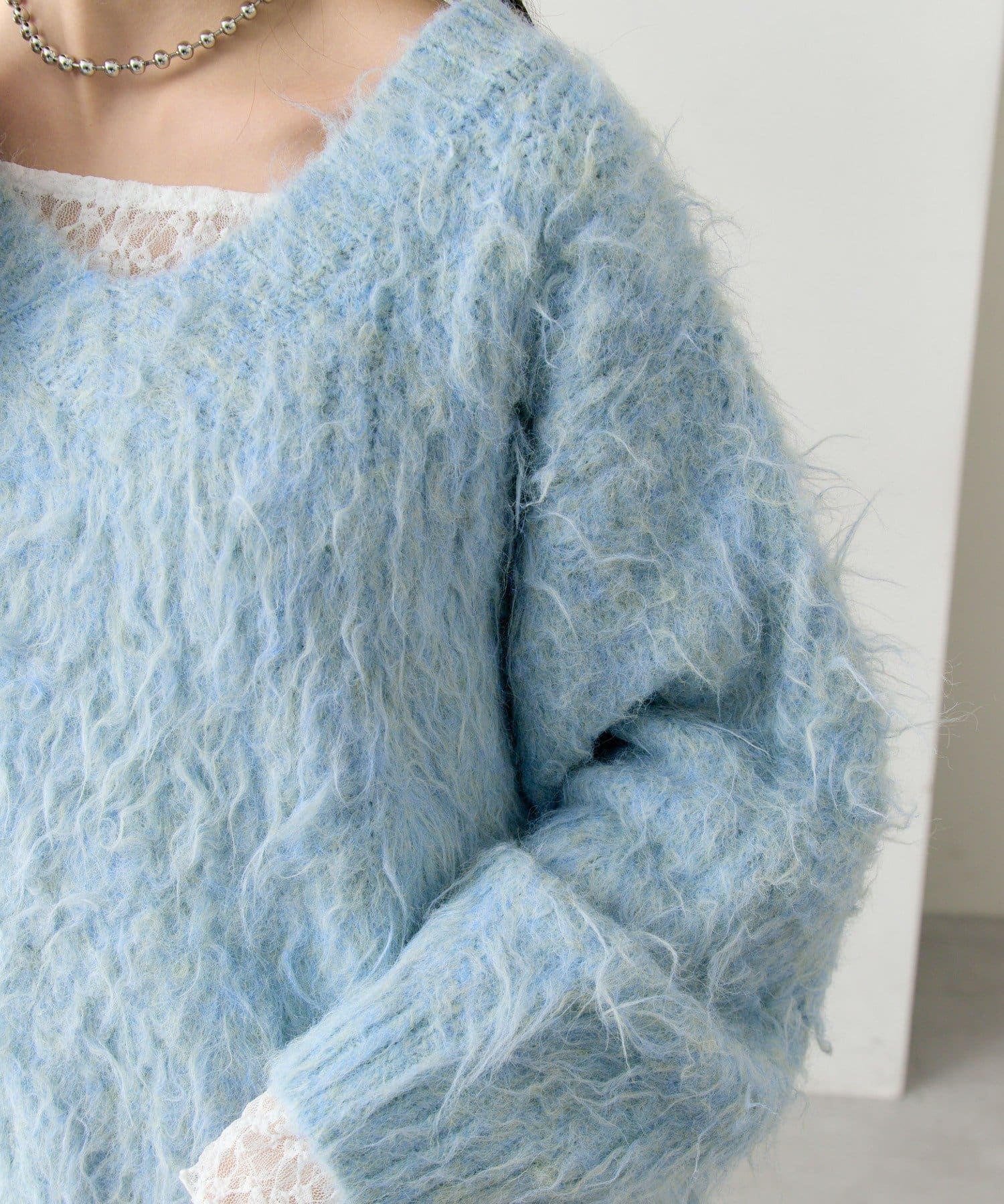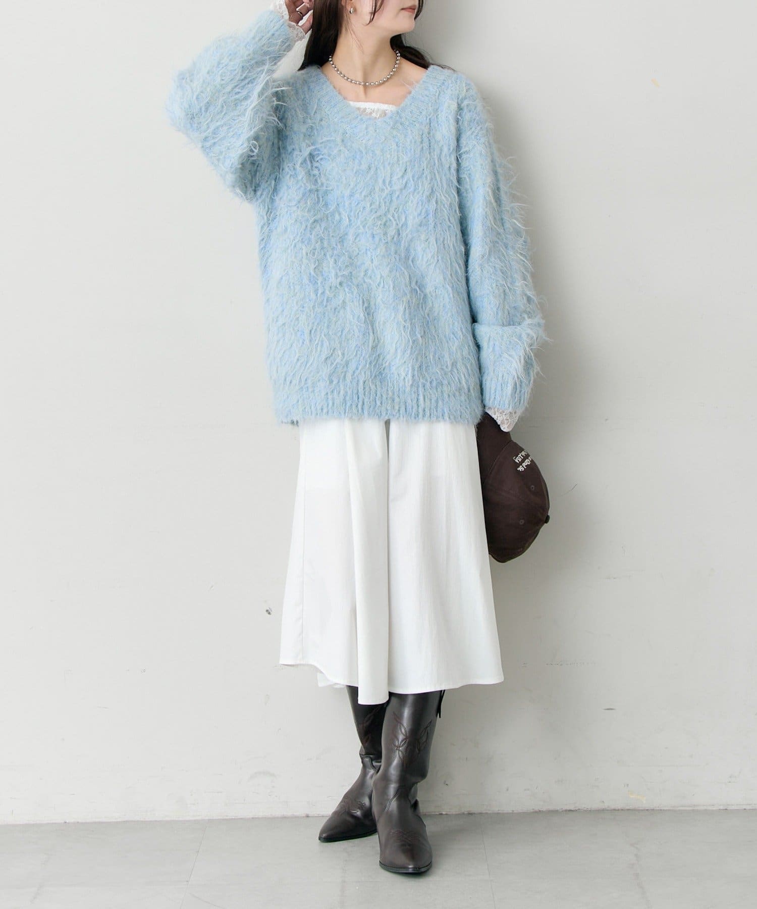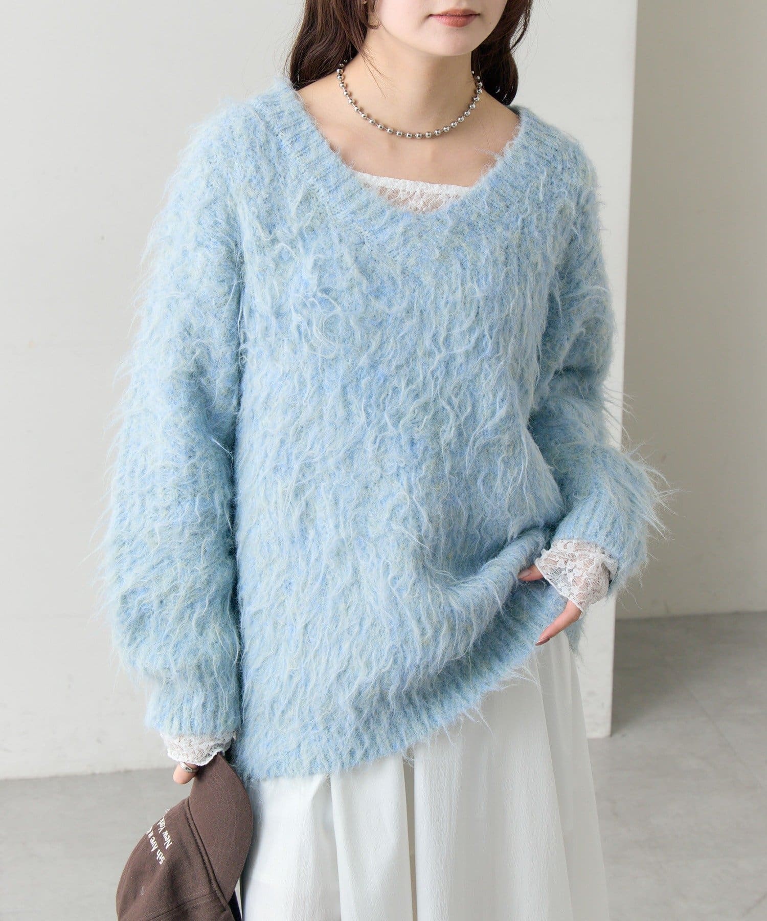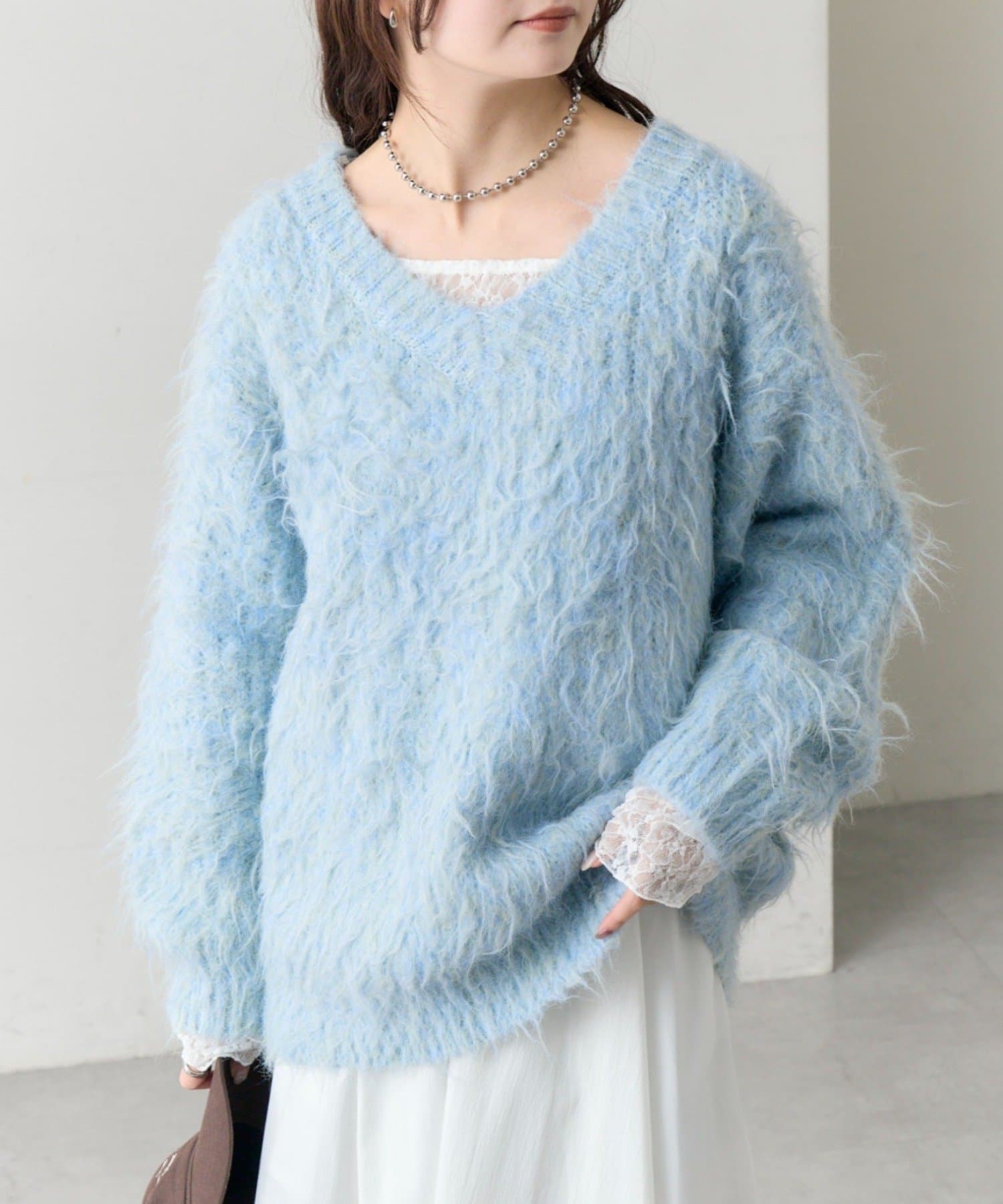 シャギー素材が魅力的♡前後両前で着られるふわふわニット!