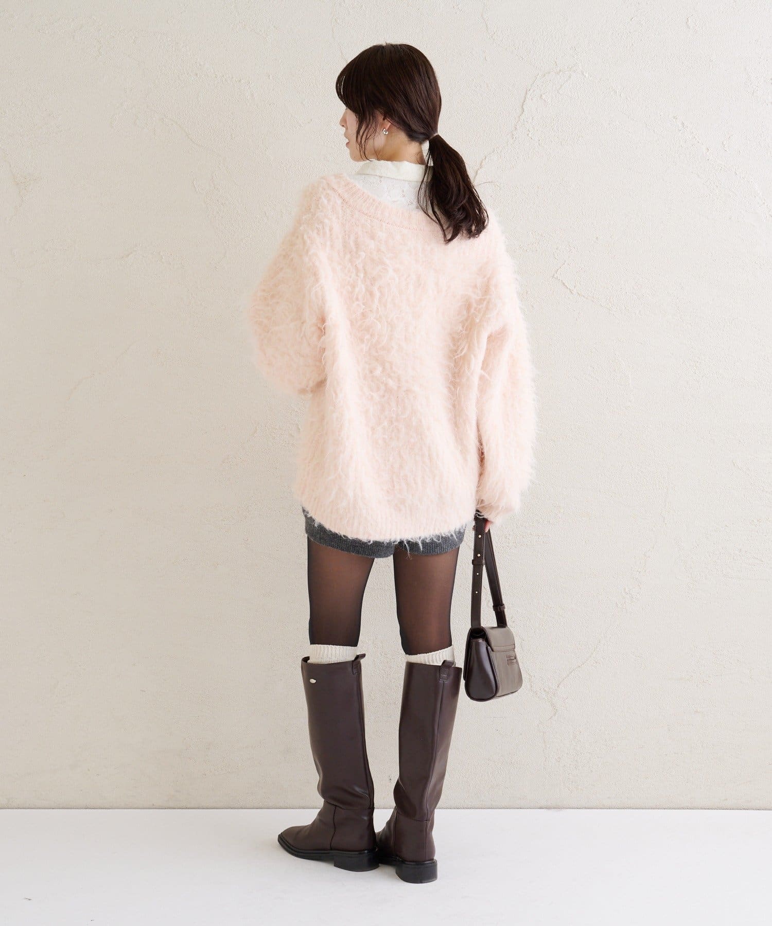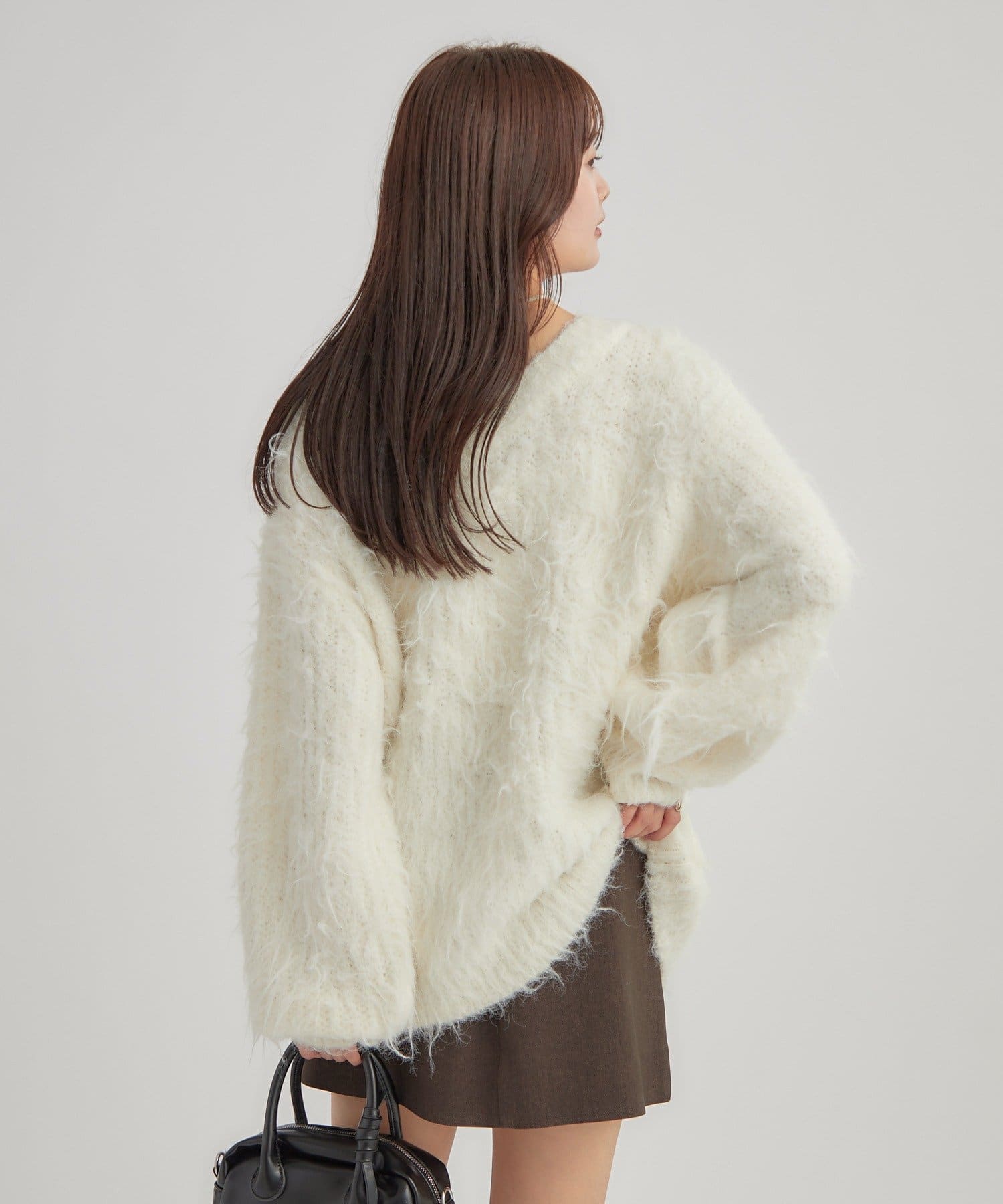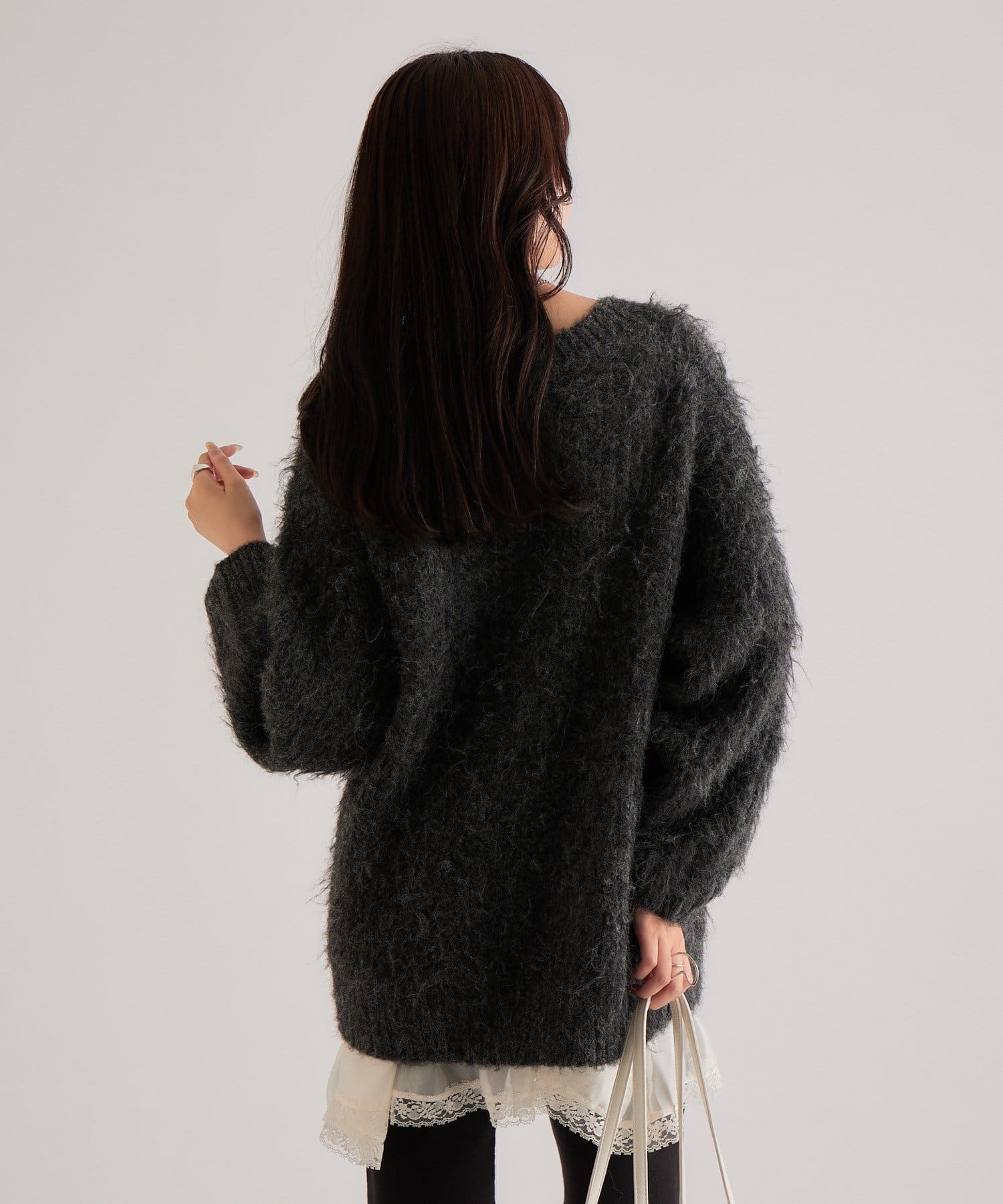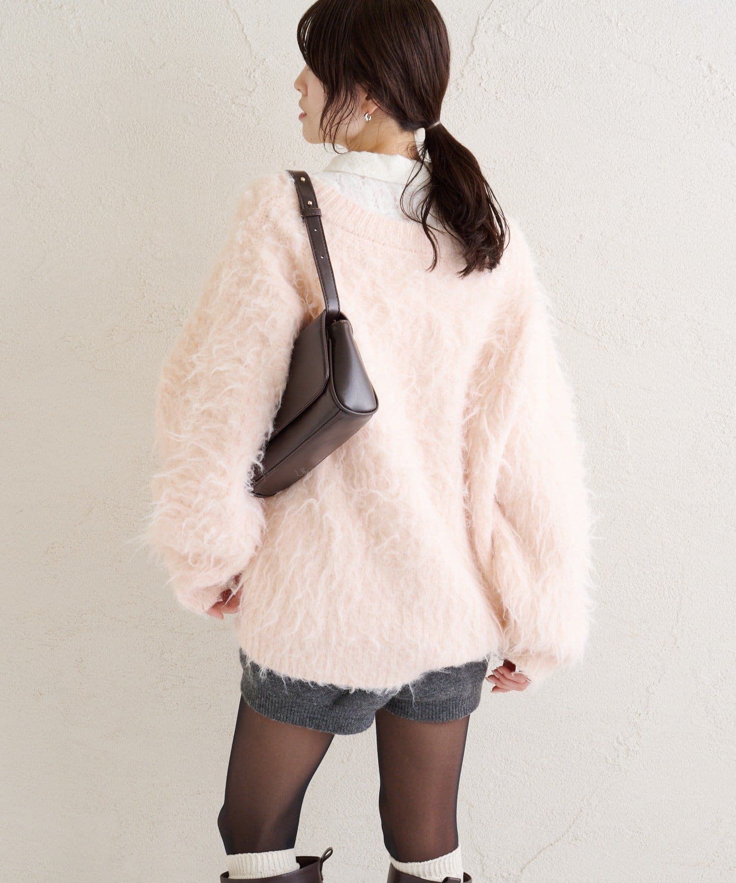 シャギー素材が魅力的♡前後両前で着られるふわふわニット!