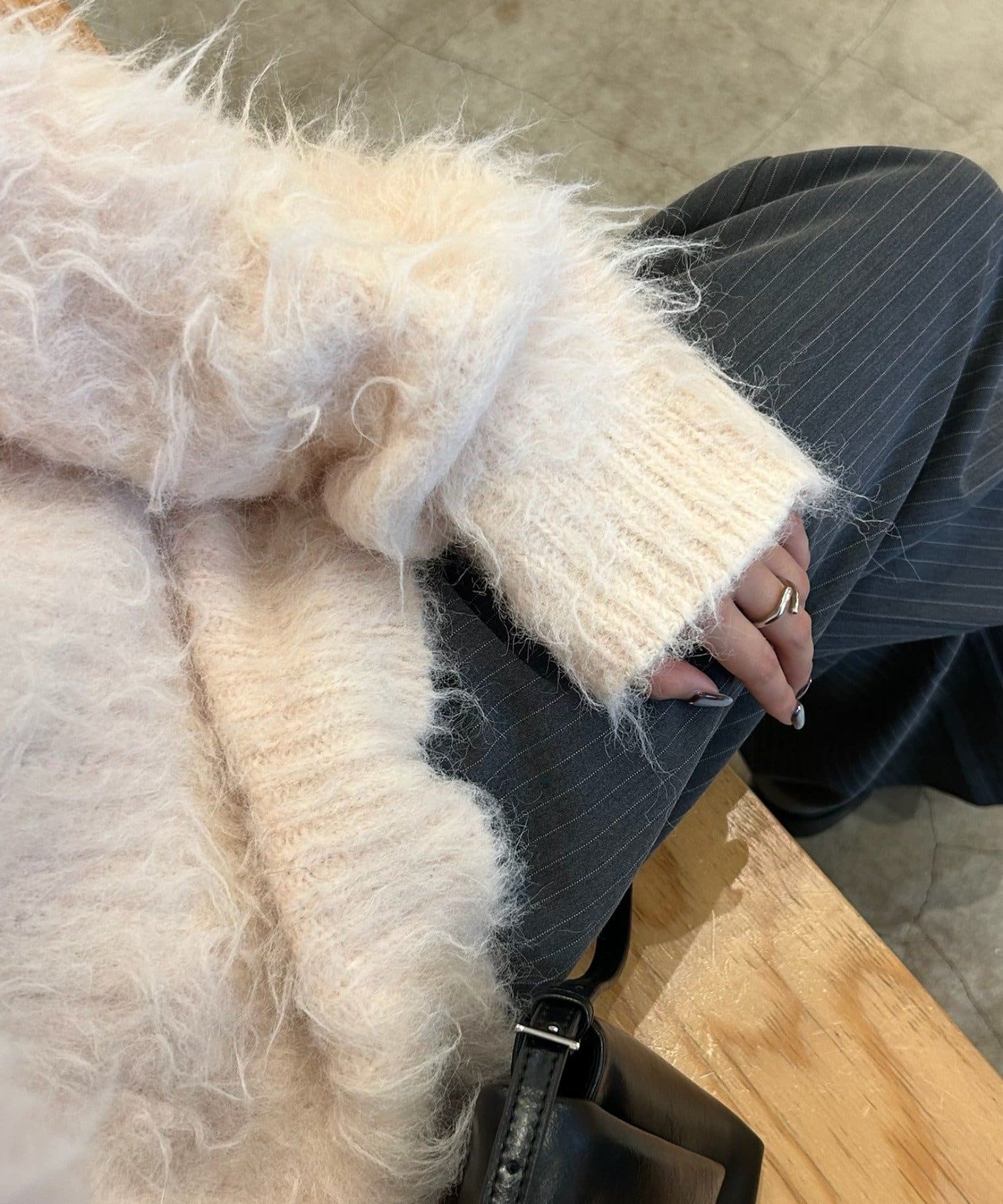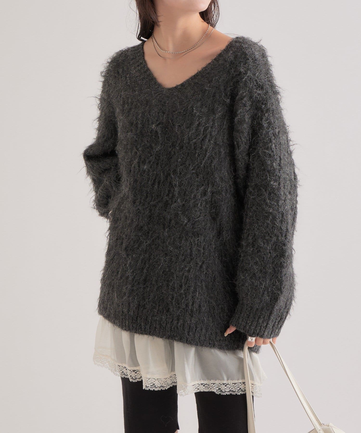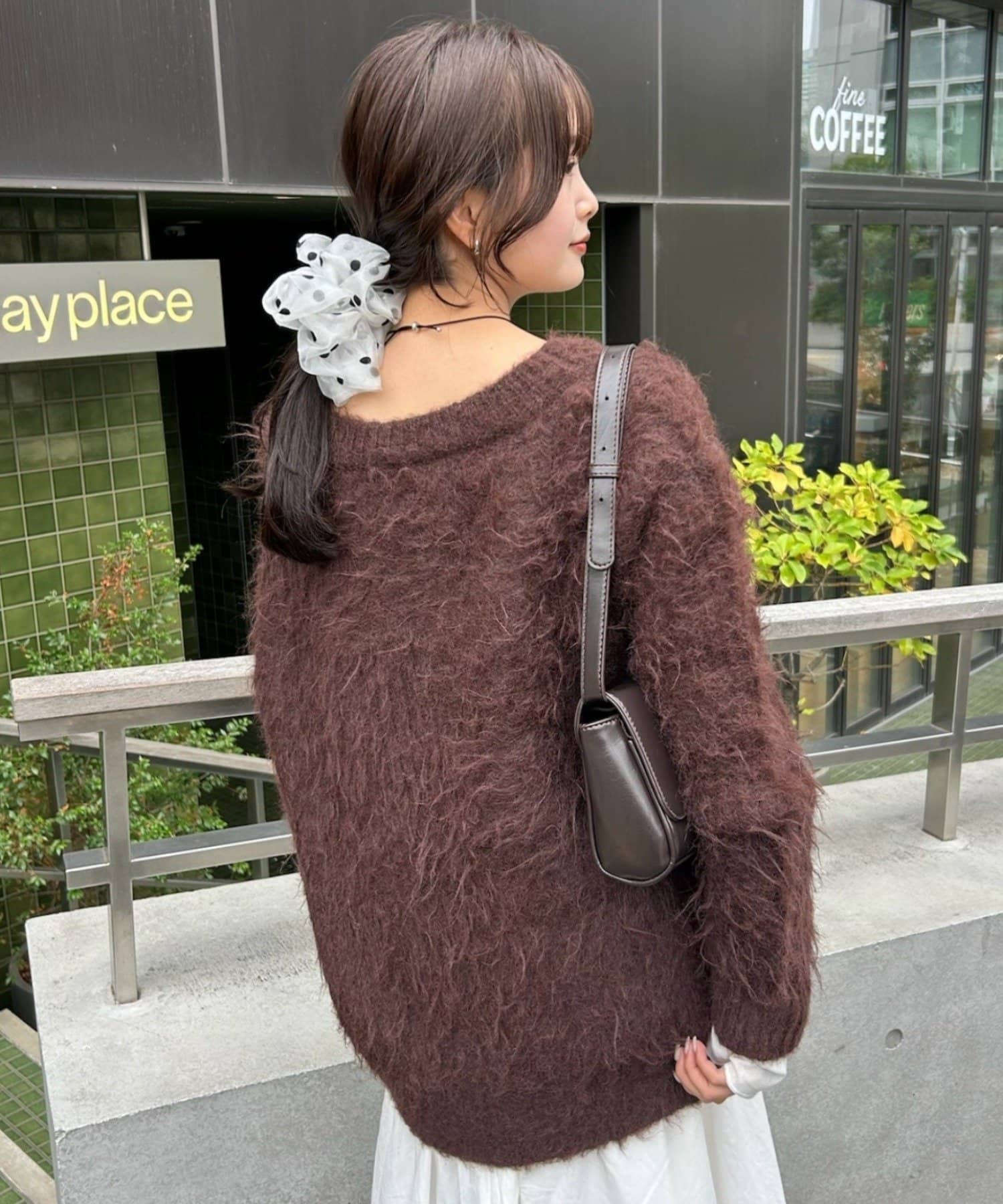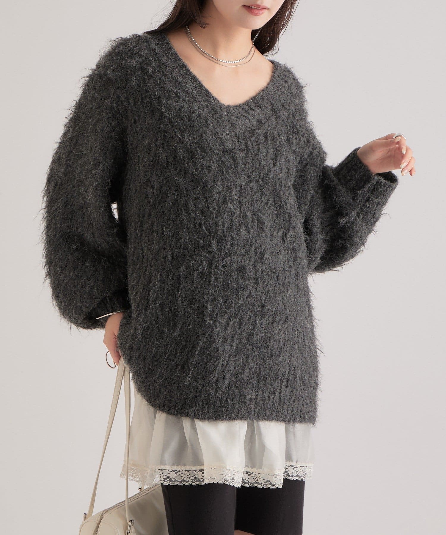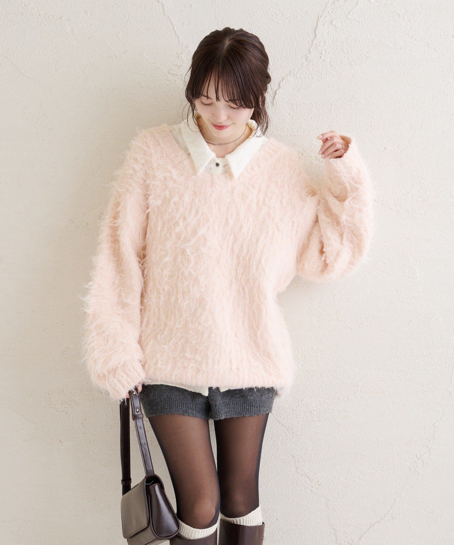 シャギー素材が魅力的♡前後両前で着られるふわふわニット!