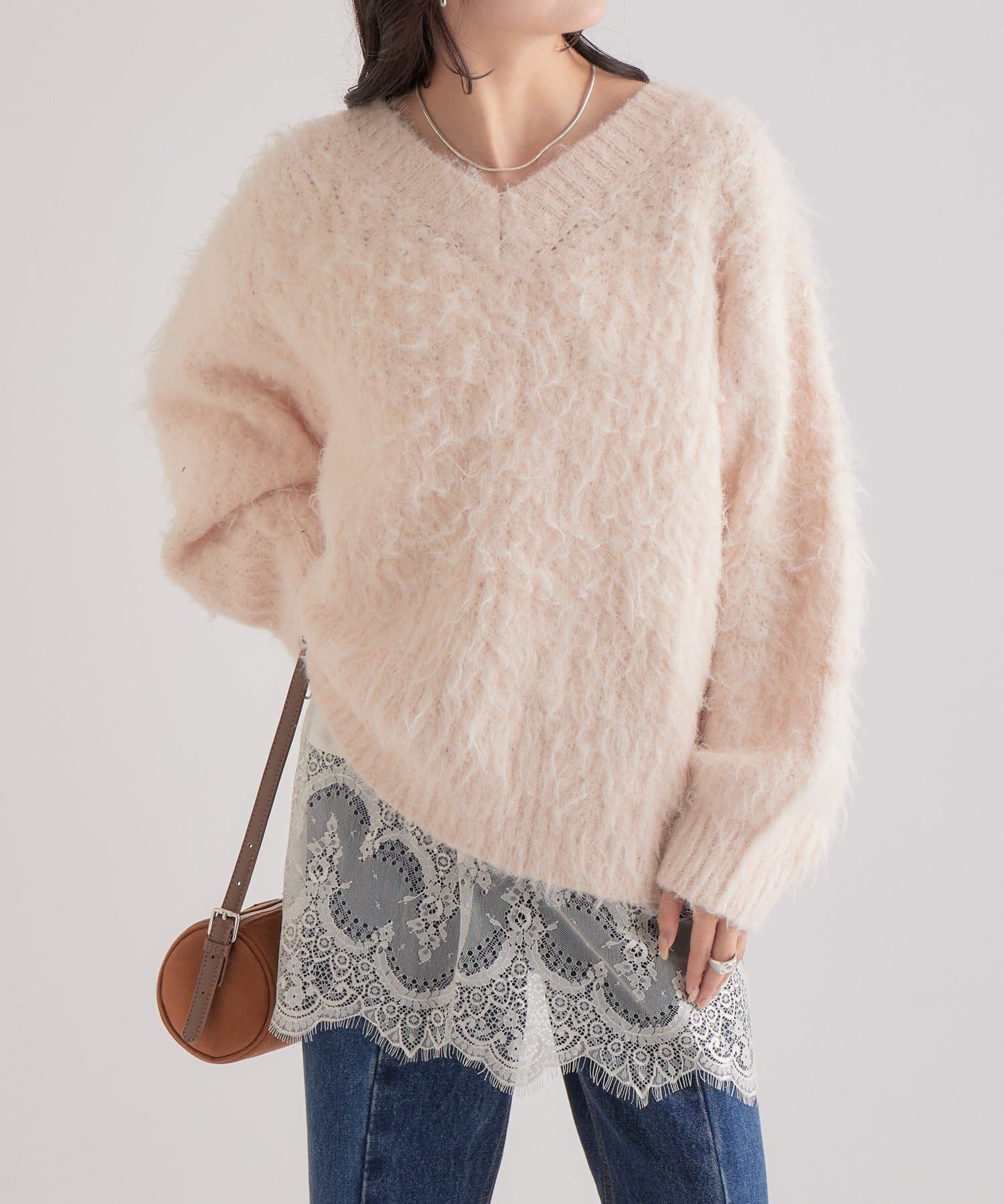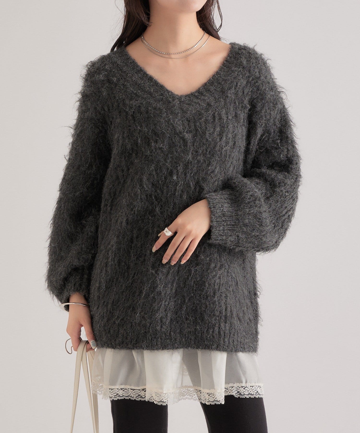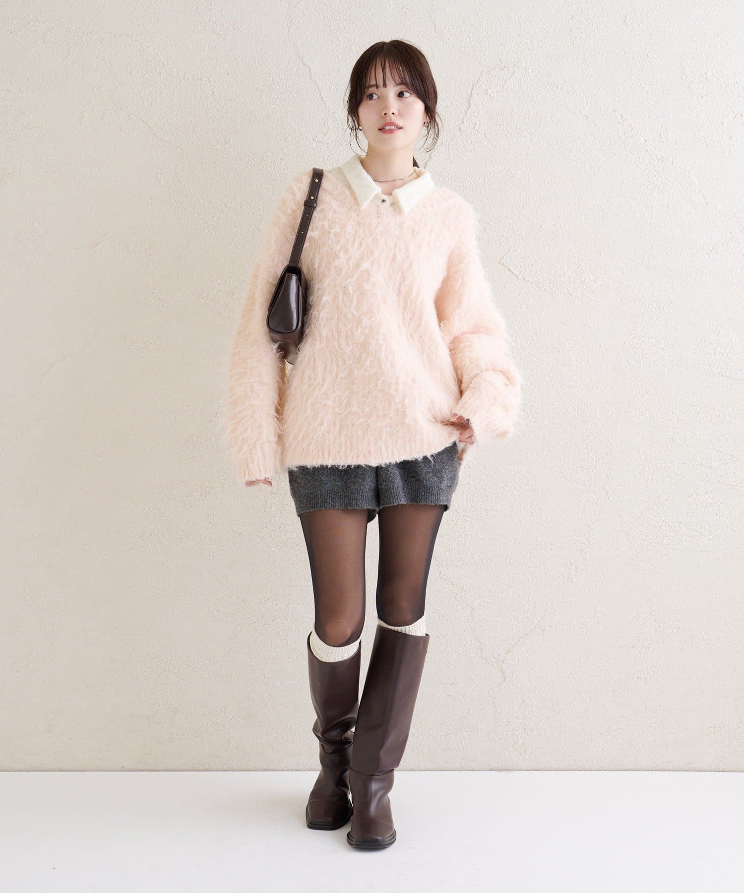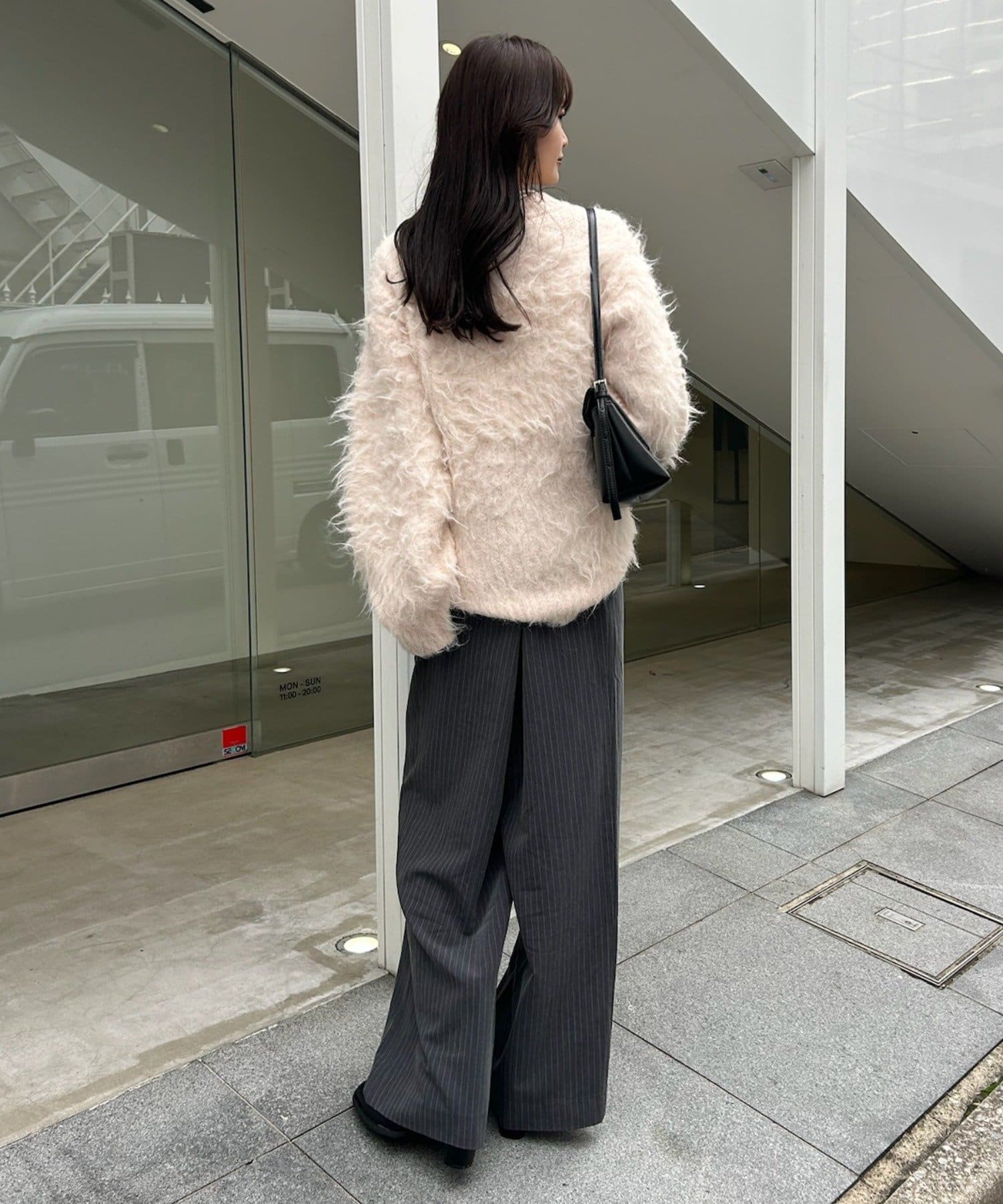 シャギー素材が魅力的♡前後両前で着られるふわふわニット!