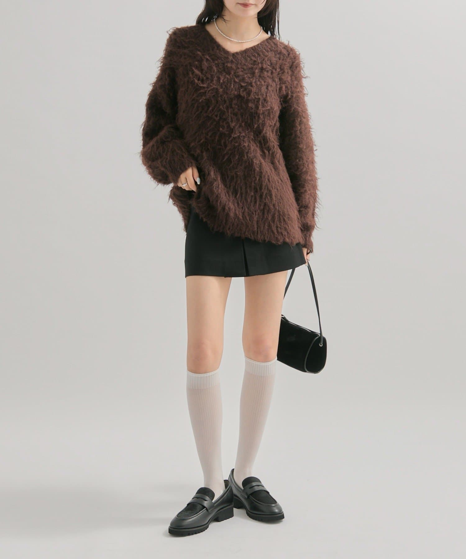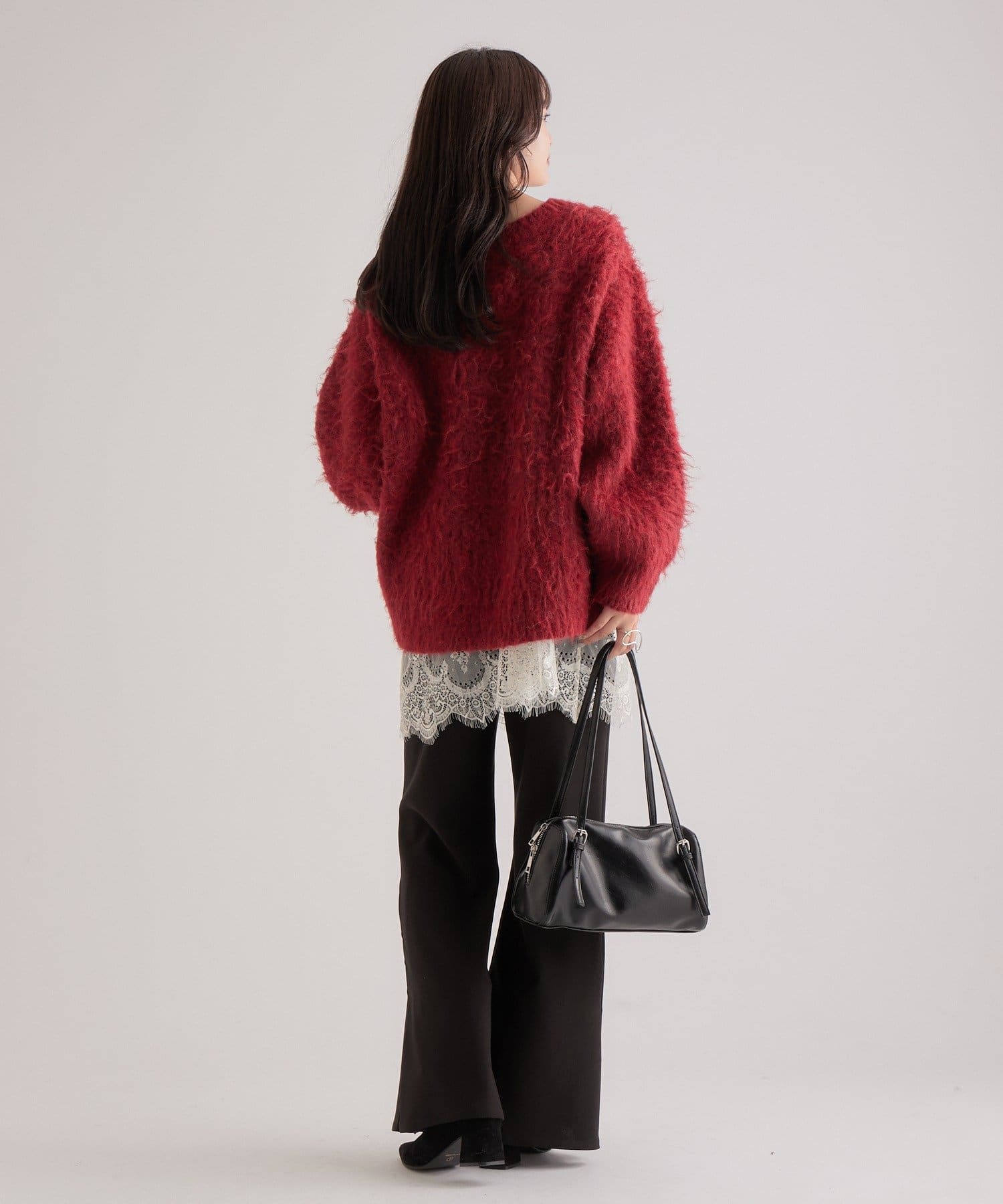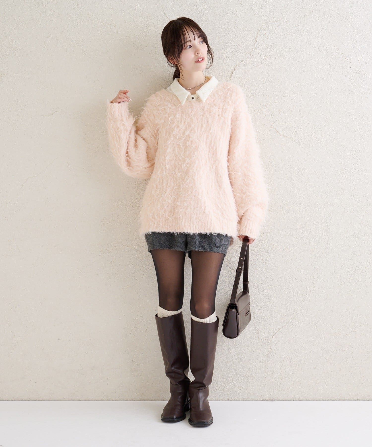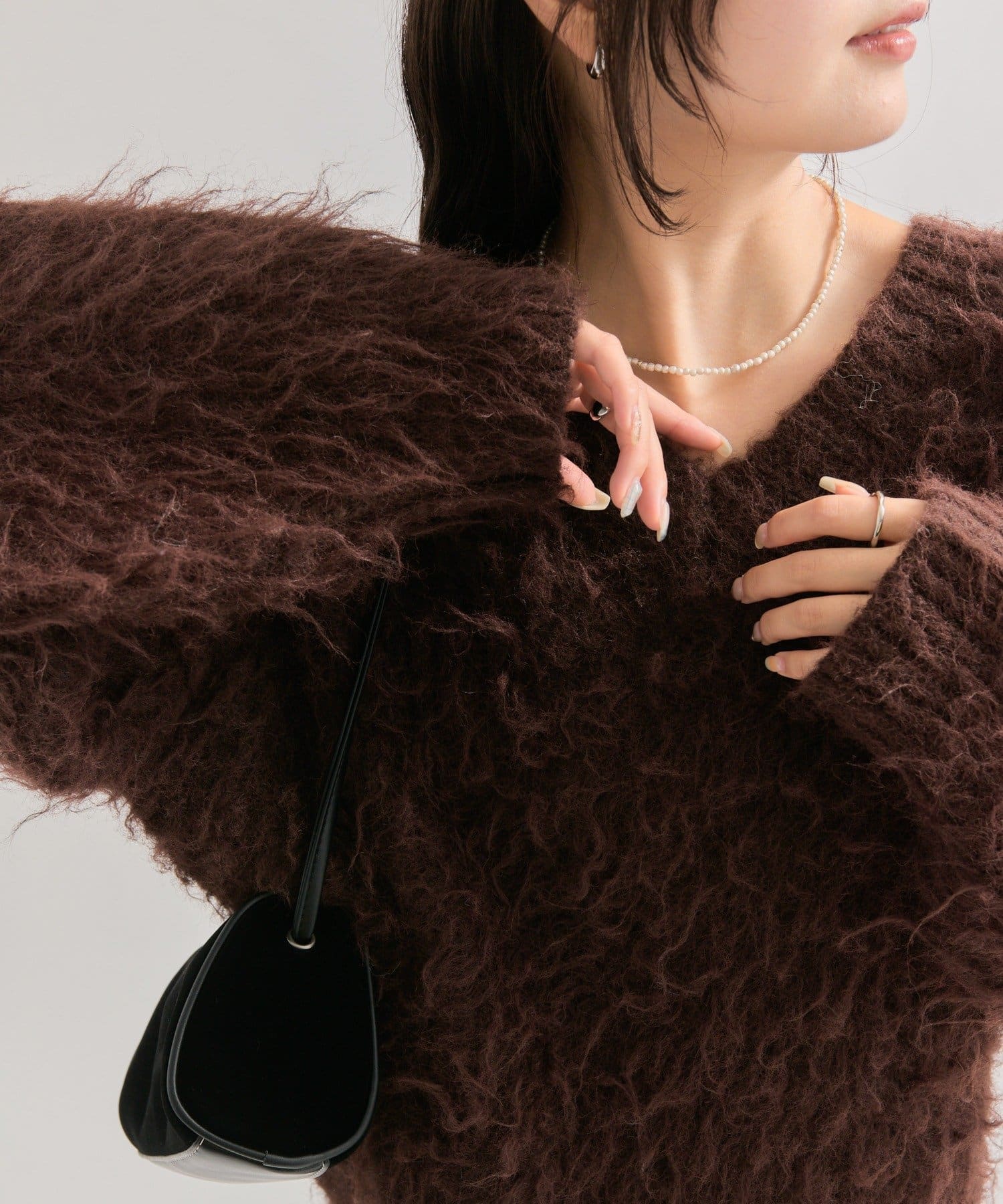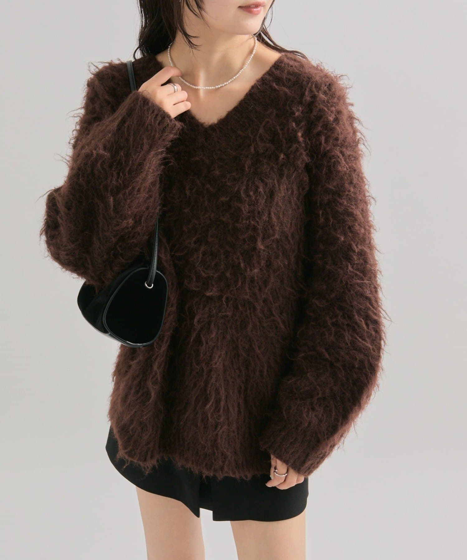 シャギー素材が魅力的♡前後両前で着られるふわふわニット!