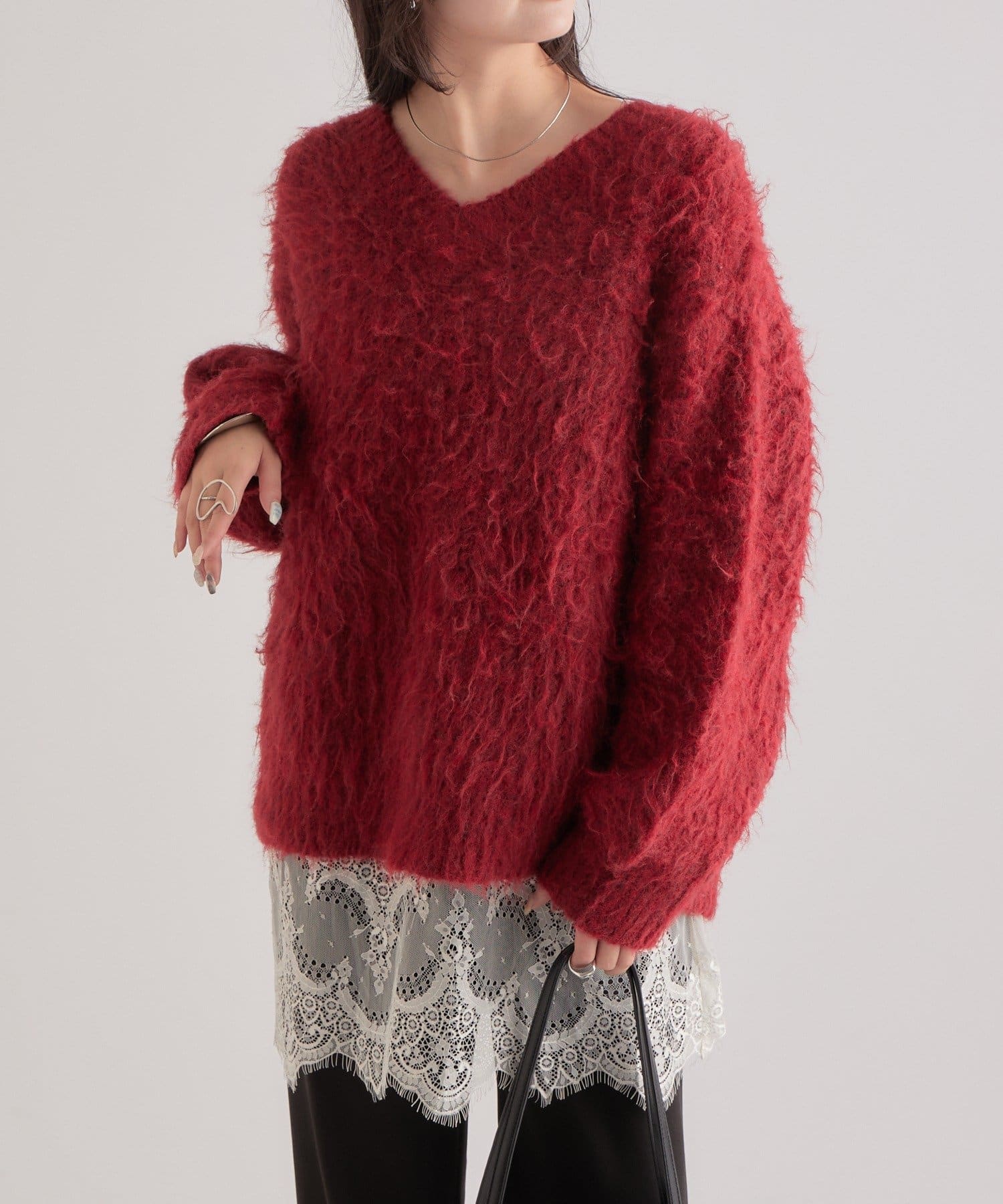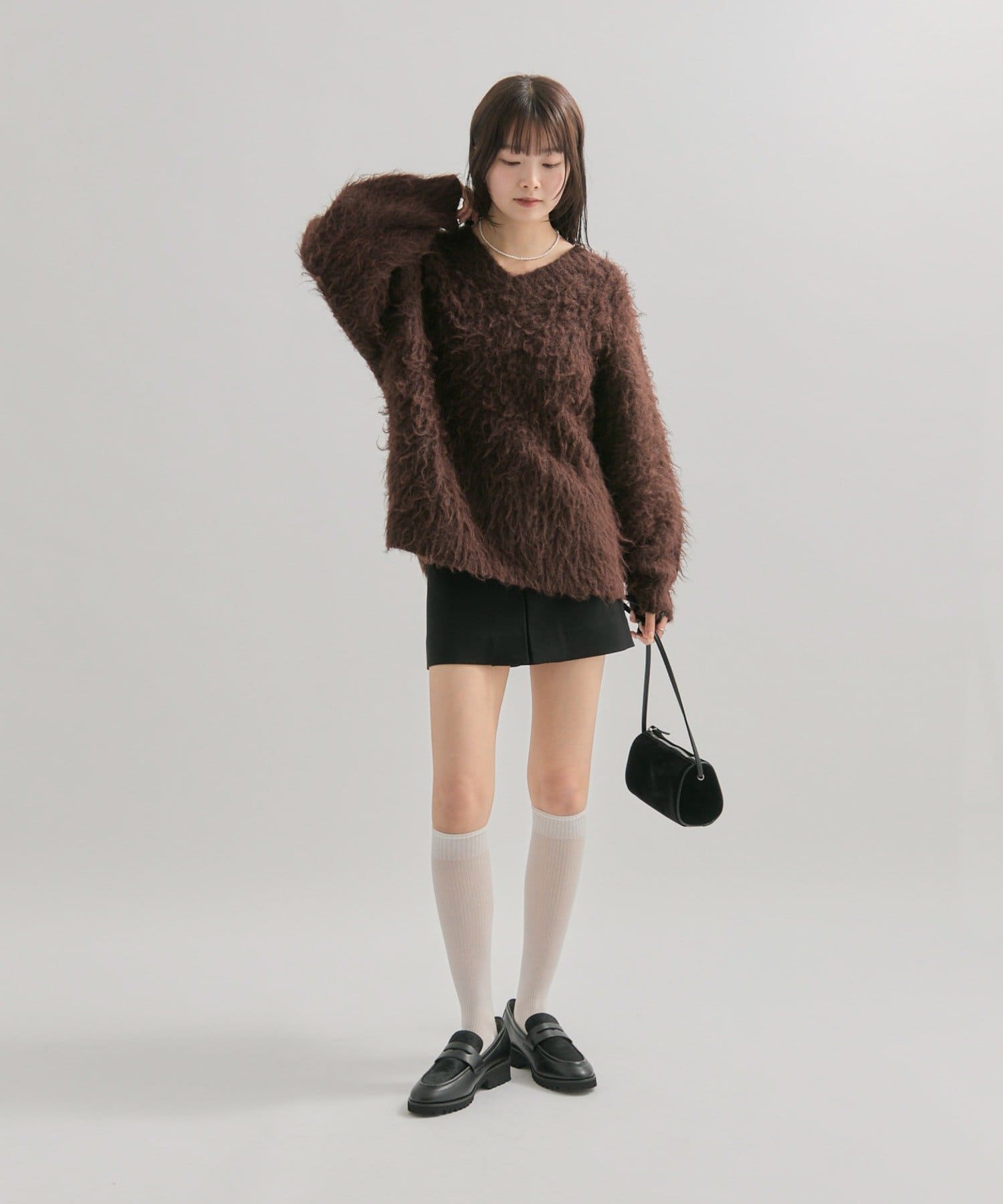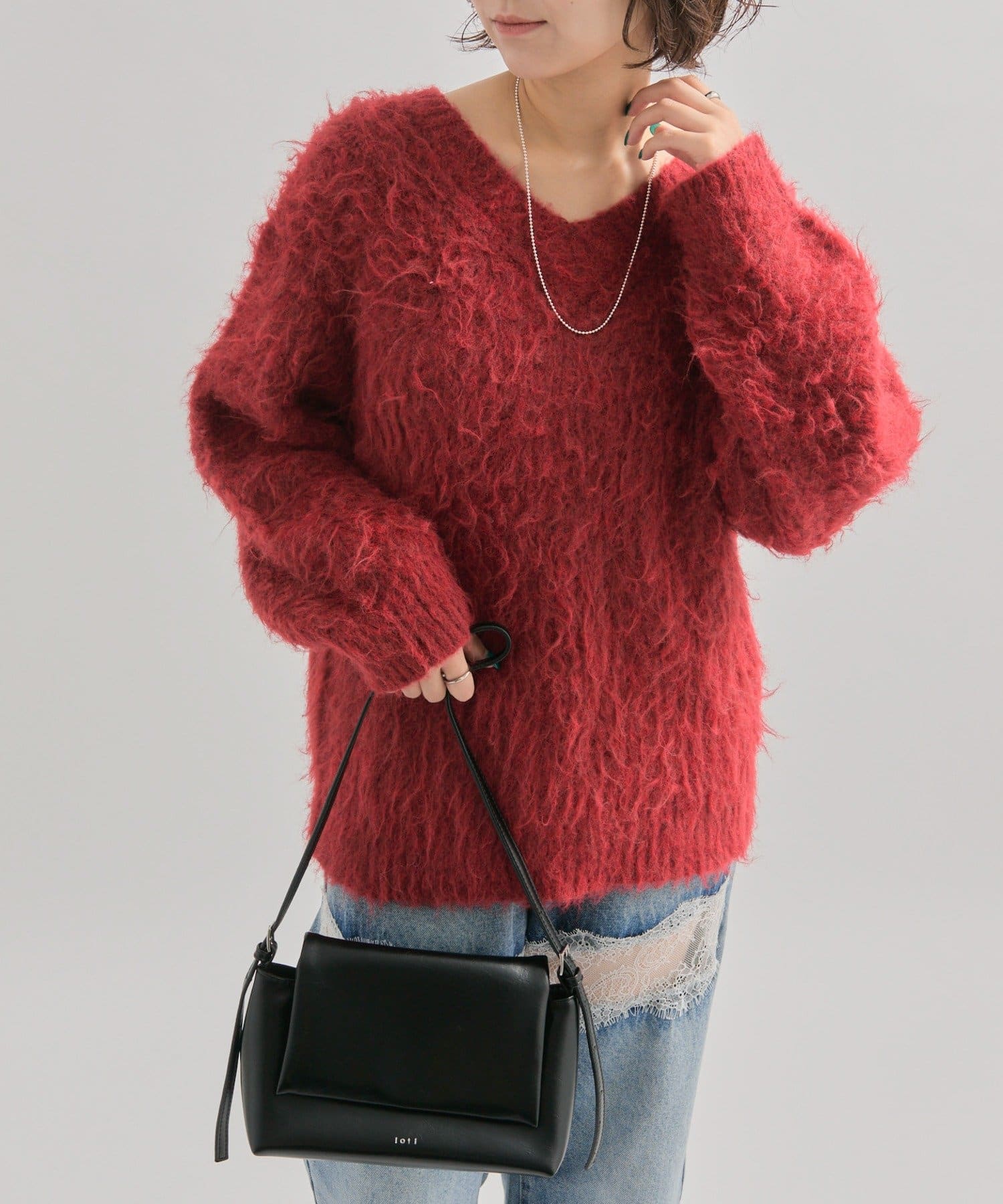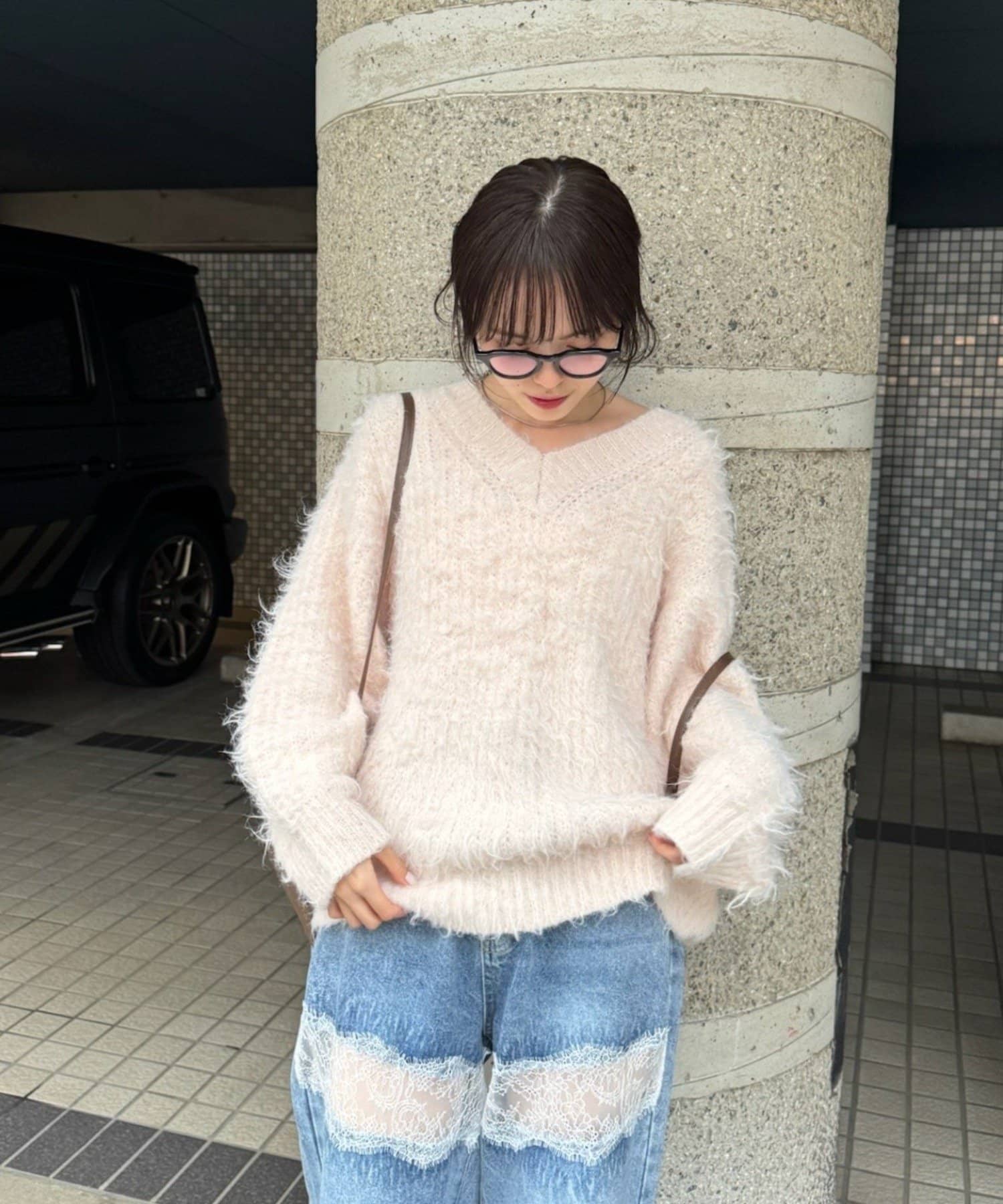 シャギー素材が魅力的♡前後両前で着られるふわふわニット!