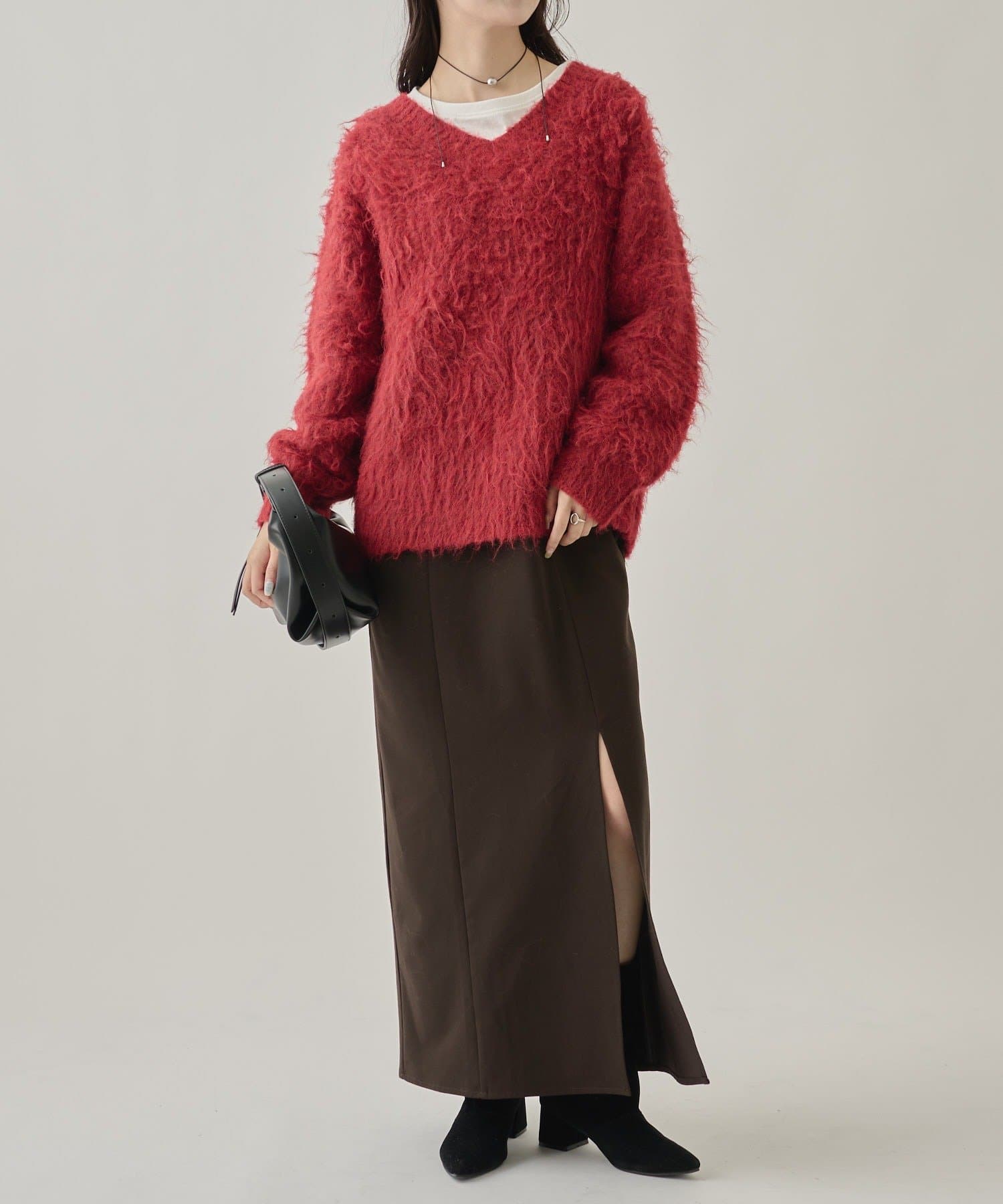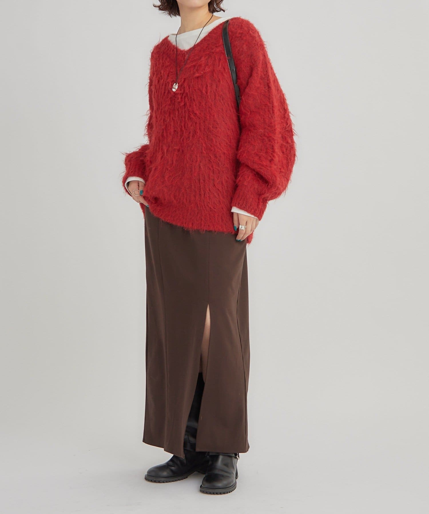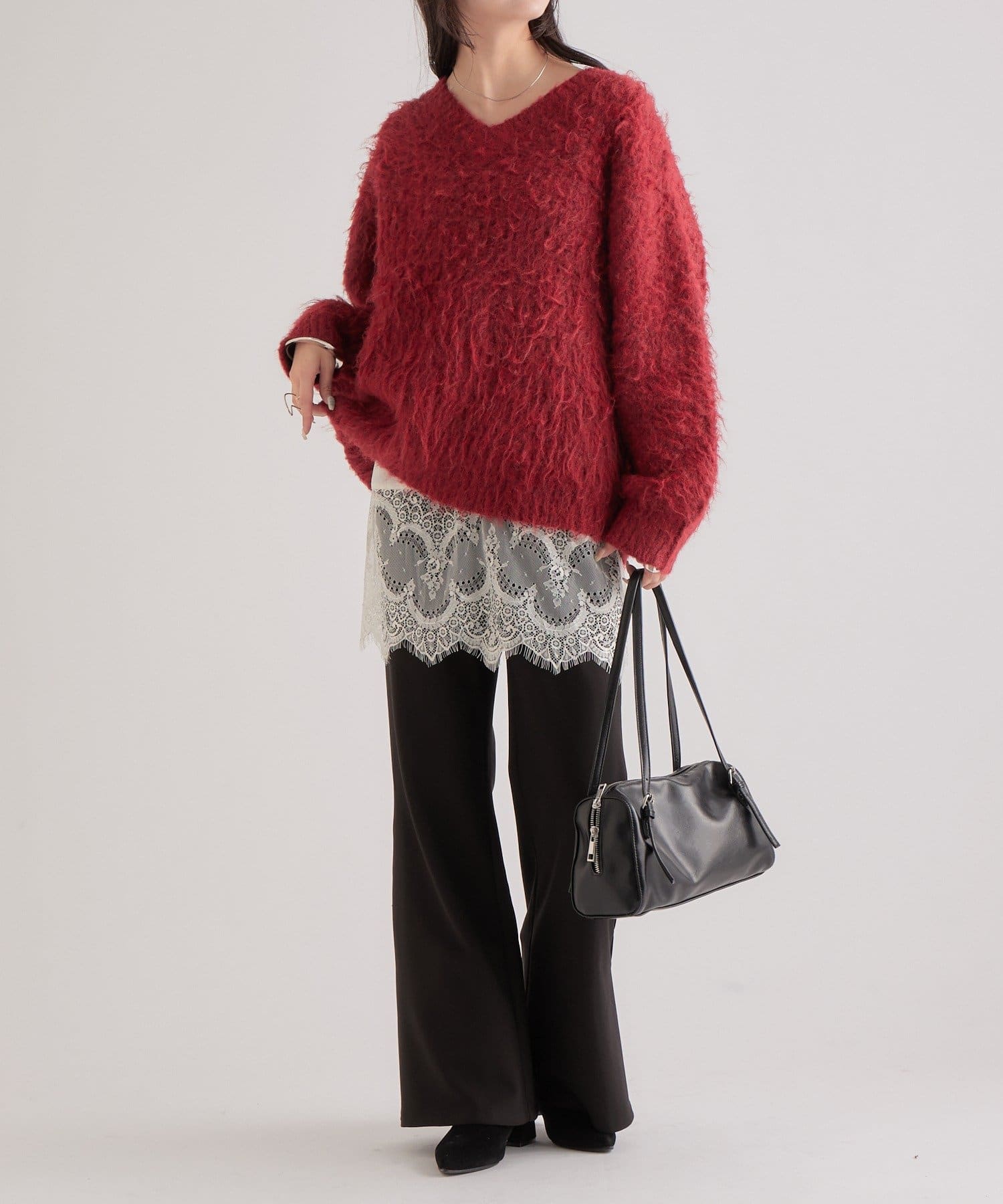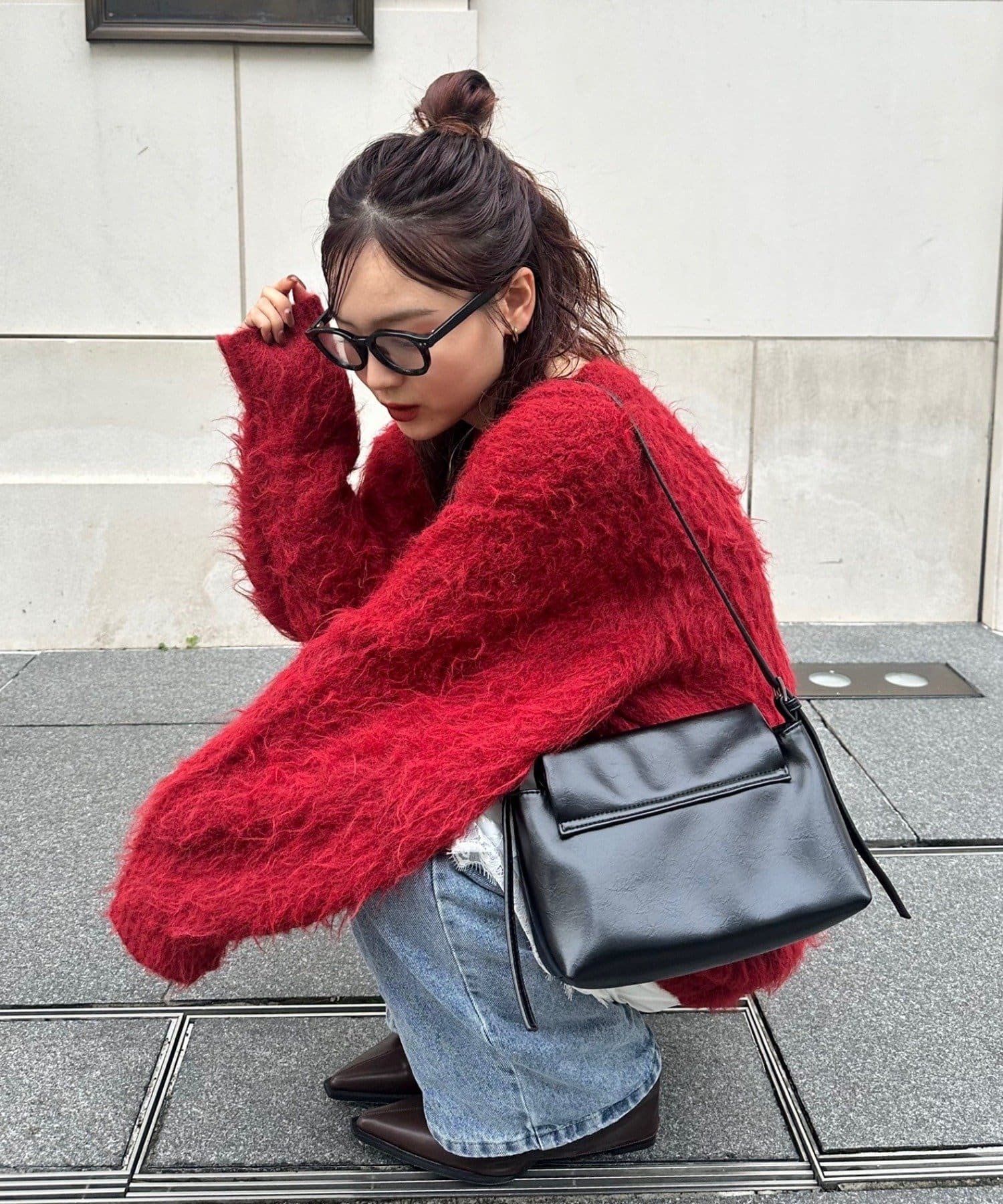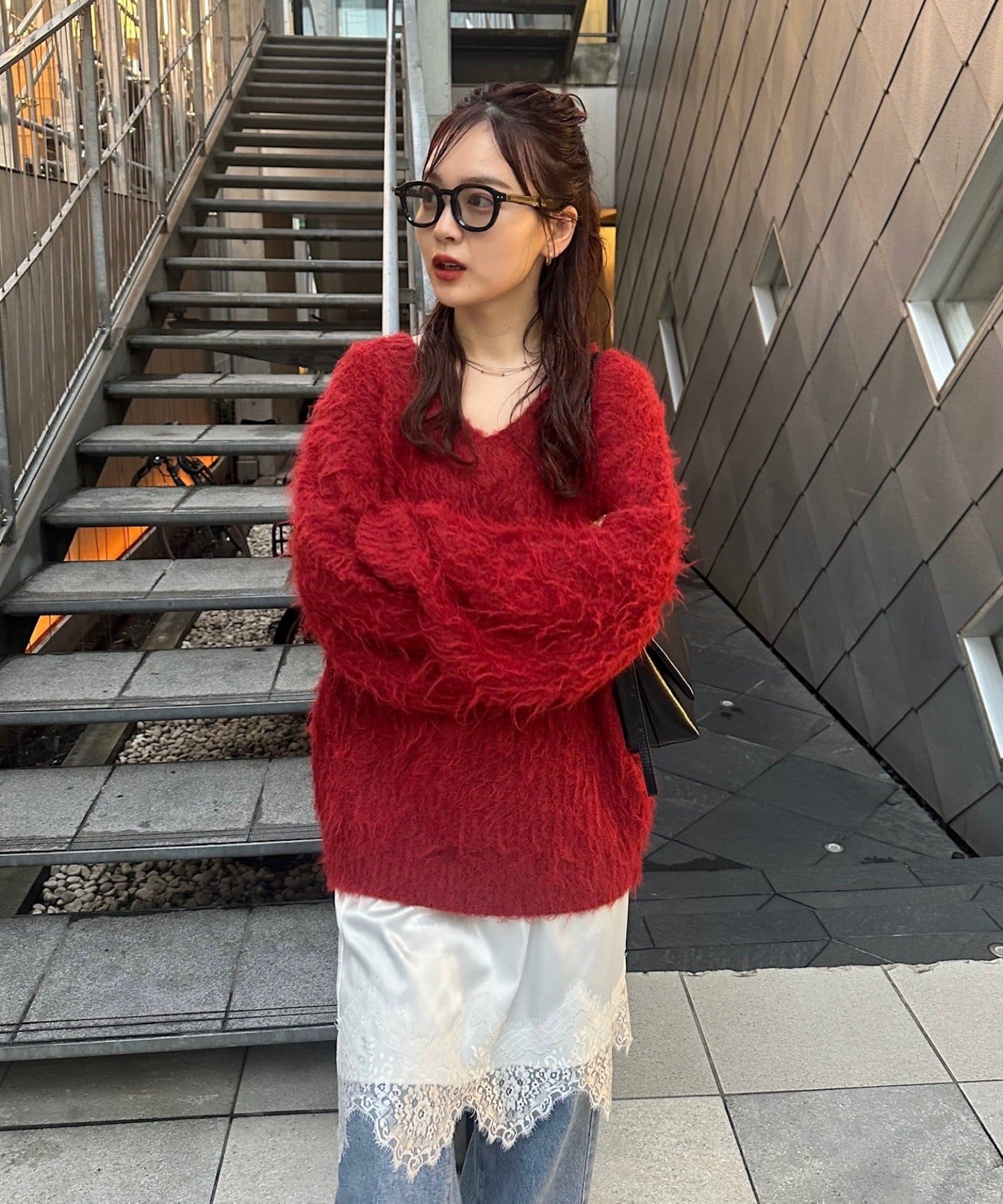シャギー素材が魅力的♡前後両前で着られるふわふわニット!