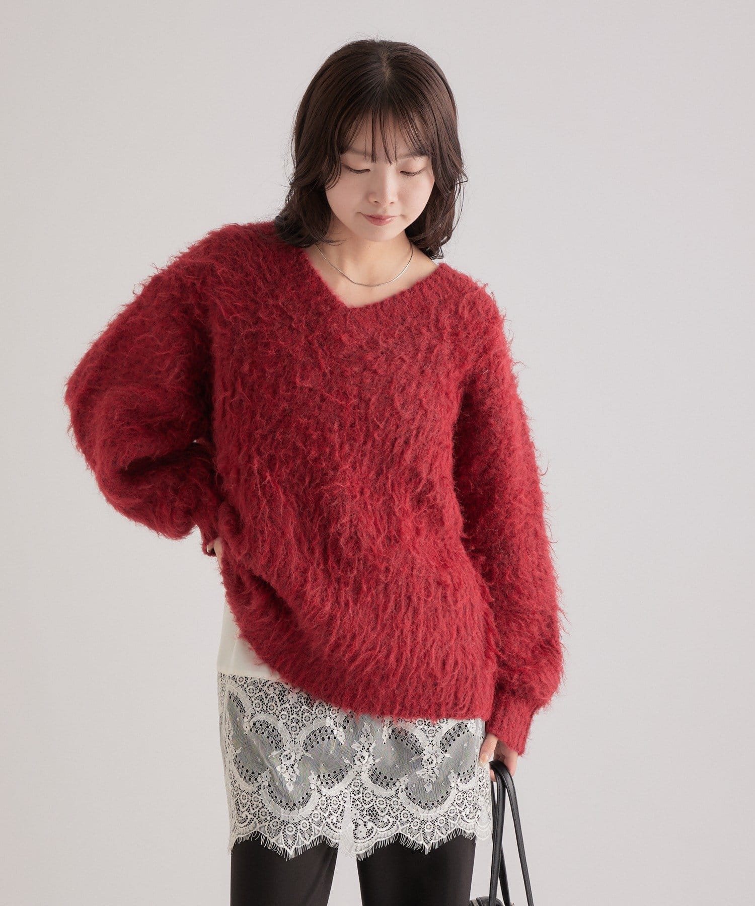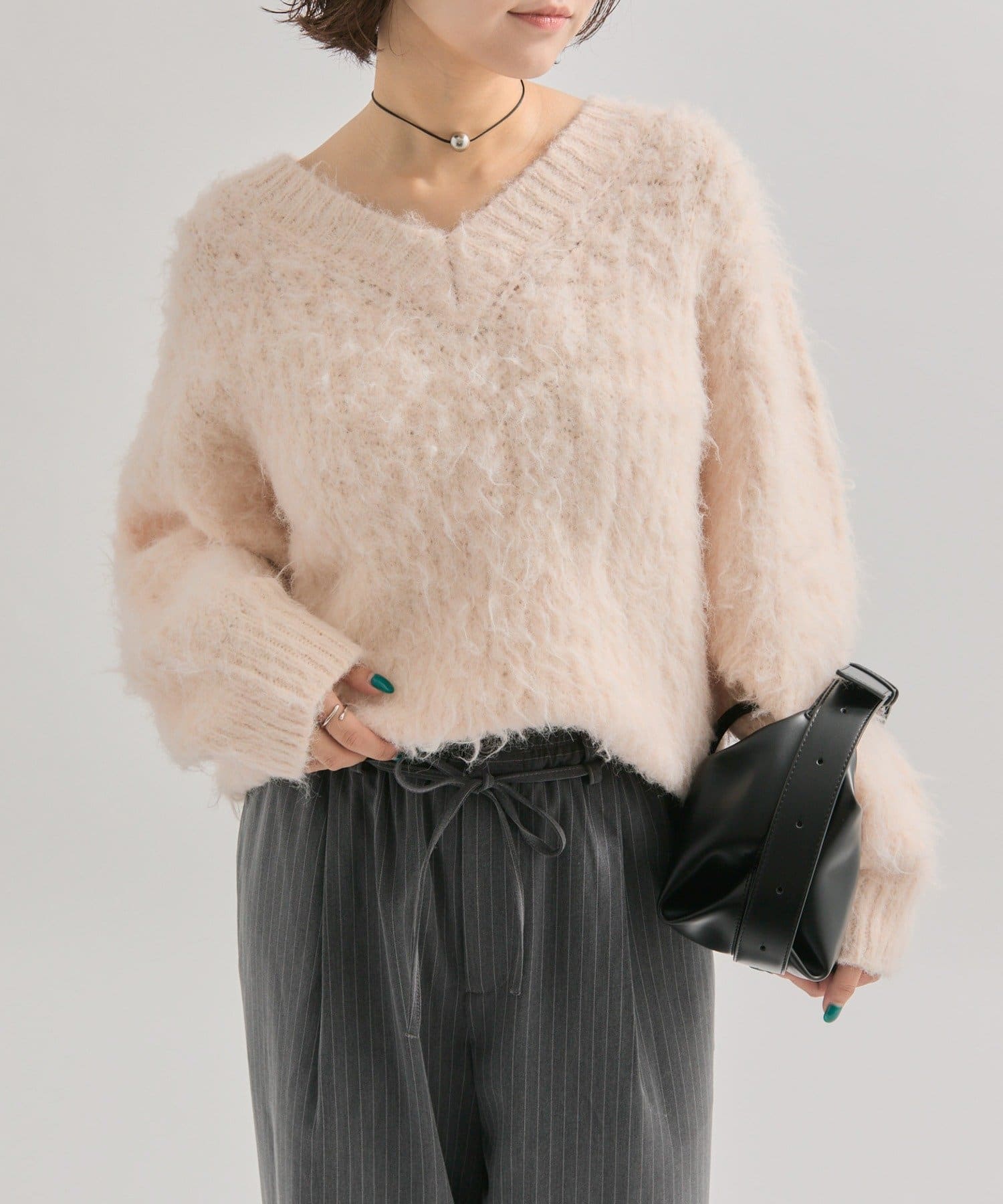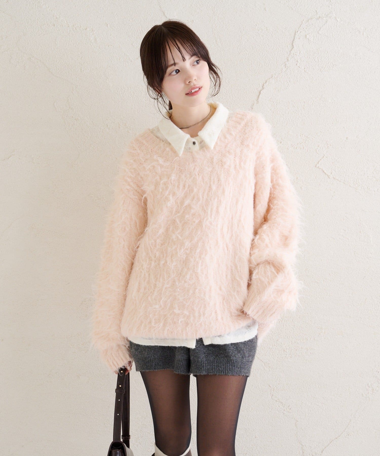 《CCLはWEB / 限定店舗カラー》【前後両前で着れる】ふわふわシャギーニット