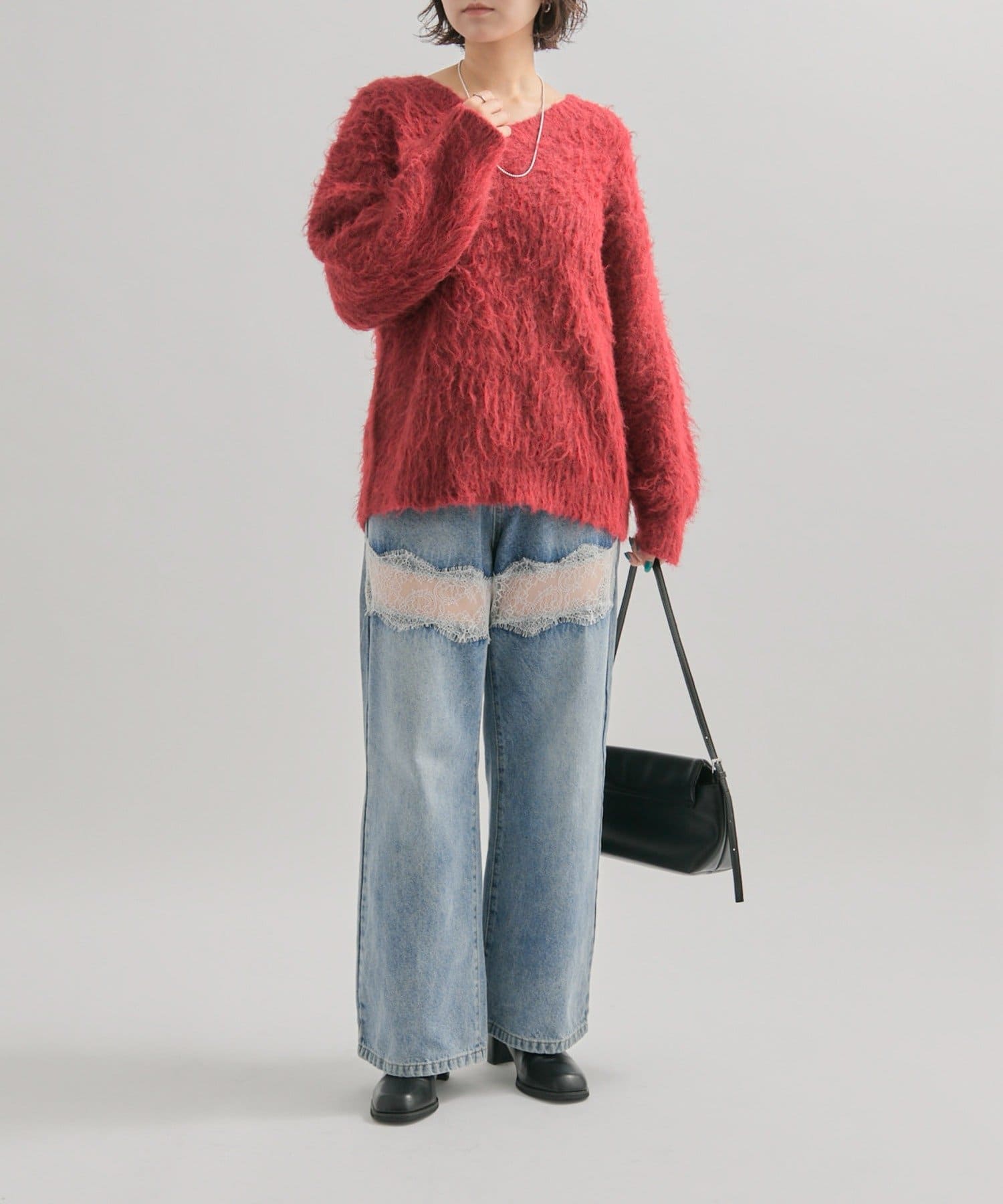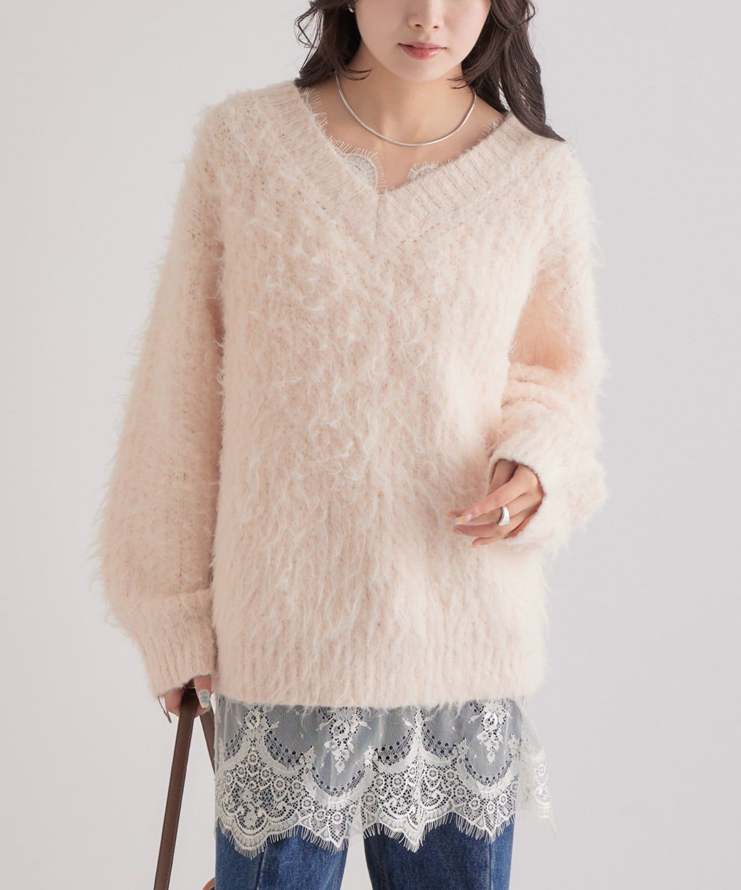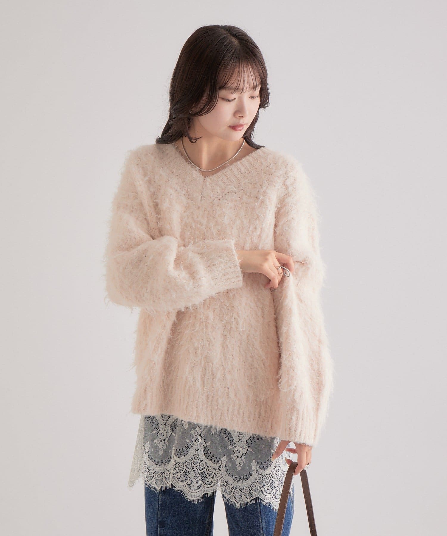 《CCLはWEB / 限定店舗カラー》【前後両前で着れる】ふわふわシャギーニット