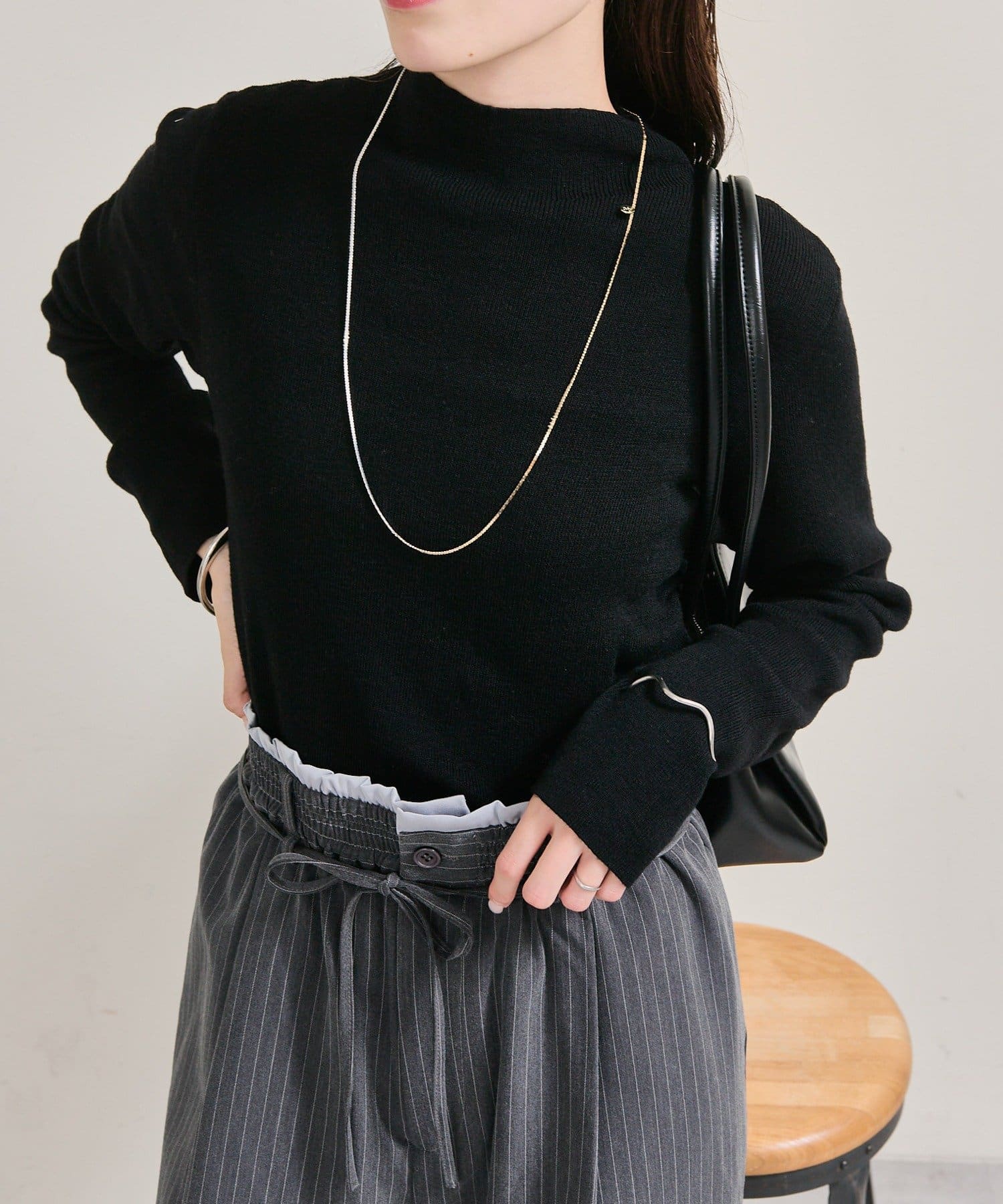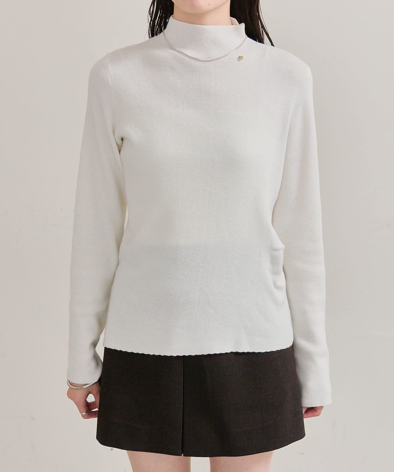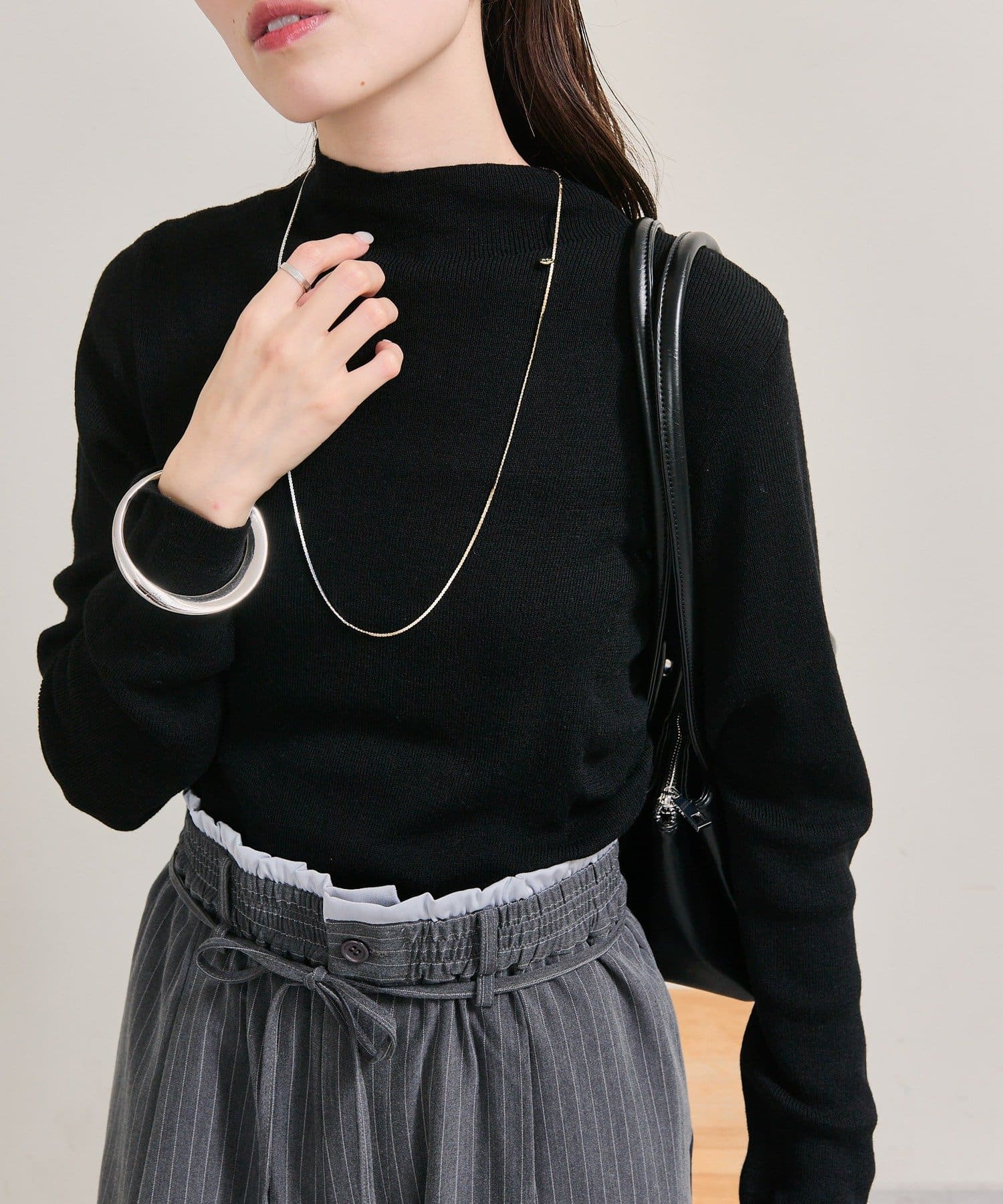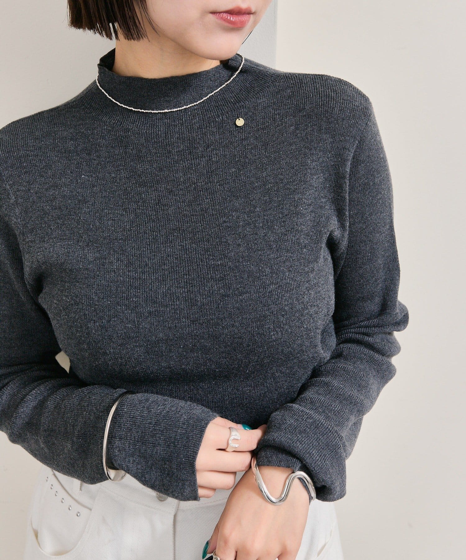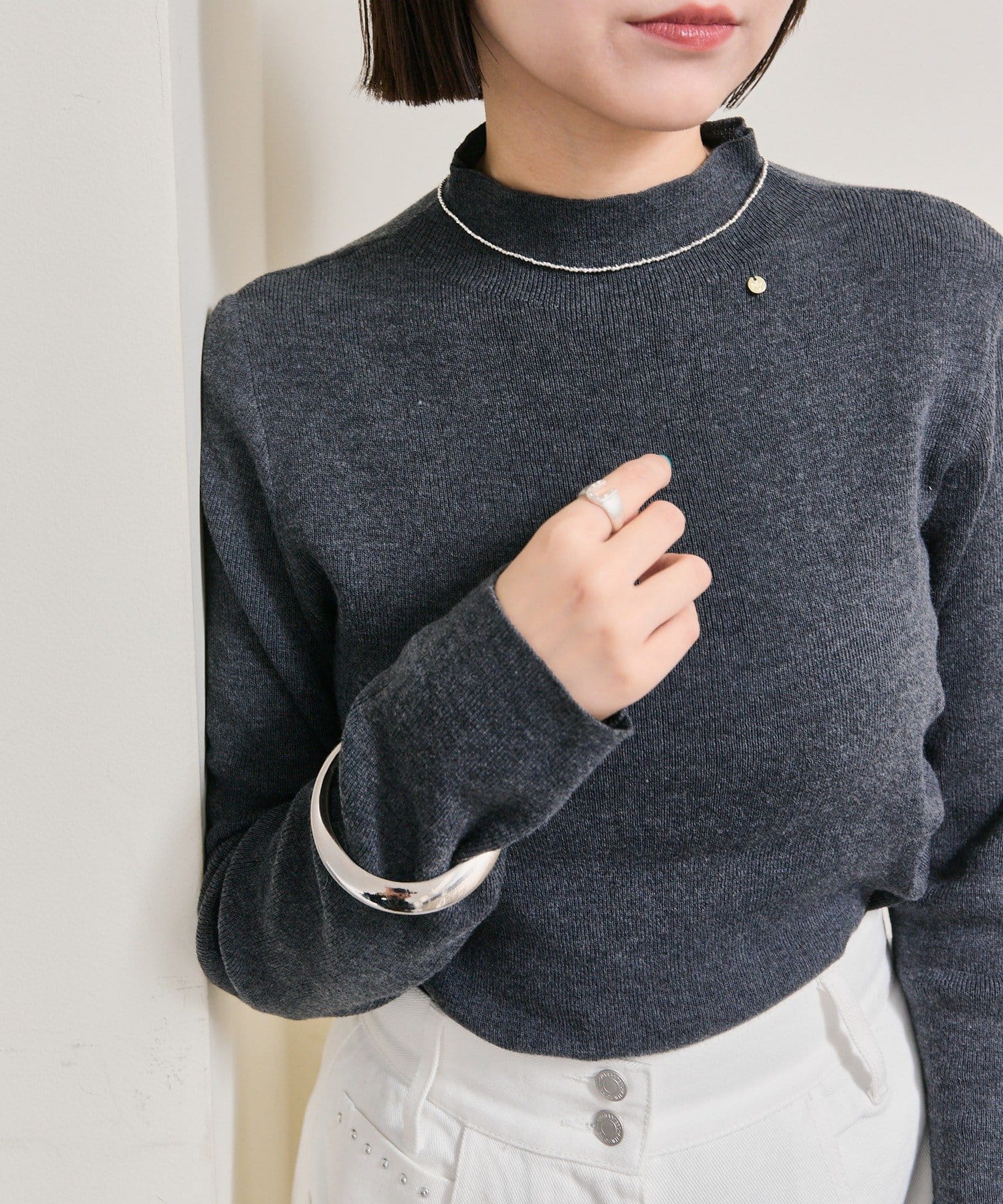 レイヤードスタイルに最適!上品見えするプレートがポイントのハイネックニット