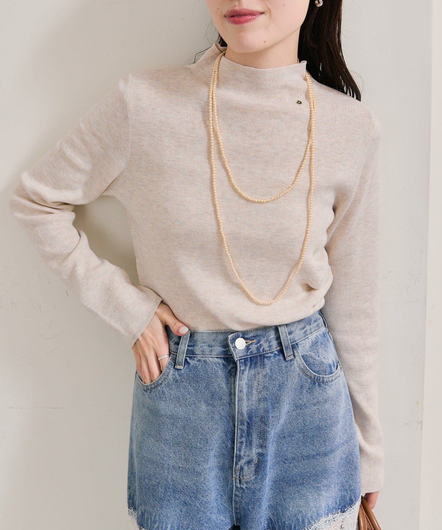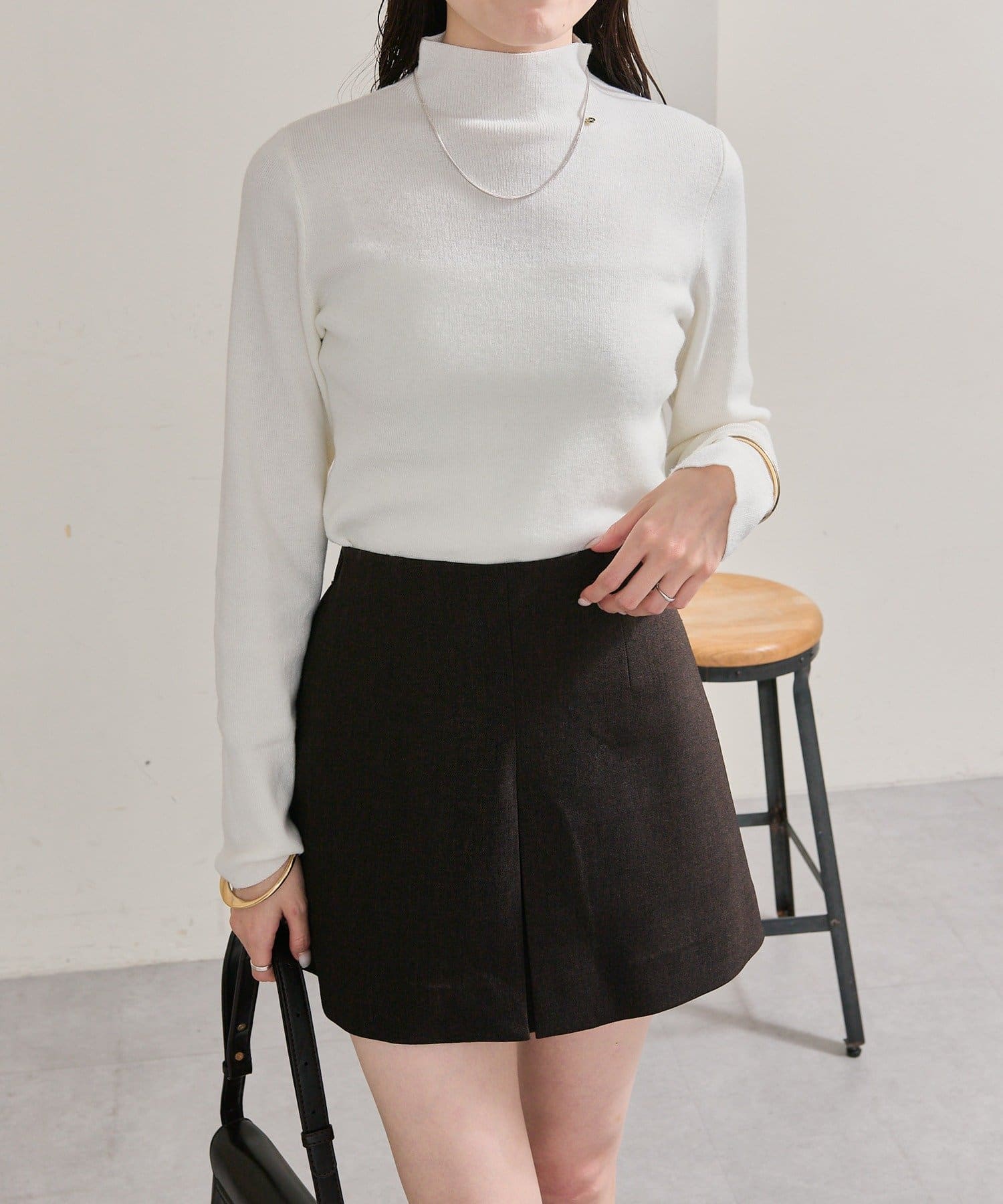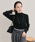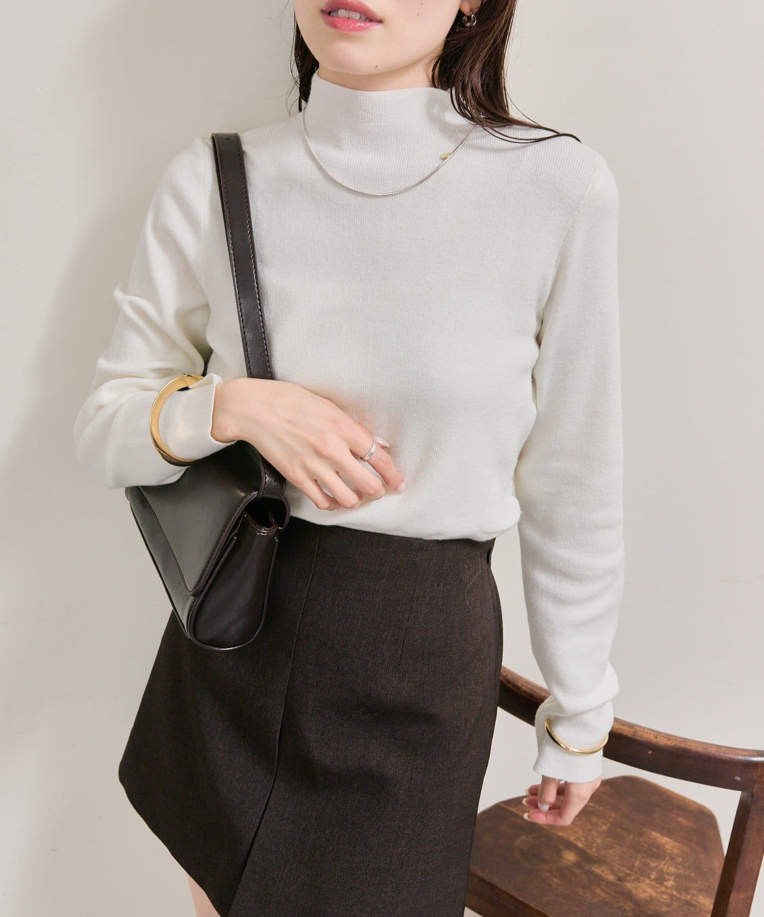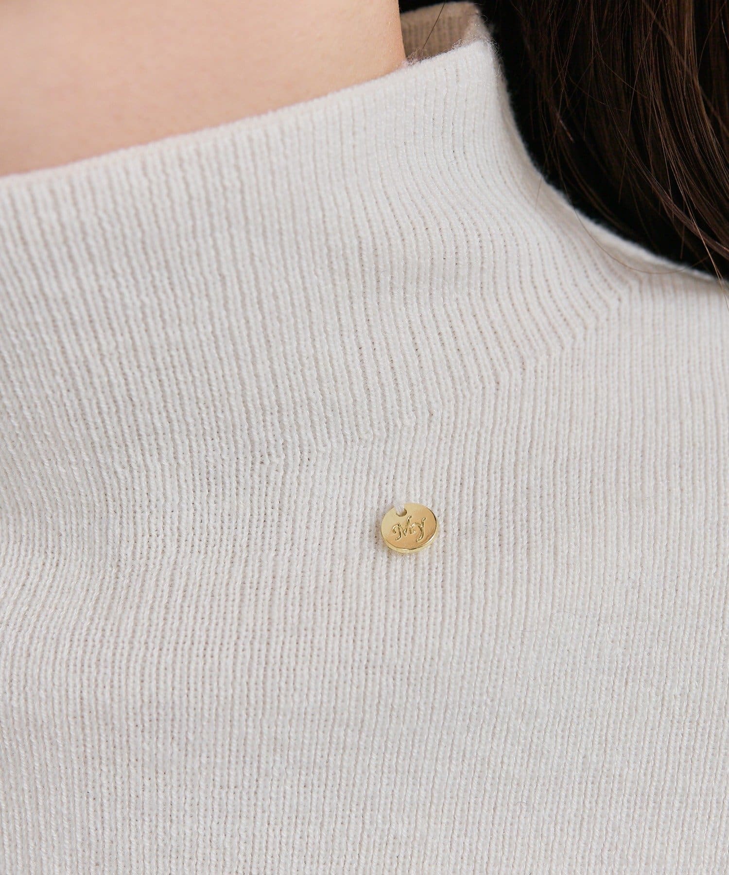 レイヤードスタイルに最適!上品見えするプレートがポイントのハイネックニット
