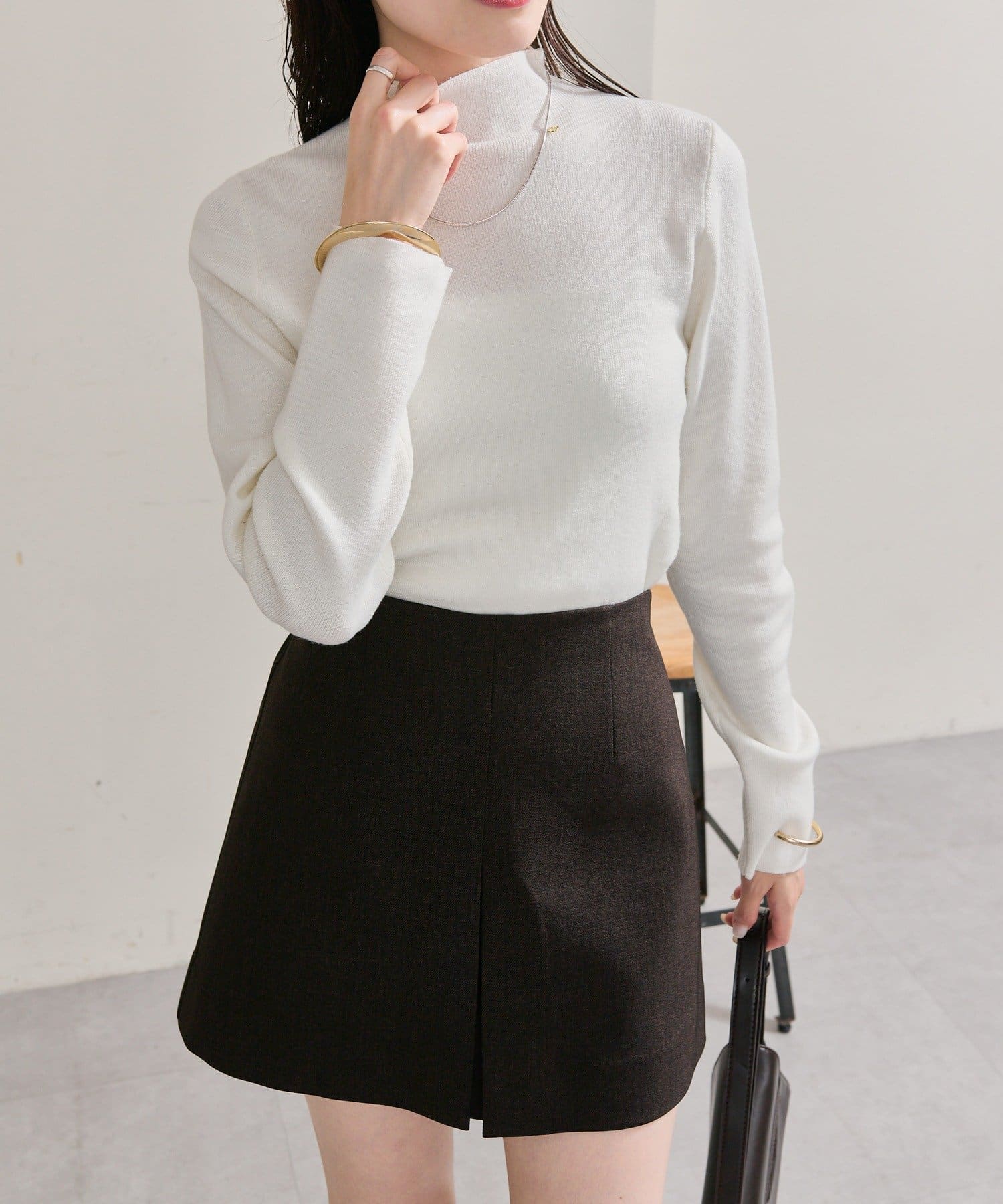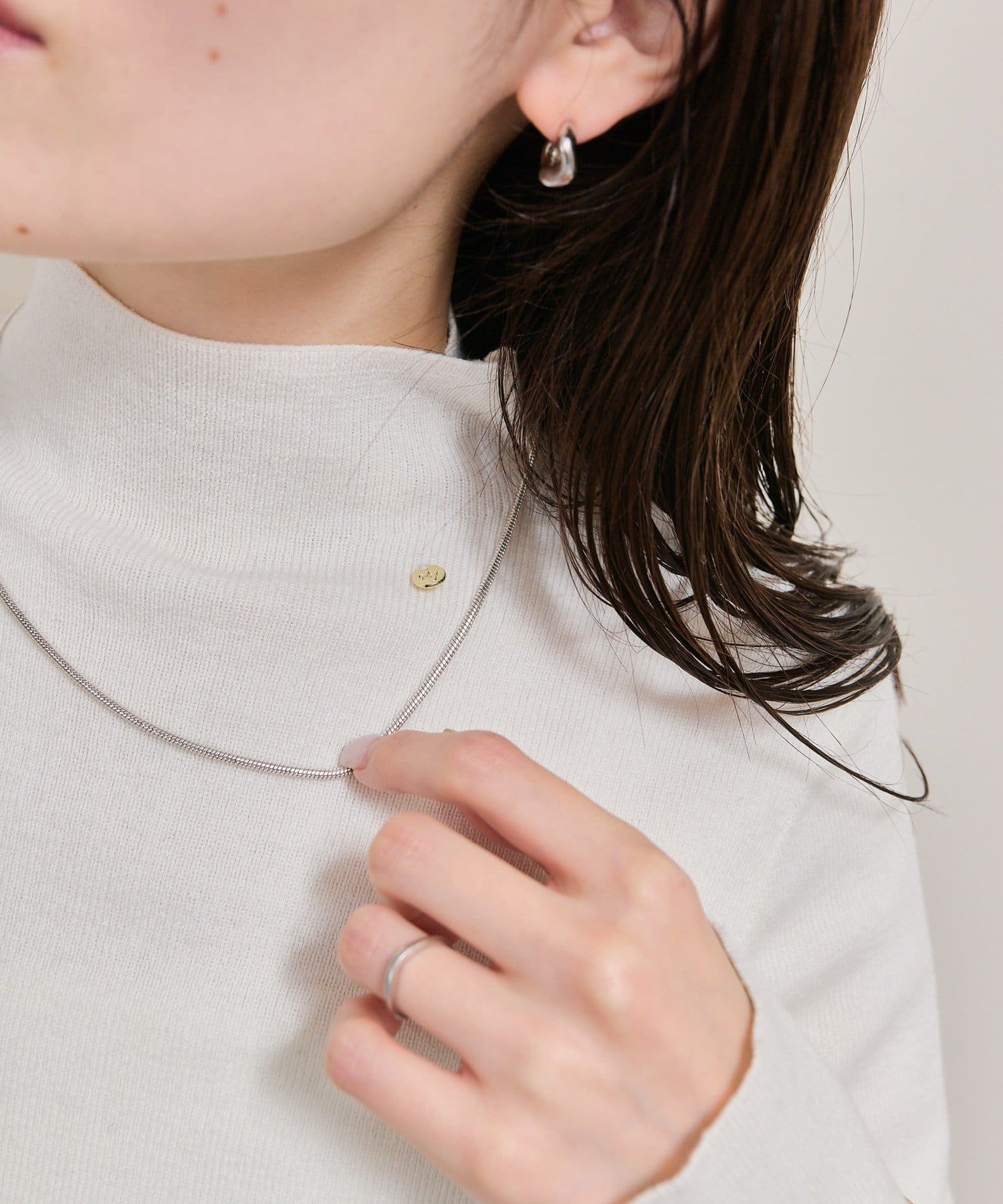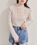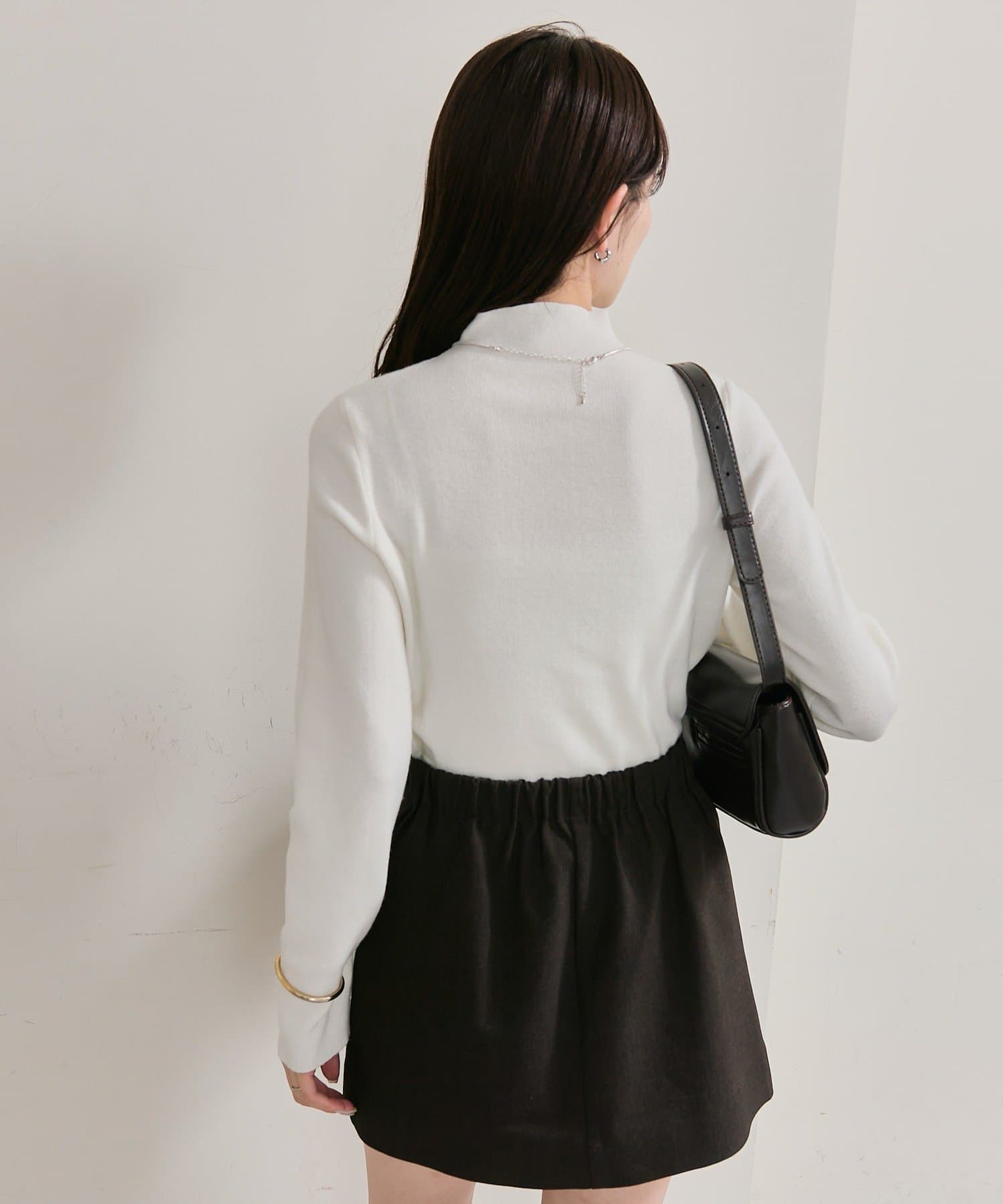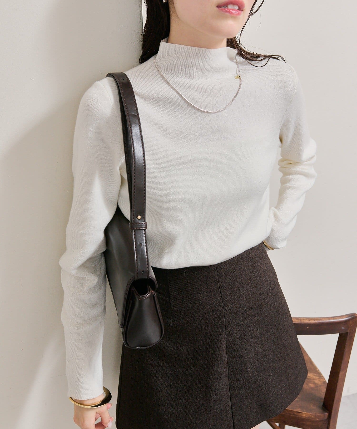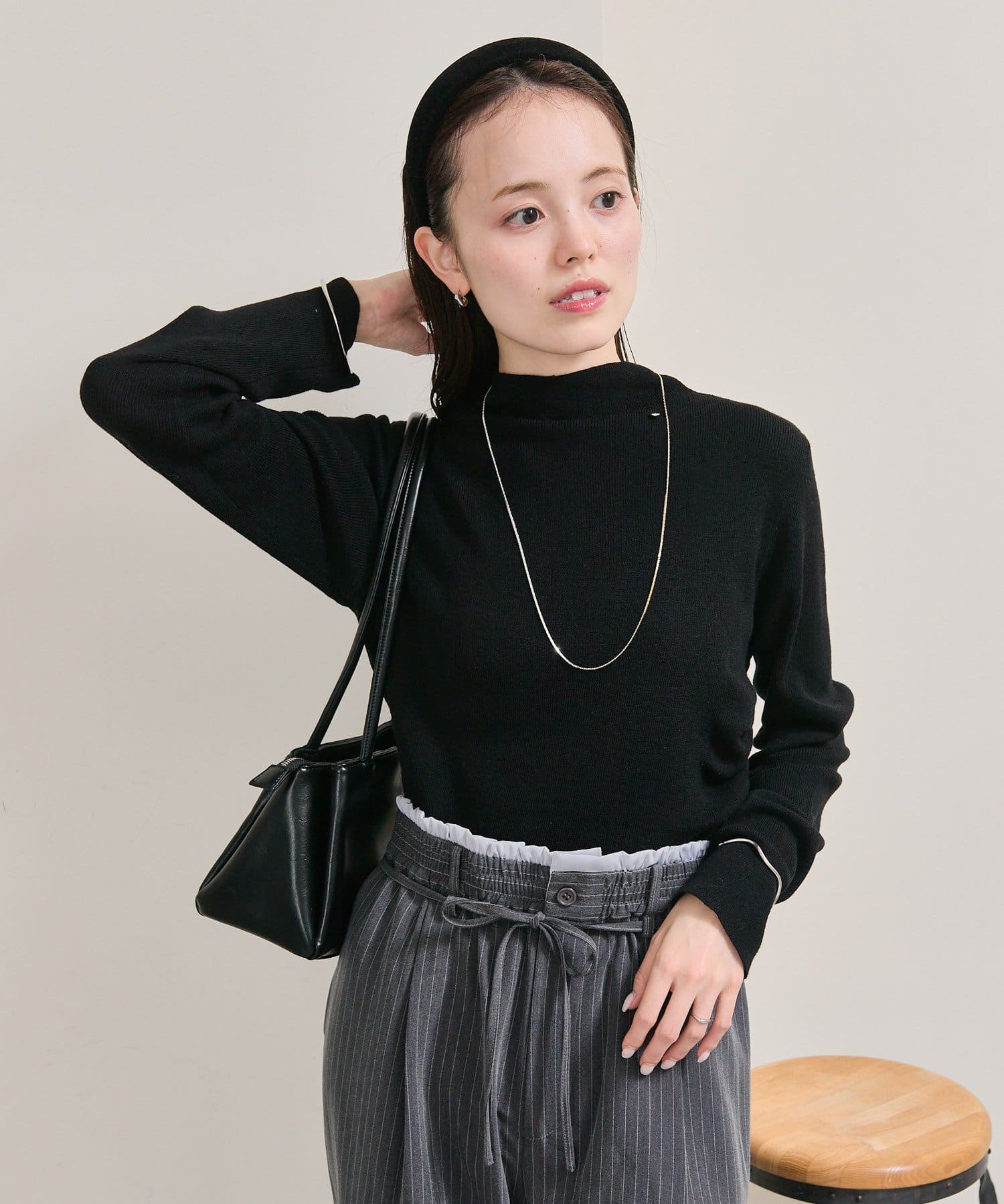 レイヤードスタイルに最適!上品見えするプレートがポイントのハイネックニット