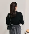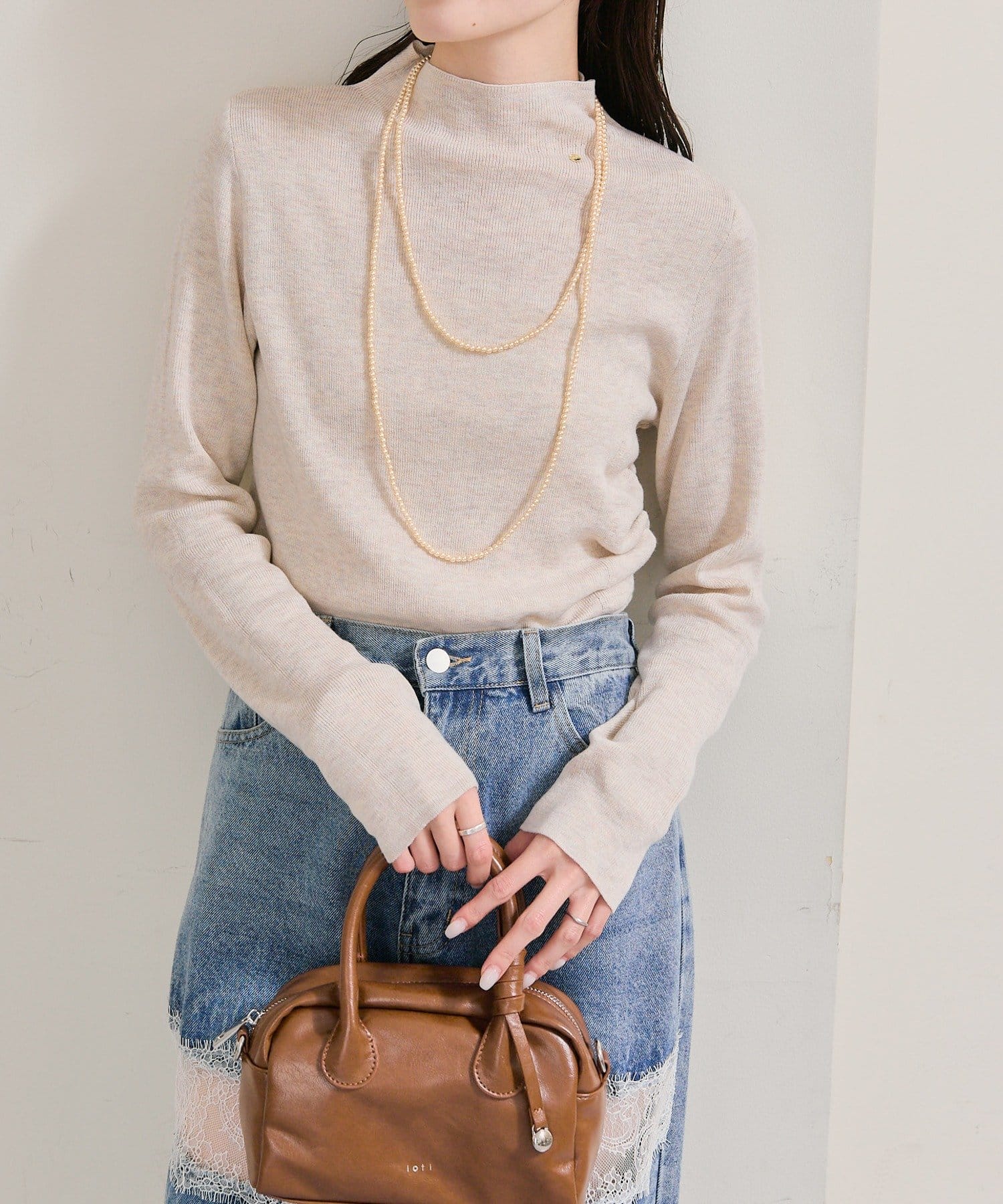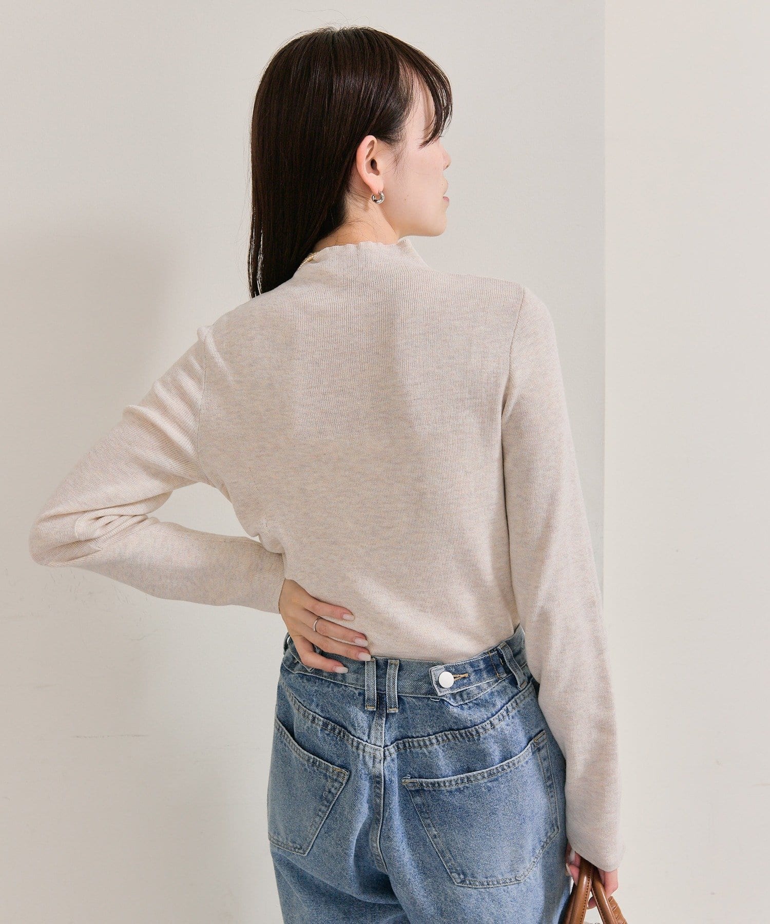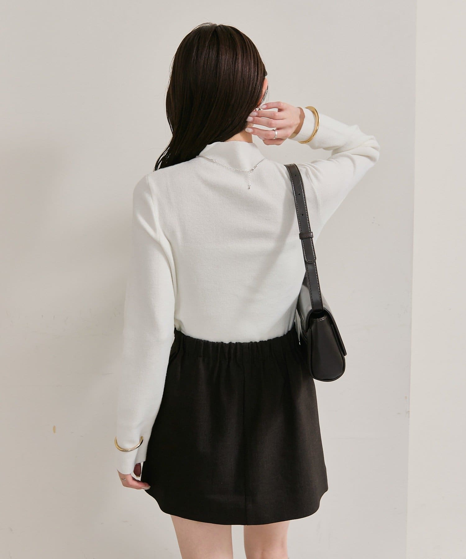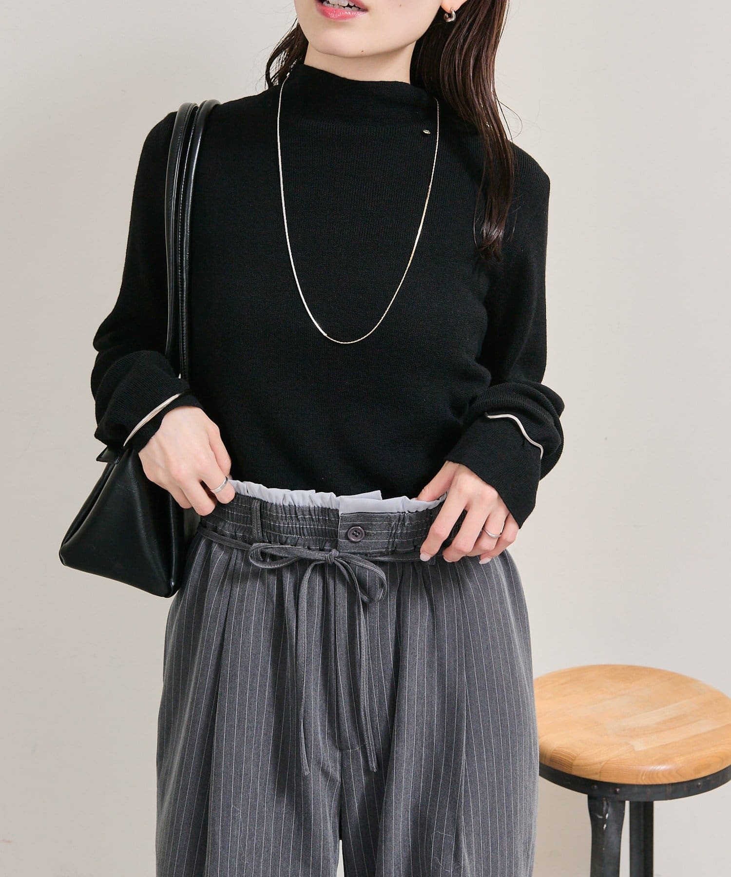レイヤードスタイルに最適!上品見えするプレートがポイントのハイネックニット