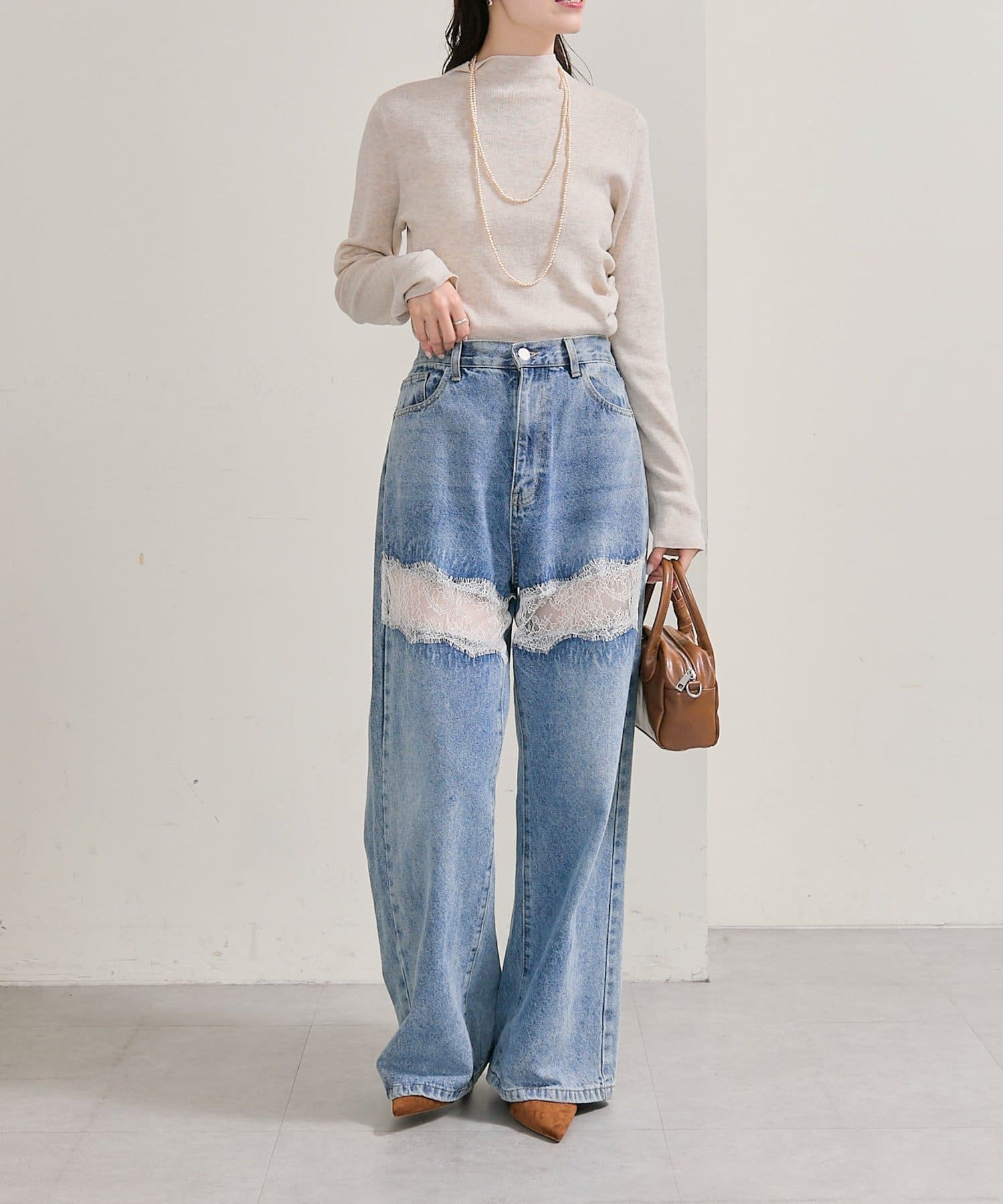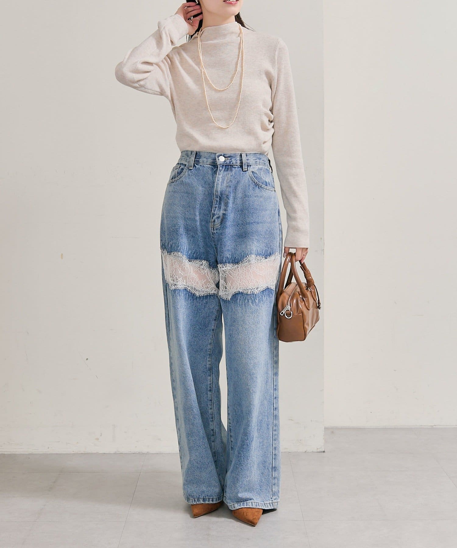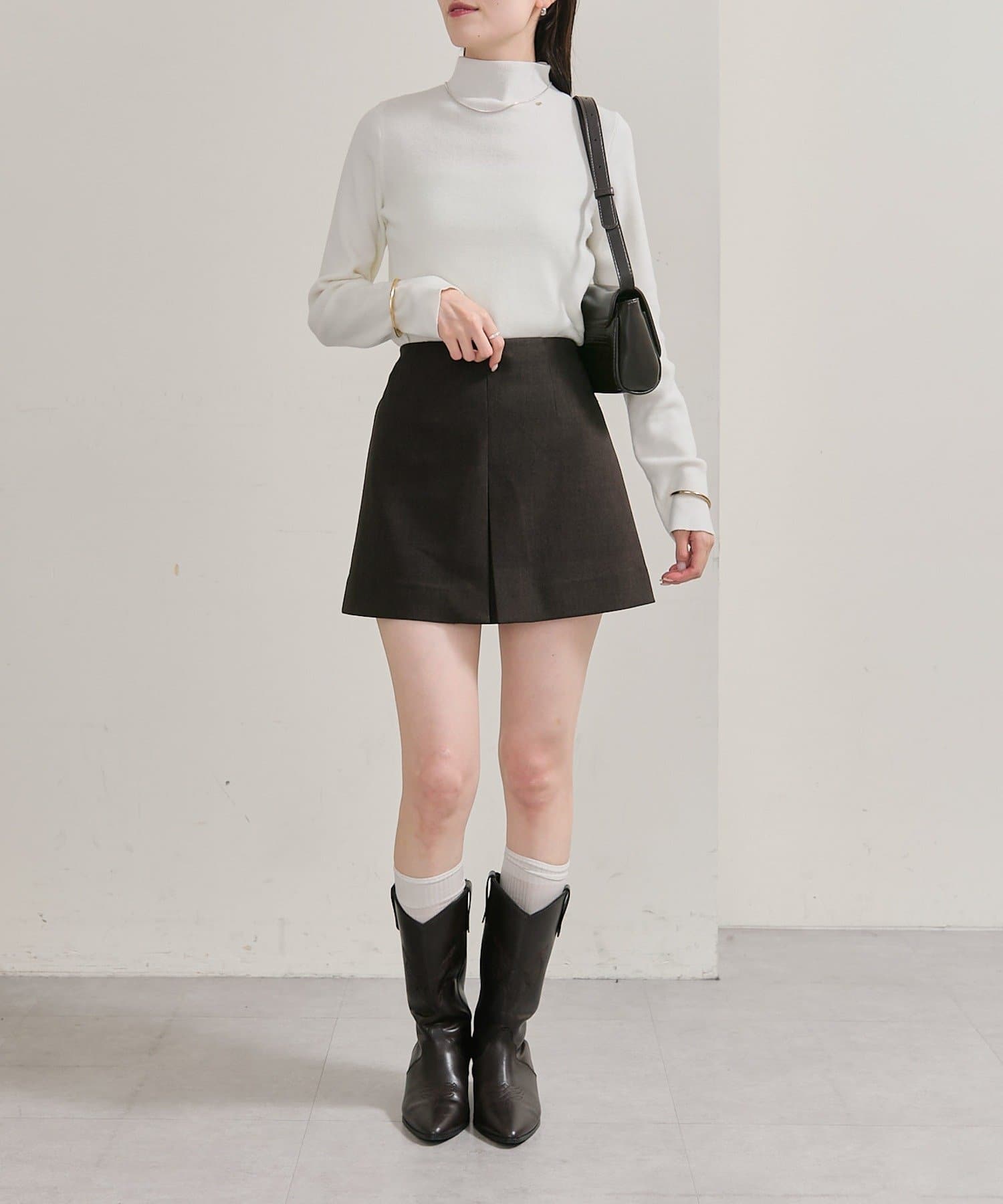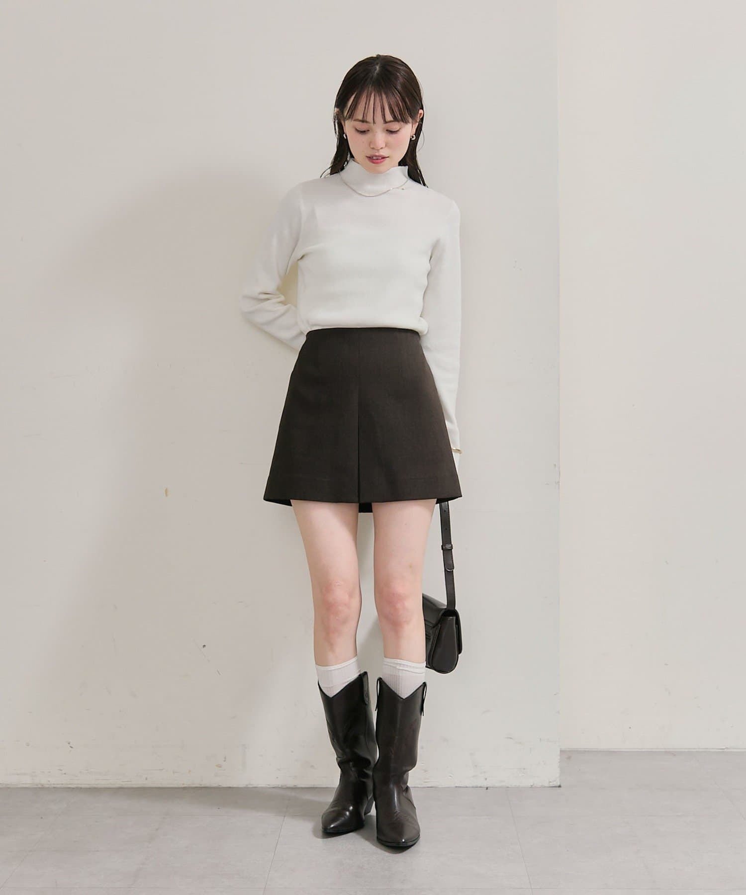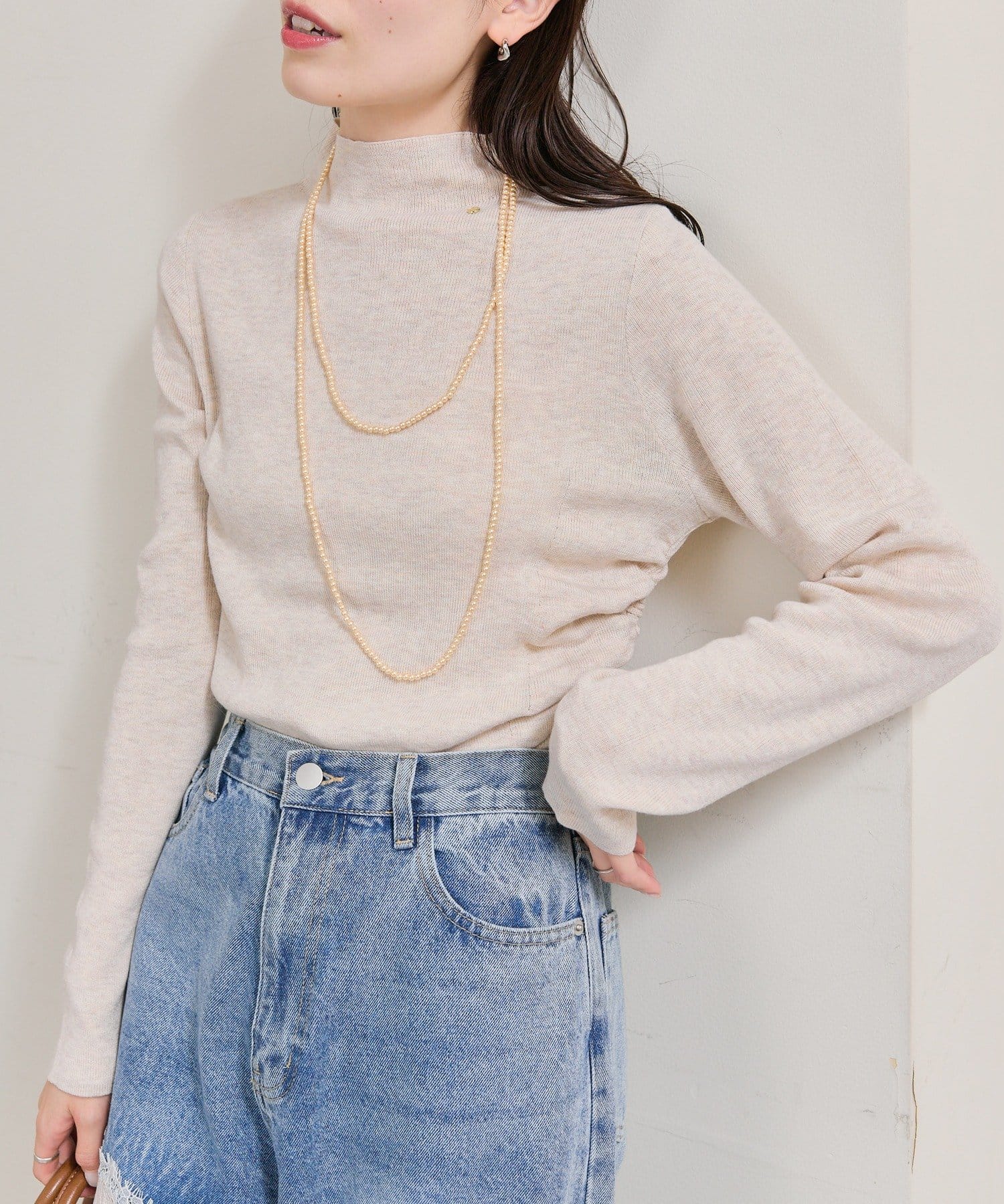 レイヤードスタイルに最適!上品見えするプレートがポイントのハイネックニット