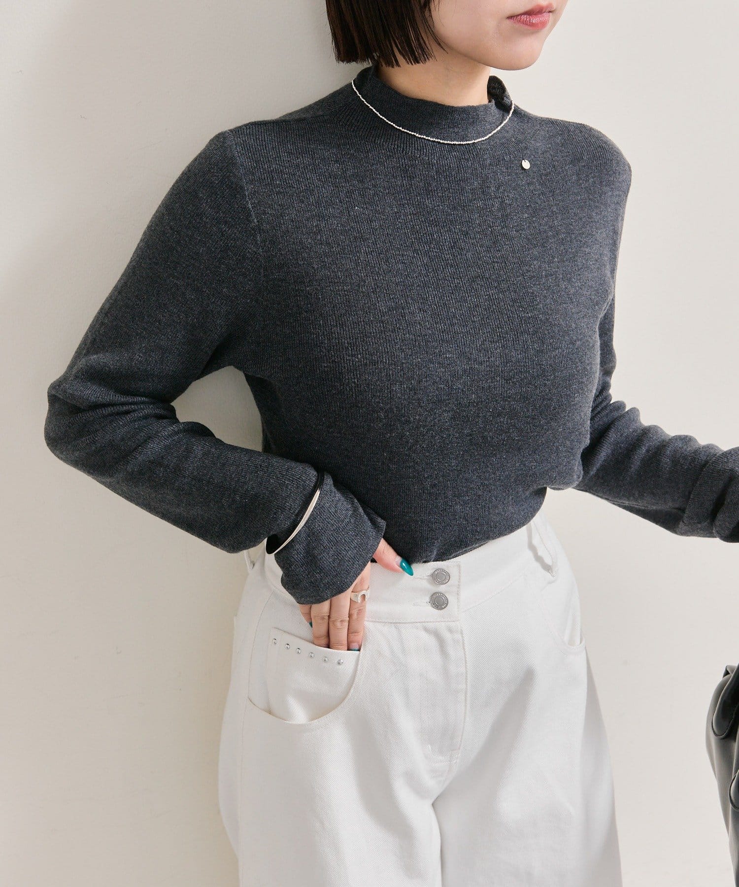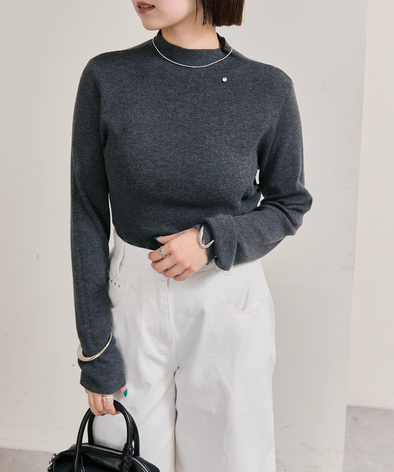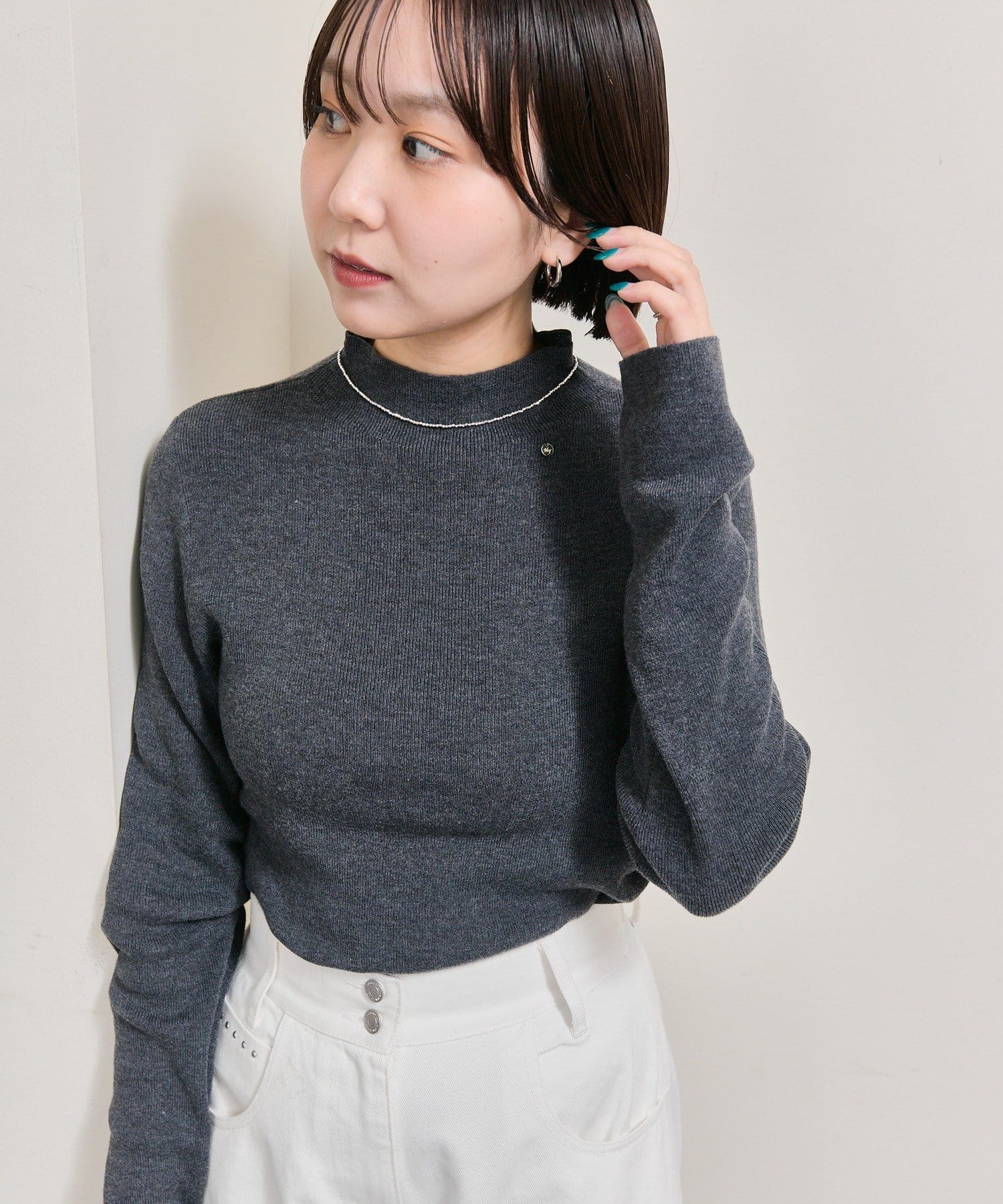 レイヤードスタイルに最適!上品見えするプレートがポイントのハイネックニット