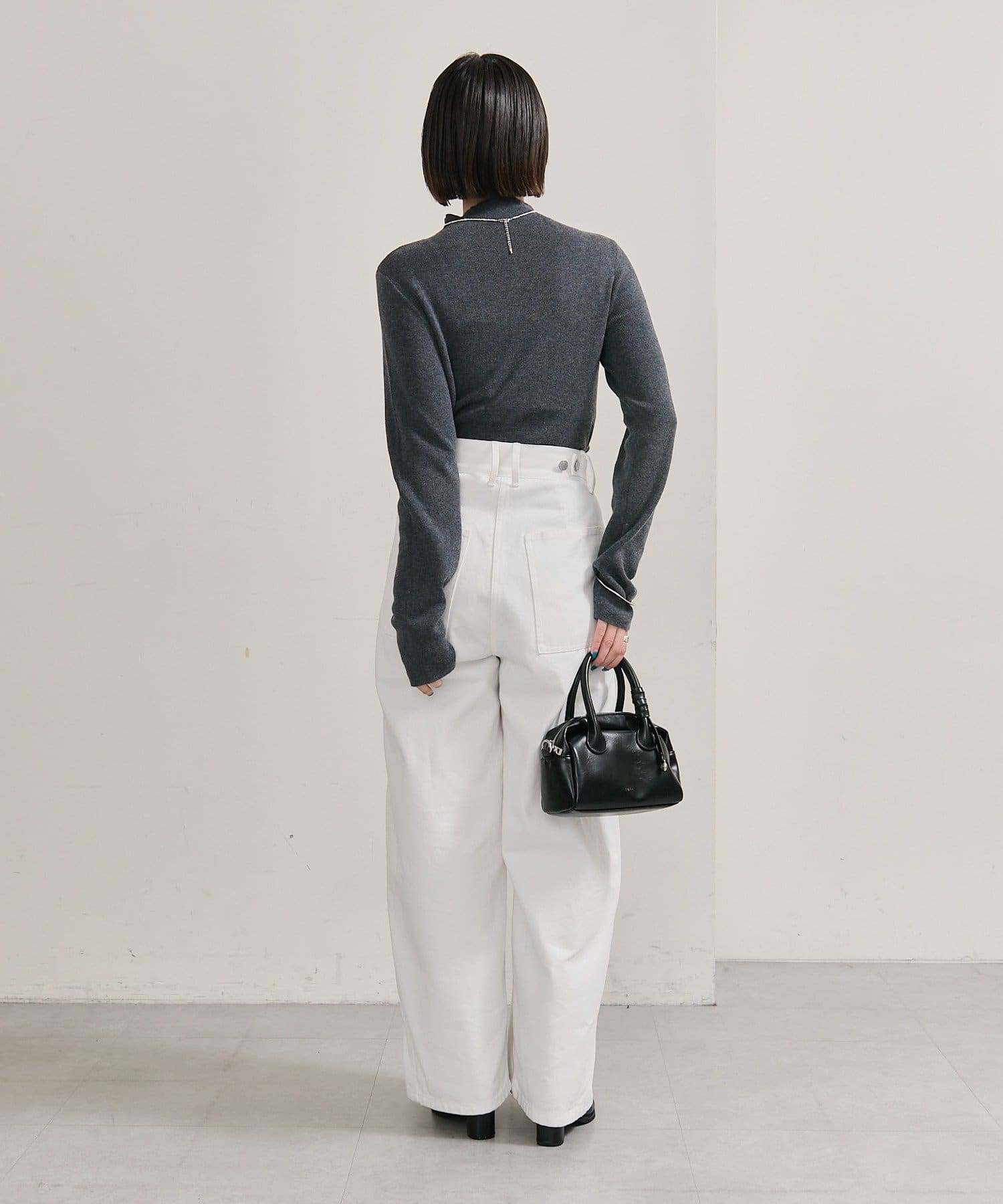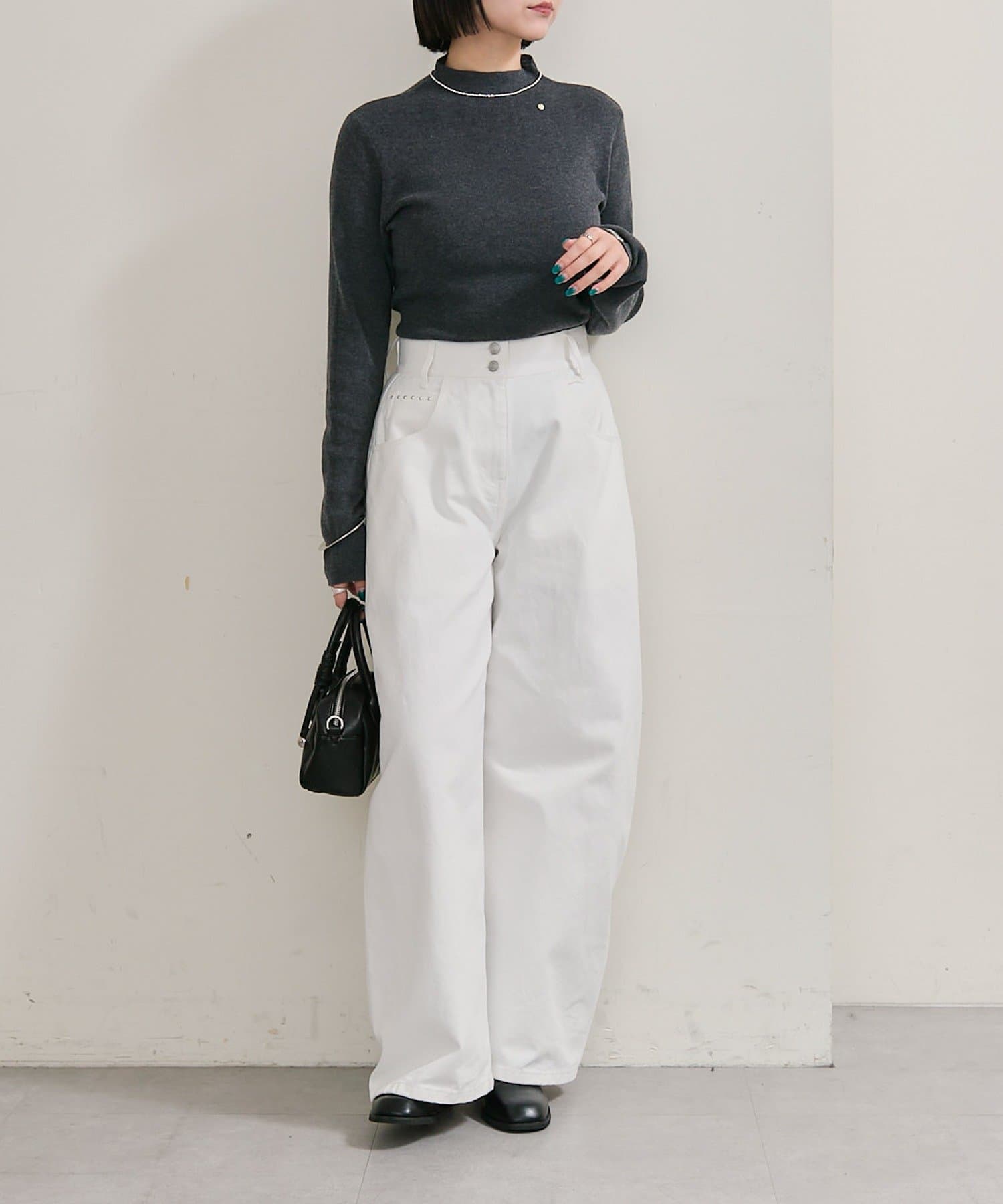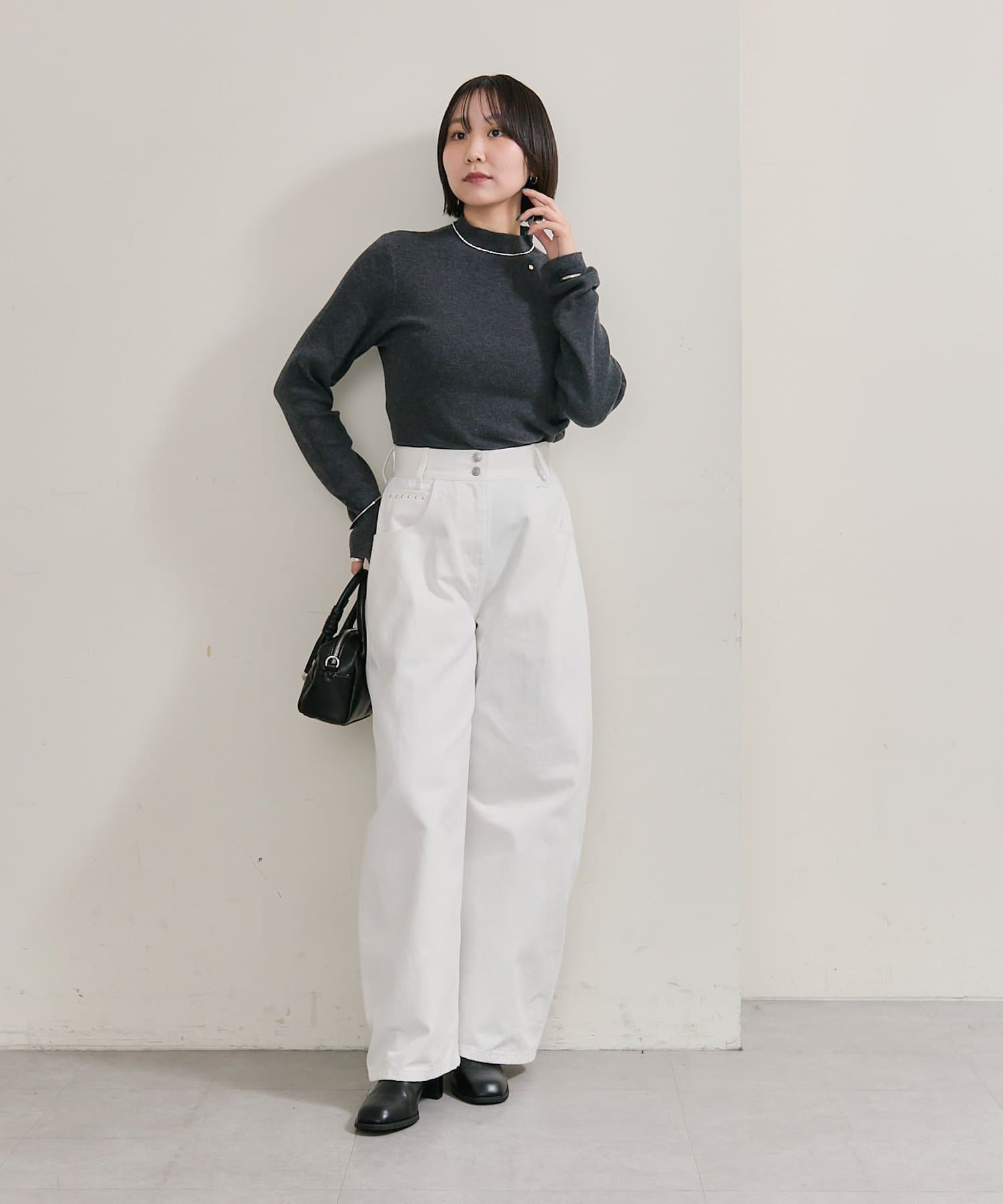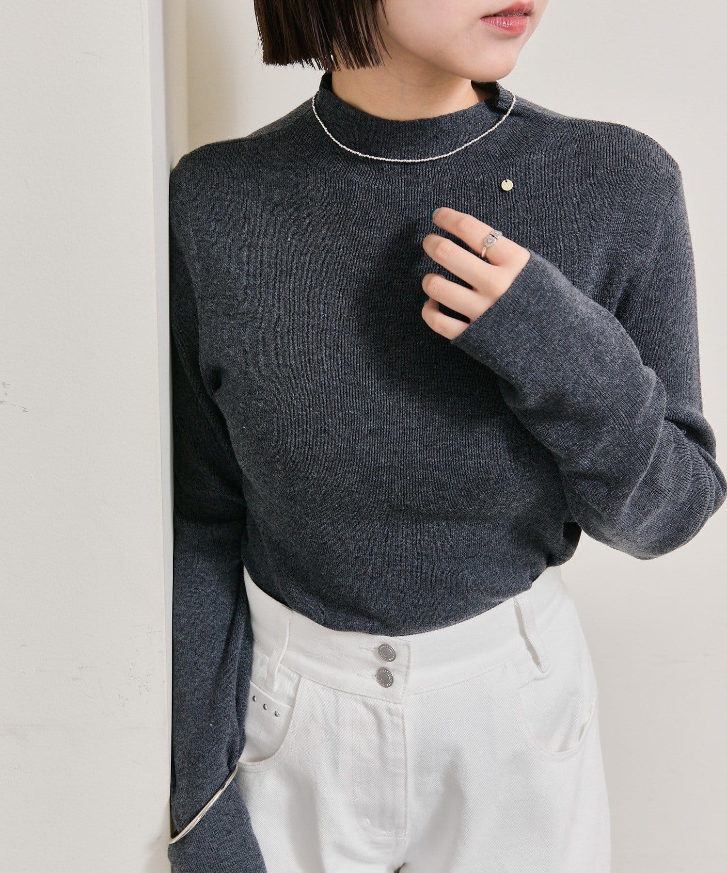 レイヤードスタイルに最適!上品見えするプレートがポイントのハイネックニット
