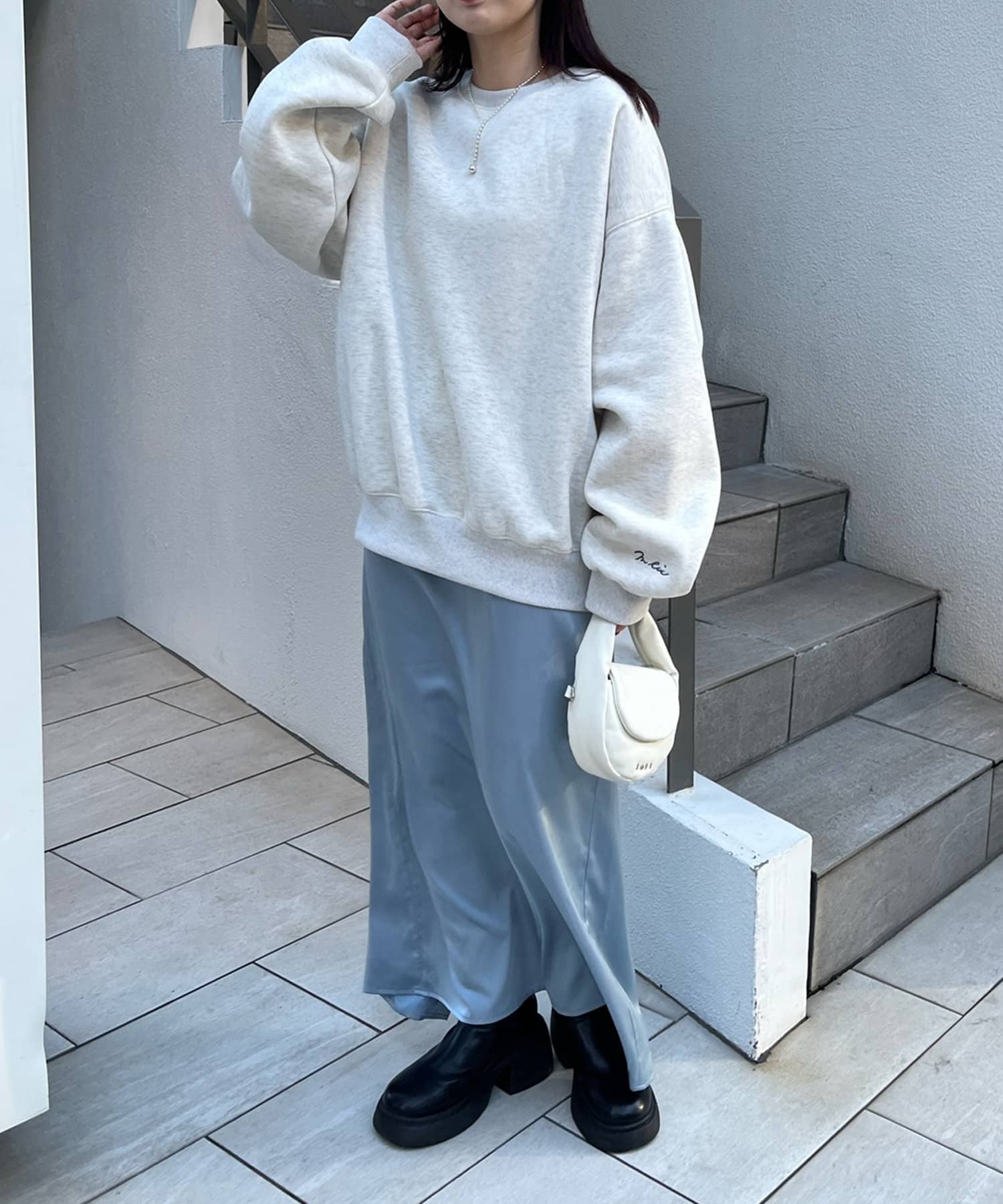 ・落ち感が可愛いシルエットと袖のたっぽり感がカジュアルになりすぎない◎