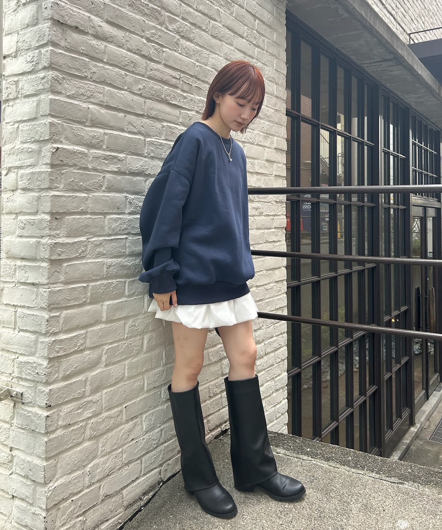 ・ミニ丈ボトムス×ロングブーツ合わせでトレンドライクな着こなしに!