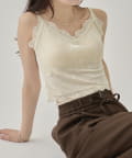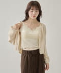 ・胸元と裾にあしらわれた繊細なレースで、上品な中に甘め要素をプラス。
