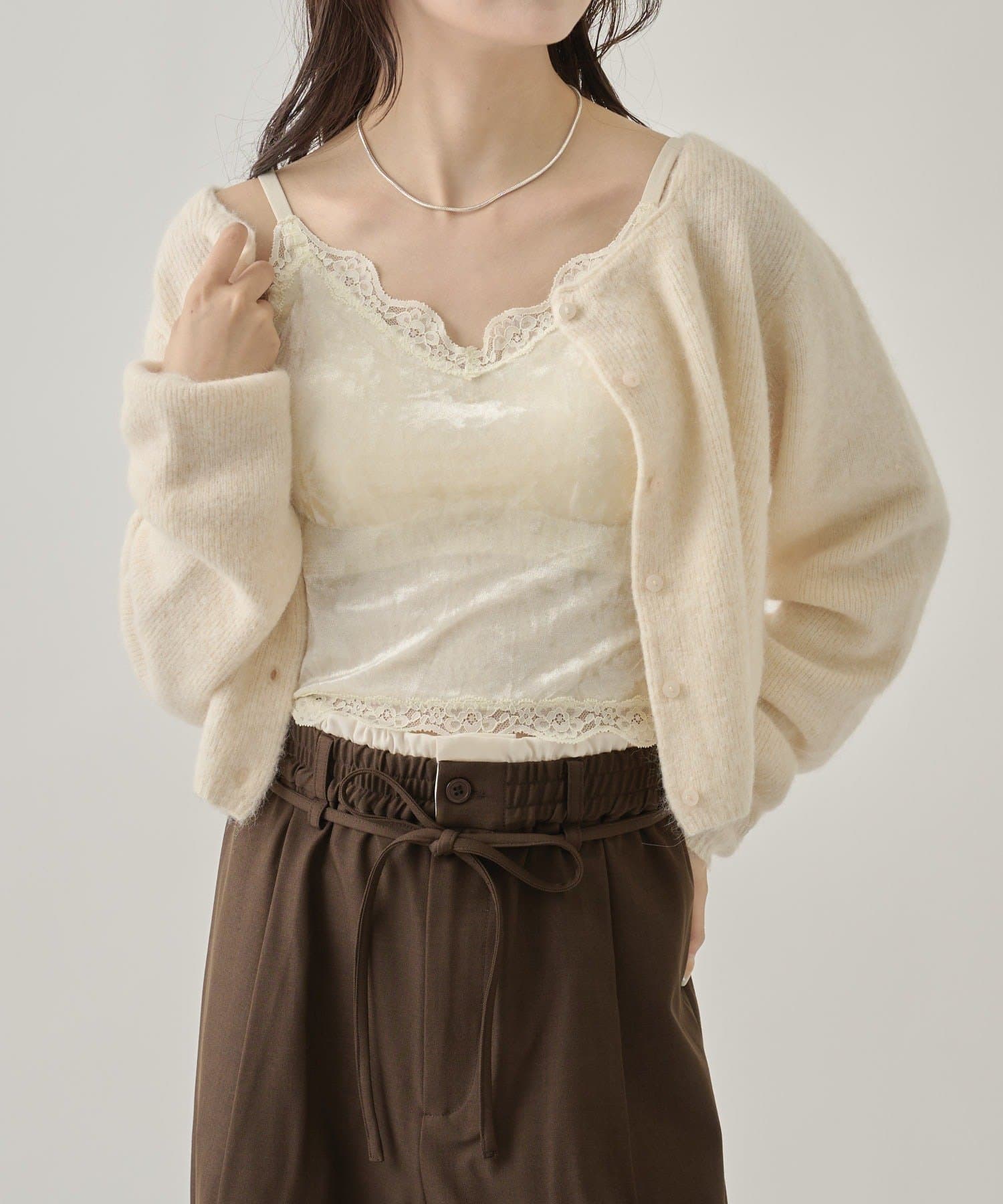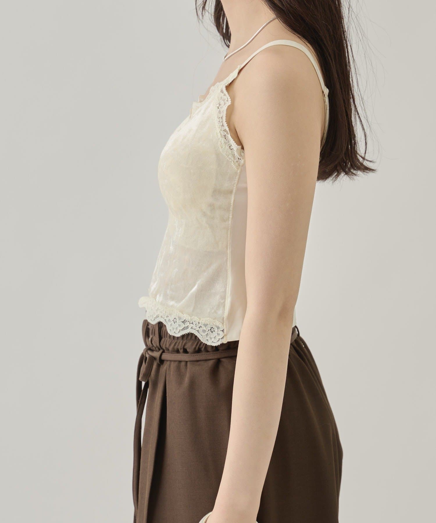 ・上品な光沢感が魅力的なベロア素材のキャミソール。