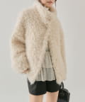 ・ボリューム感のある巻き毛のフェイクファーが目を惹く主役級ミドルコート。