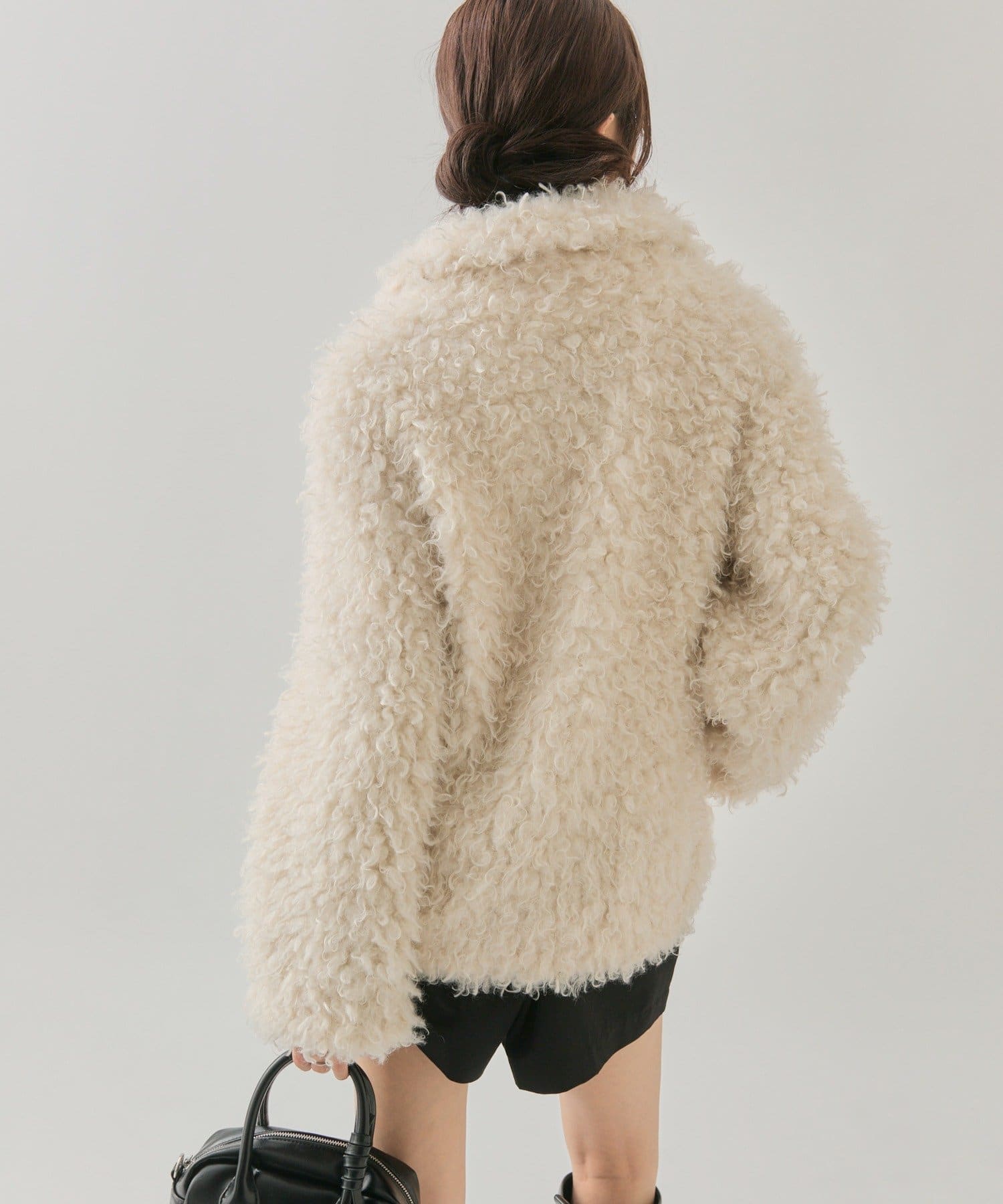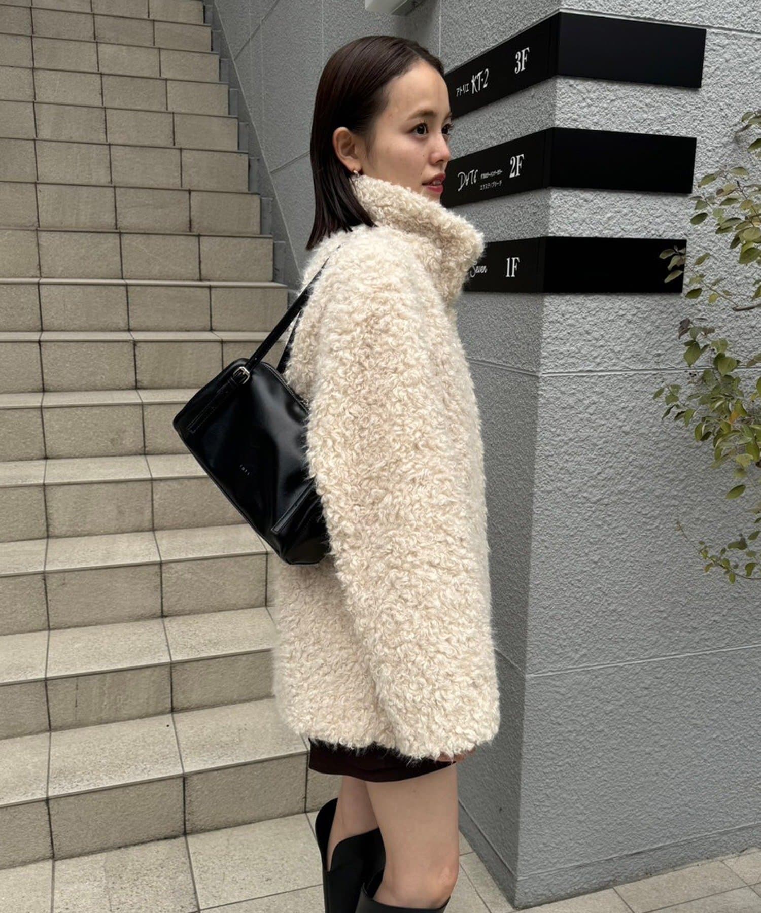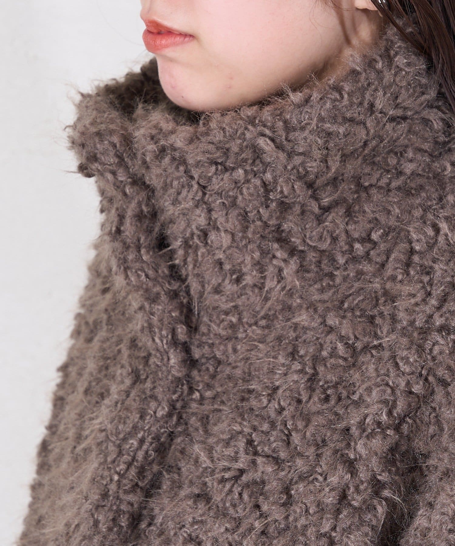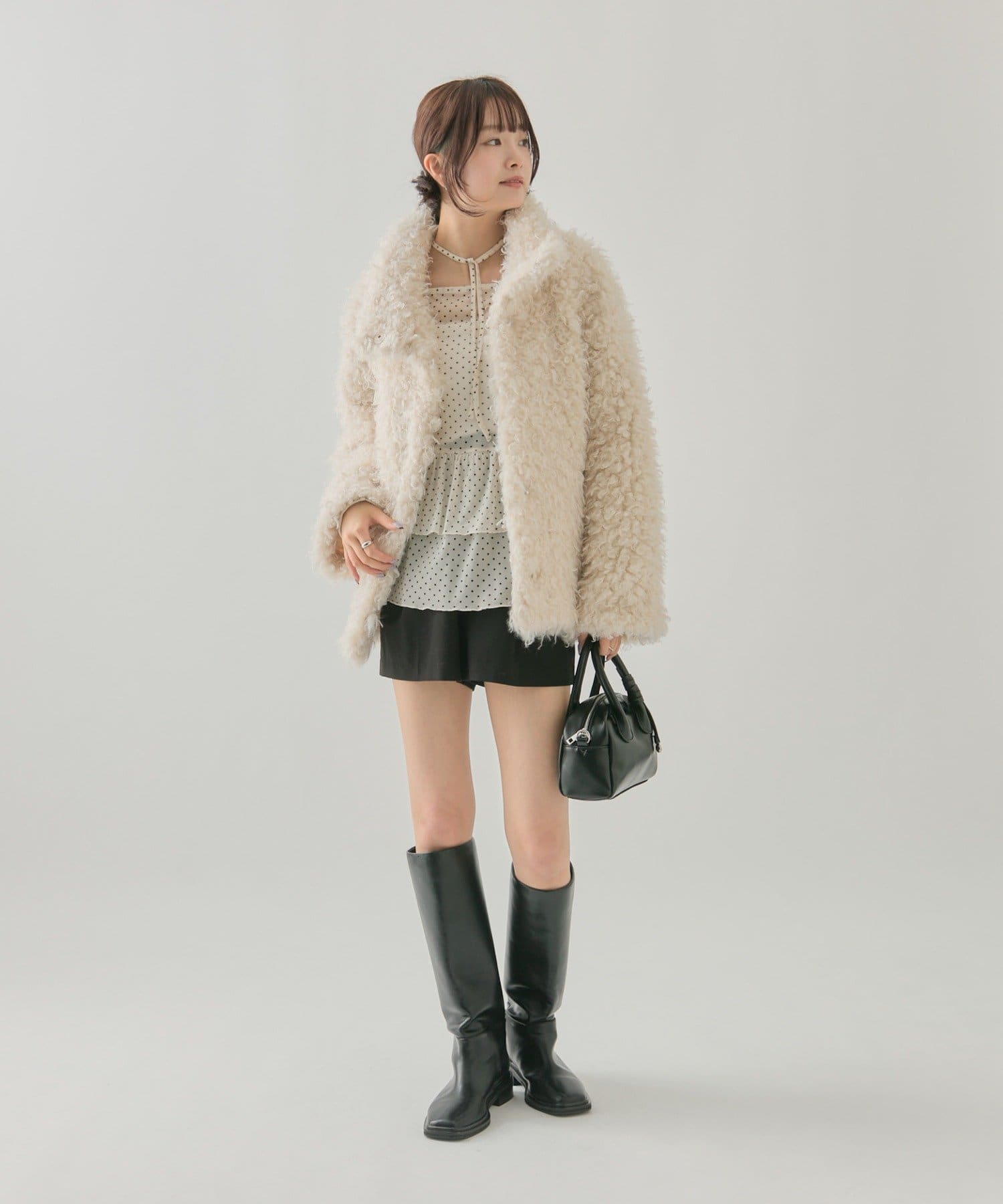 ・ボリューム感のある巻き毛のフェイクファーが目を惹く主役級ミドルコート。