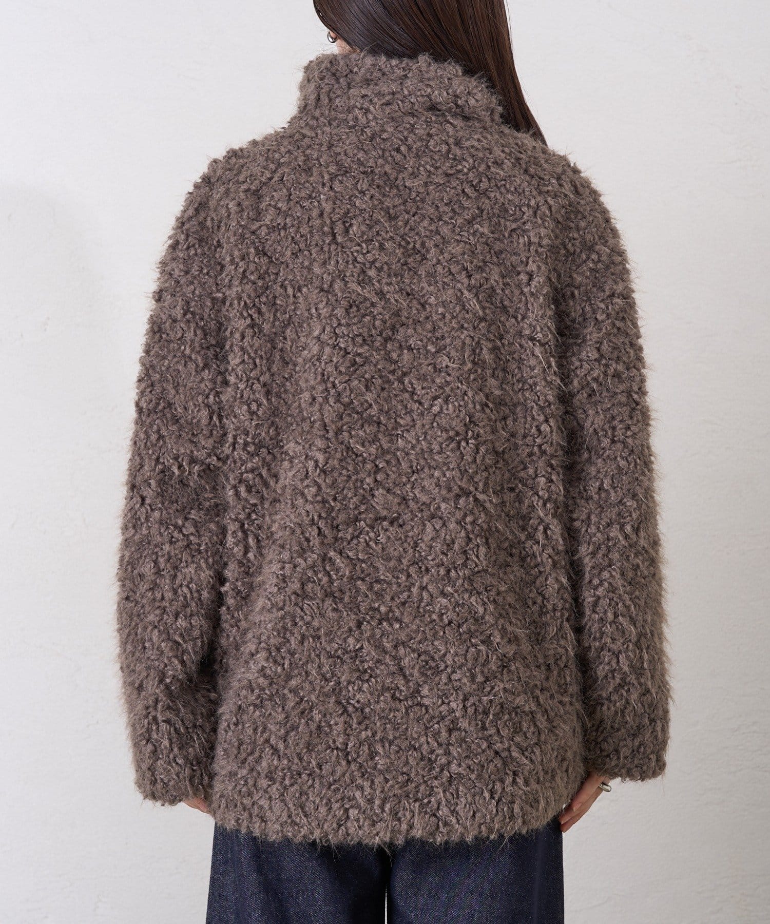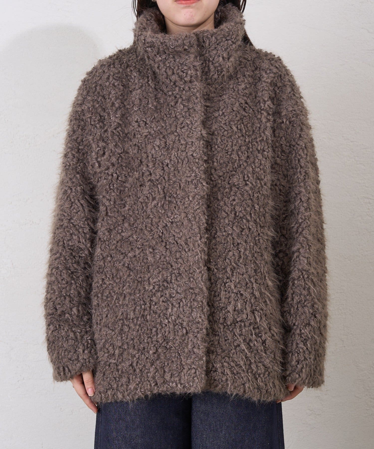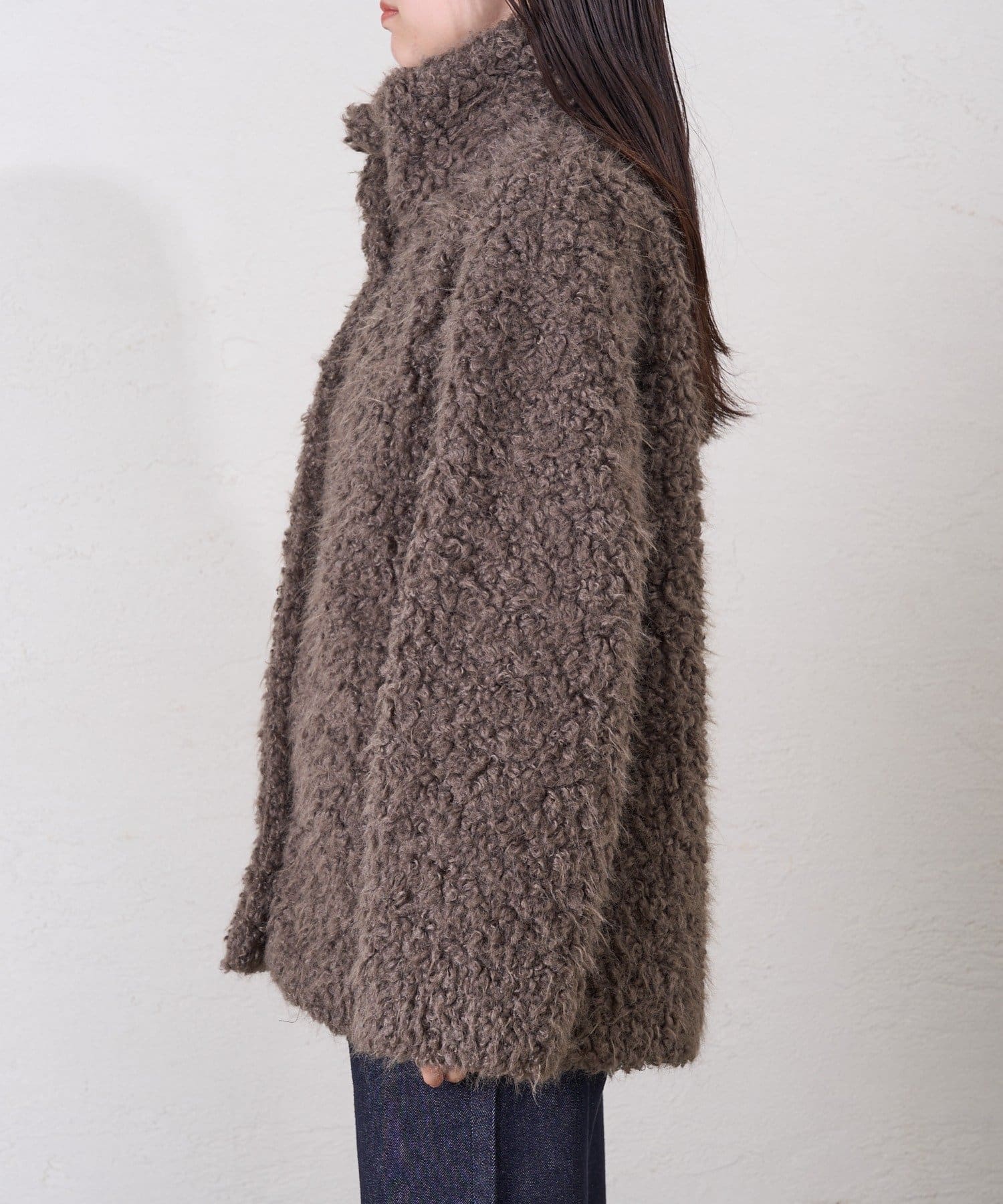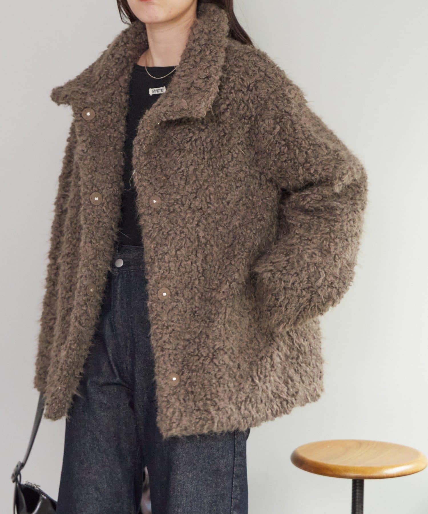 ・ボリューム感のある巻き毛のフェイクファーが目を惹く主役級ミドルコート。
