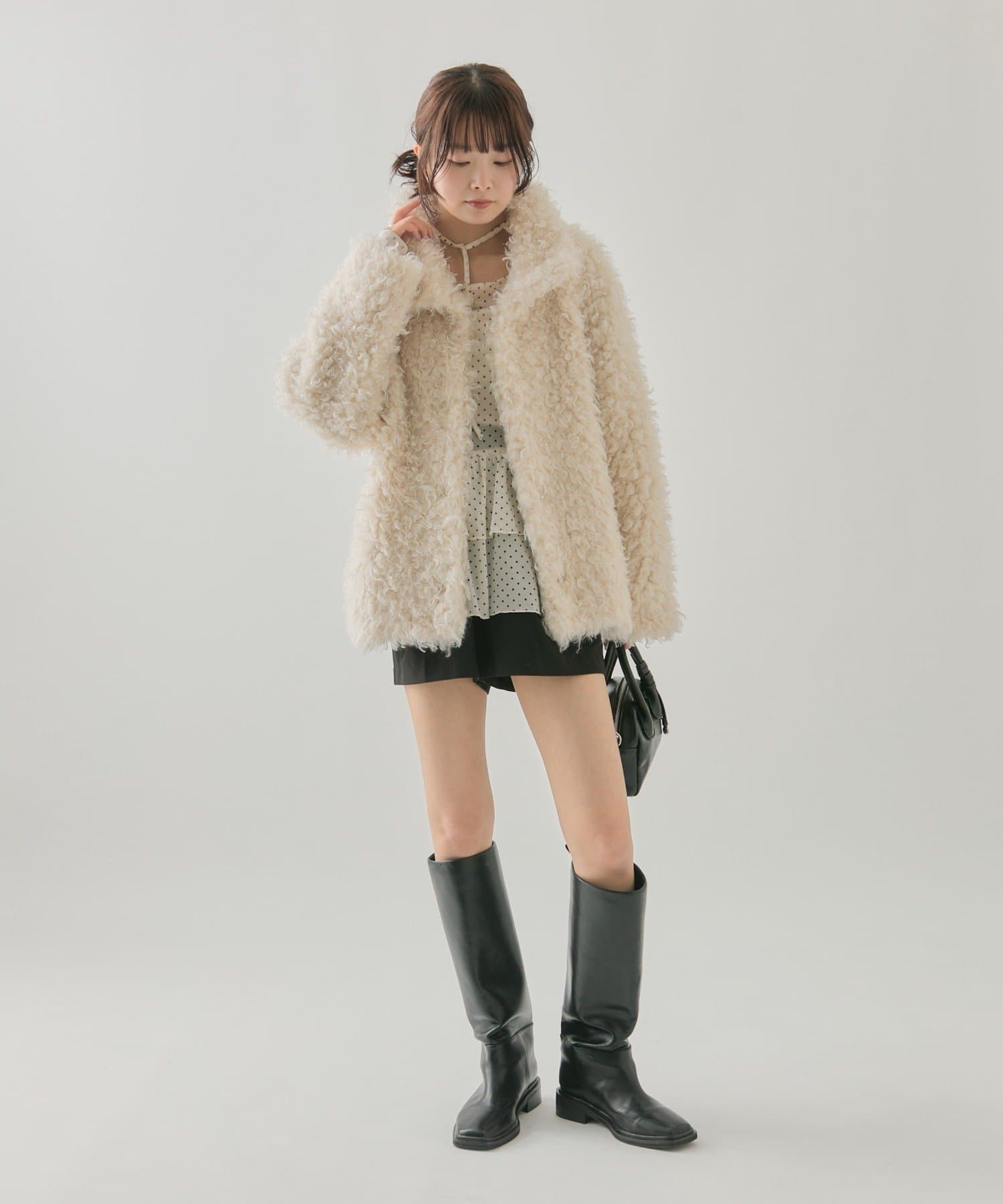 お声多数いただきmysticで大人気だったアイテムがEC限定でリバイバル決定!ふわふわのボリューム感が可愛い◎シーズンムード高まるファーコートが再登場!