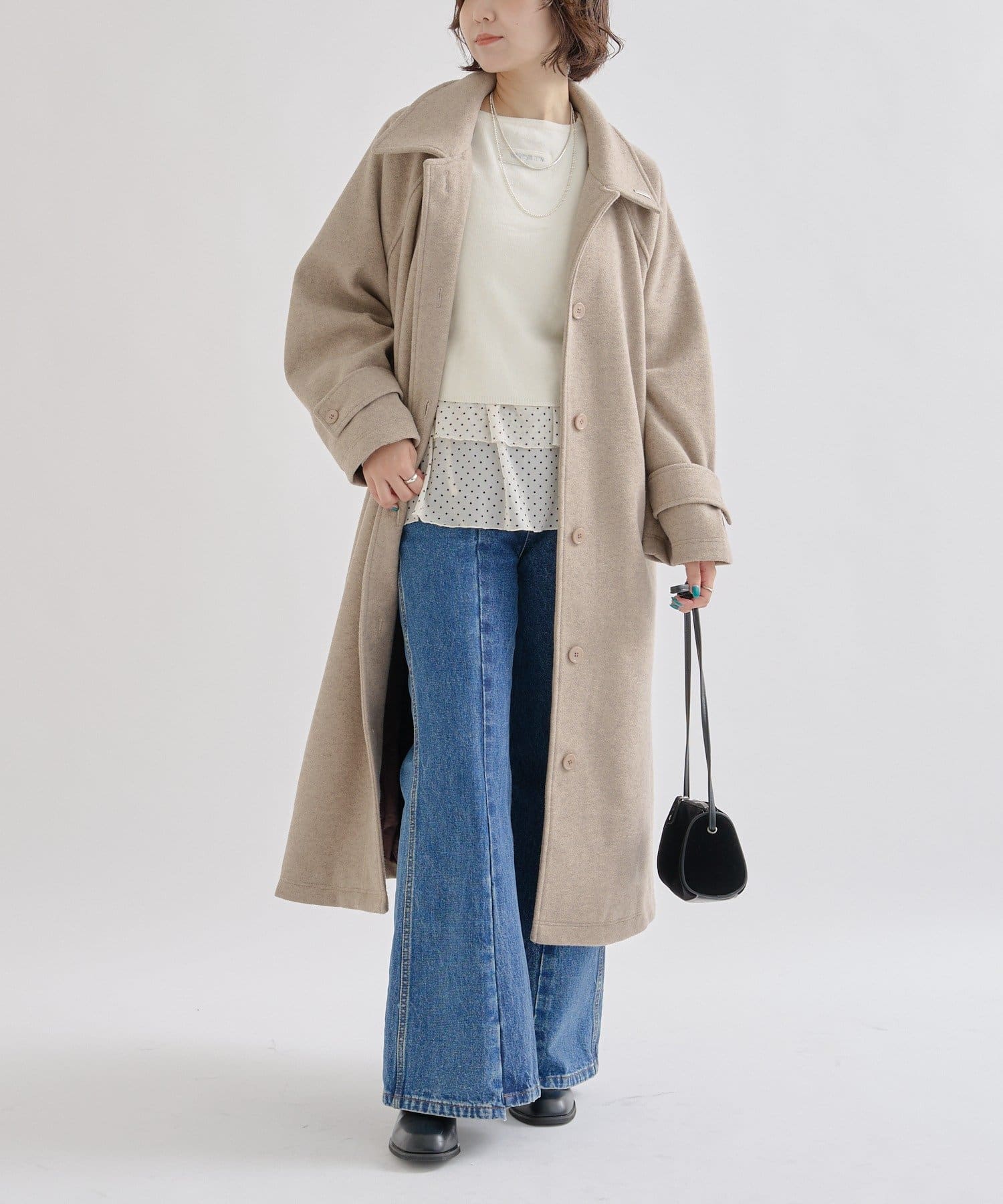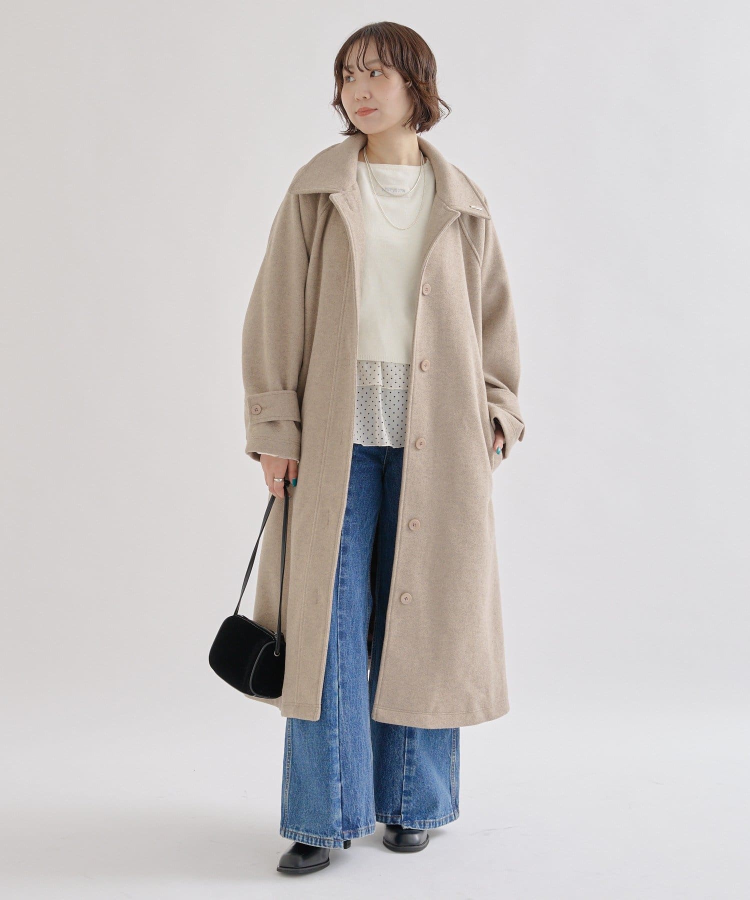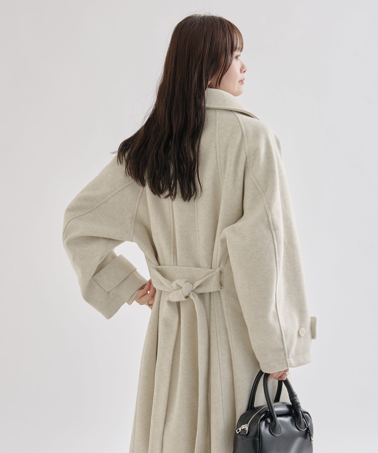 どの角度から見ても可愛いデザインで、一枚で主役級のコートです!