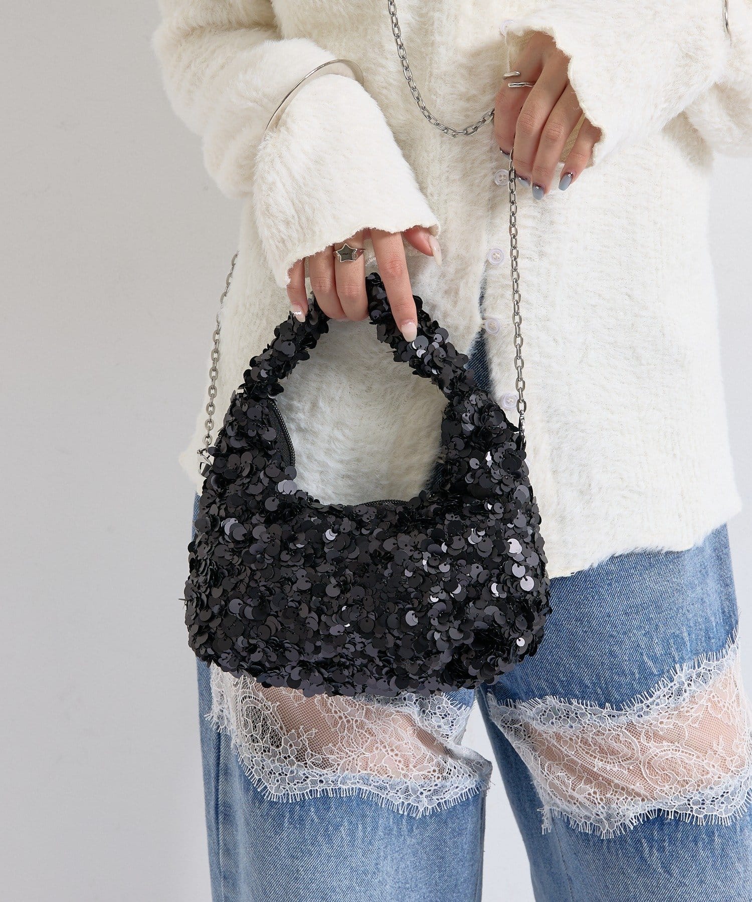 キラキラ輝くスパンコールが目を惹くショルダーバッグ!