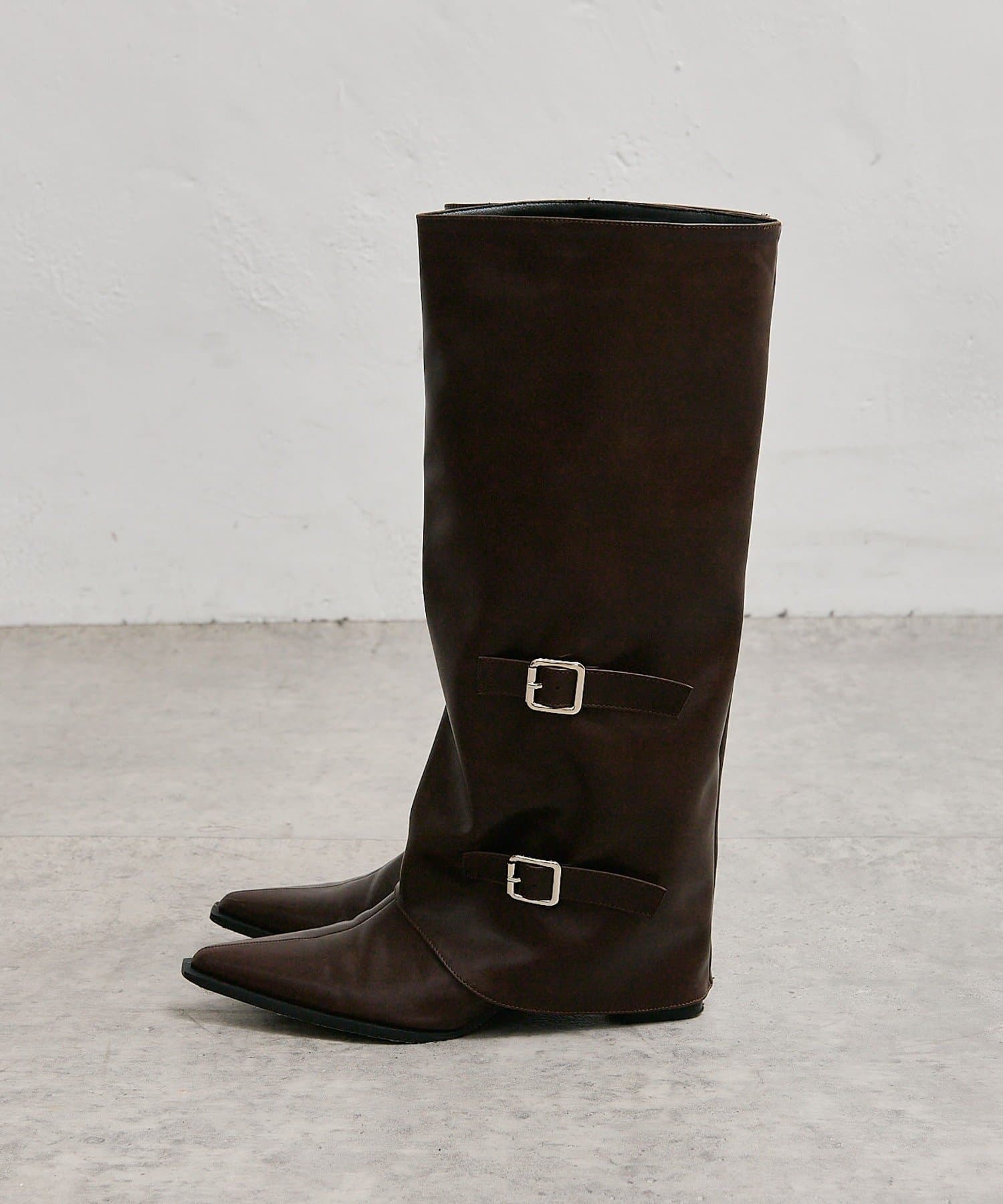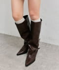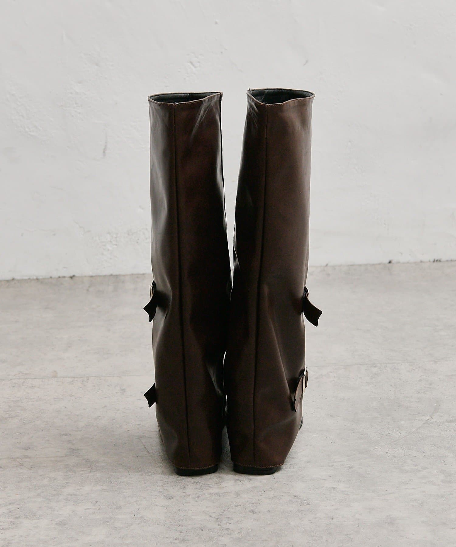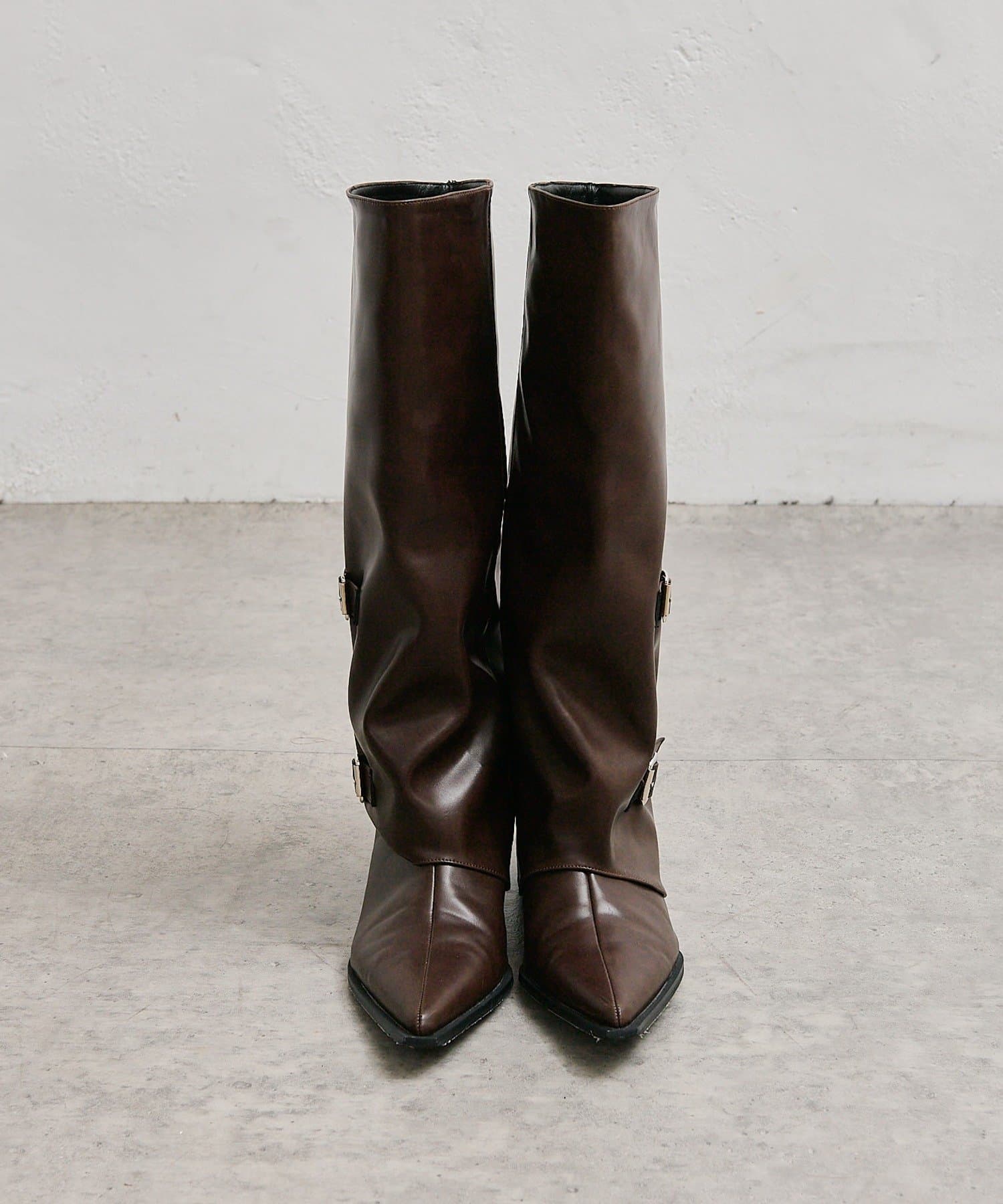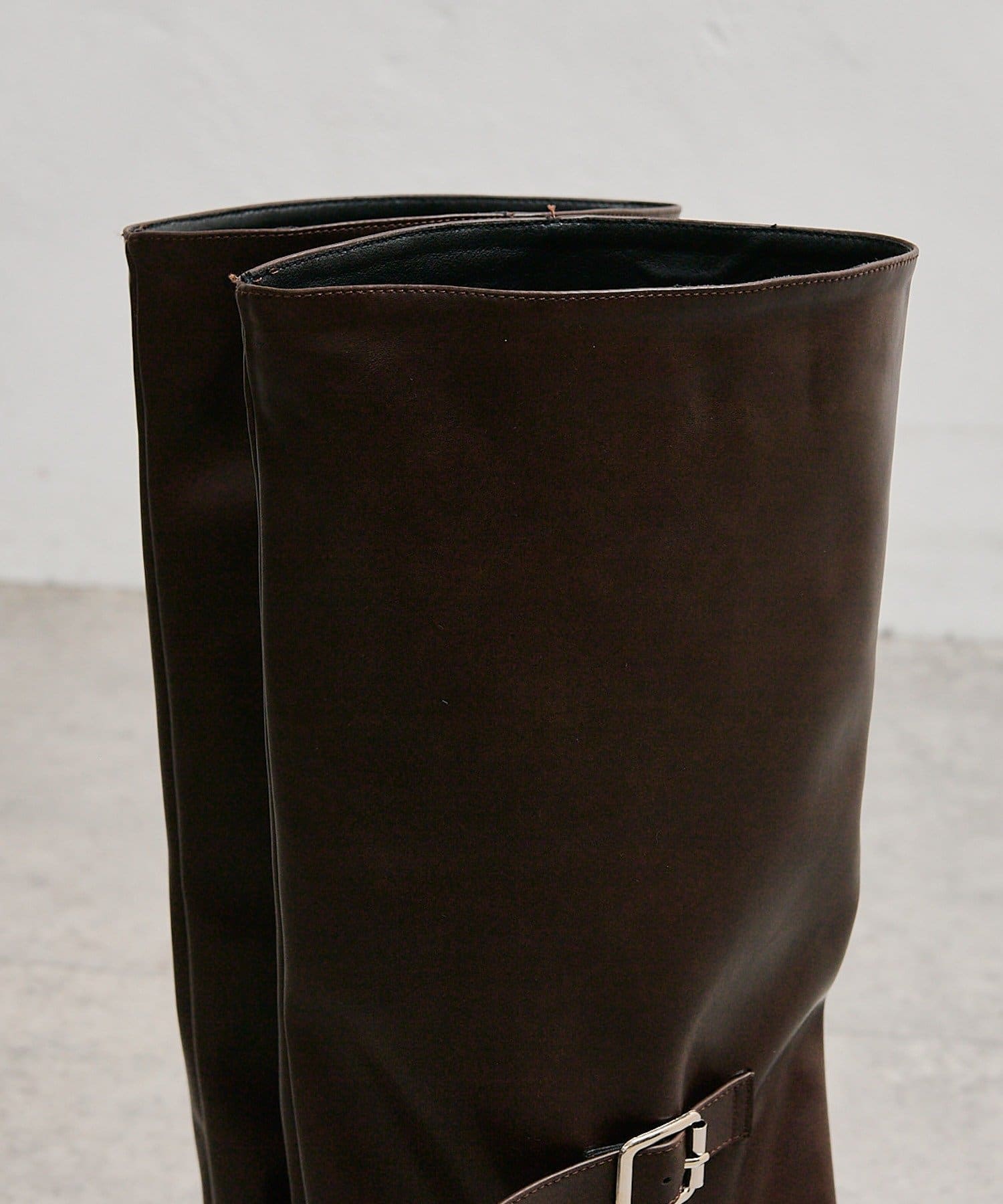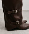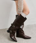 ・存在感のあるベルトデザインがポイントになったロングブーツ。