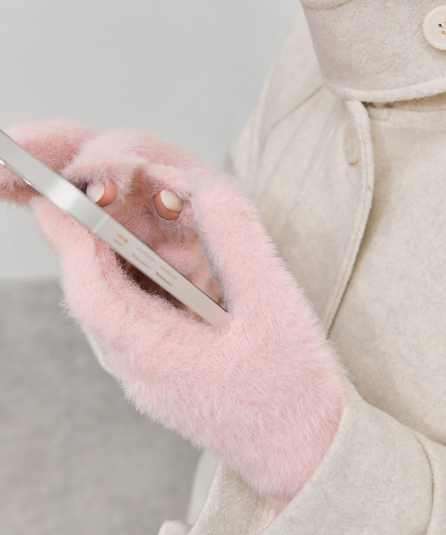 ・親指と人差し指に切り込みがあり、スマホ操作がしやすい仕様に。