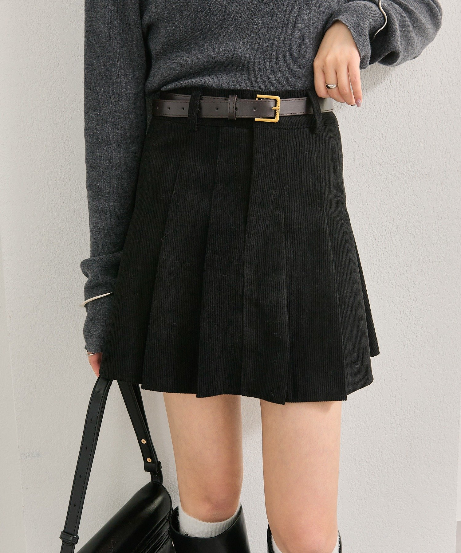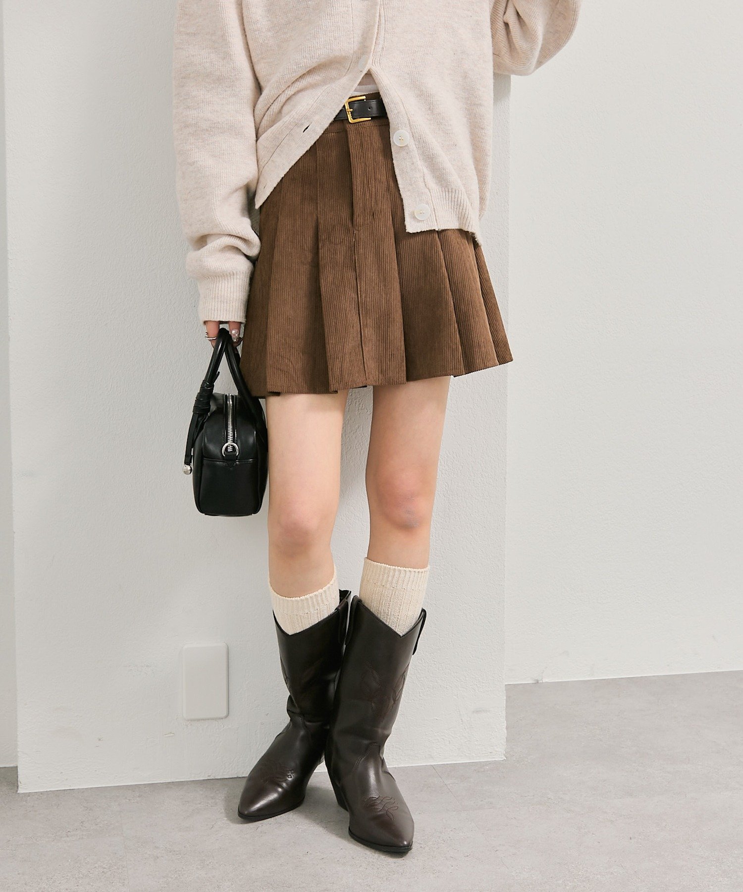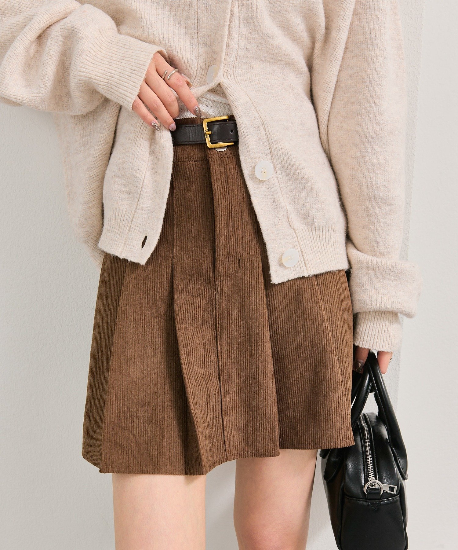プリーツデザインが可愛い◎コーデュロイ素材でシーズンムード高まるミニスカート