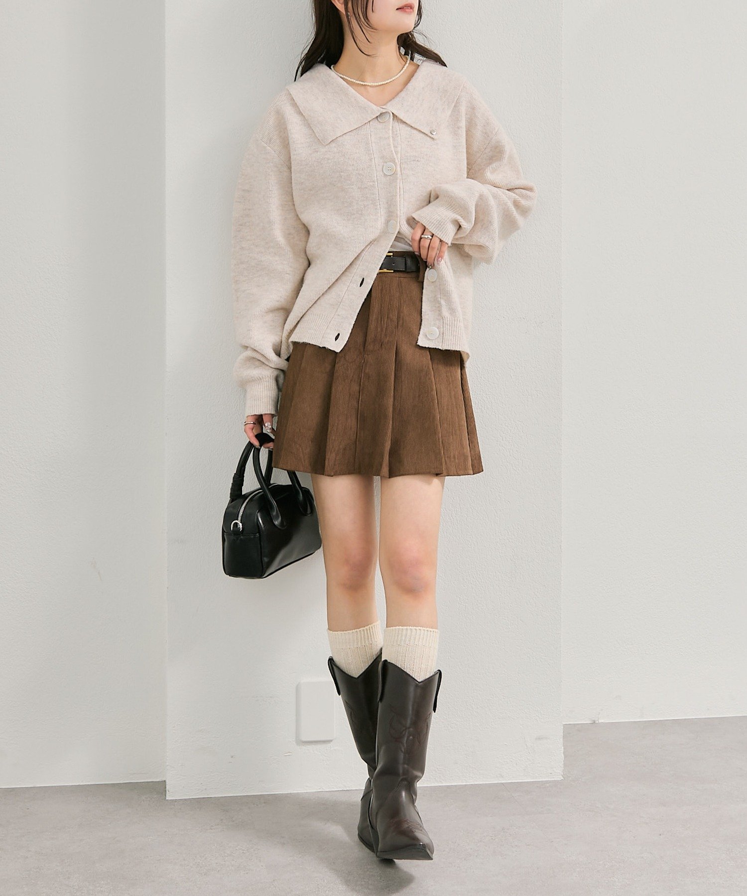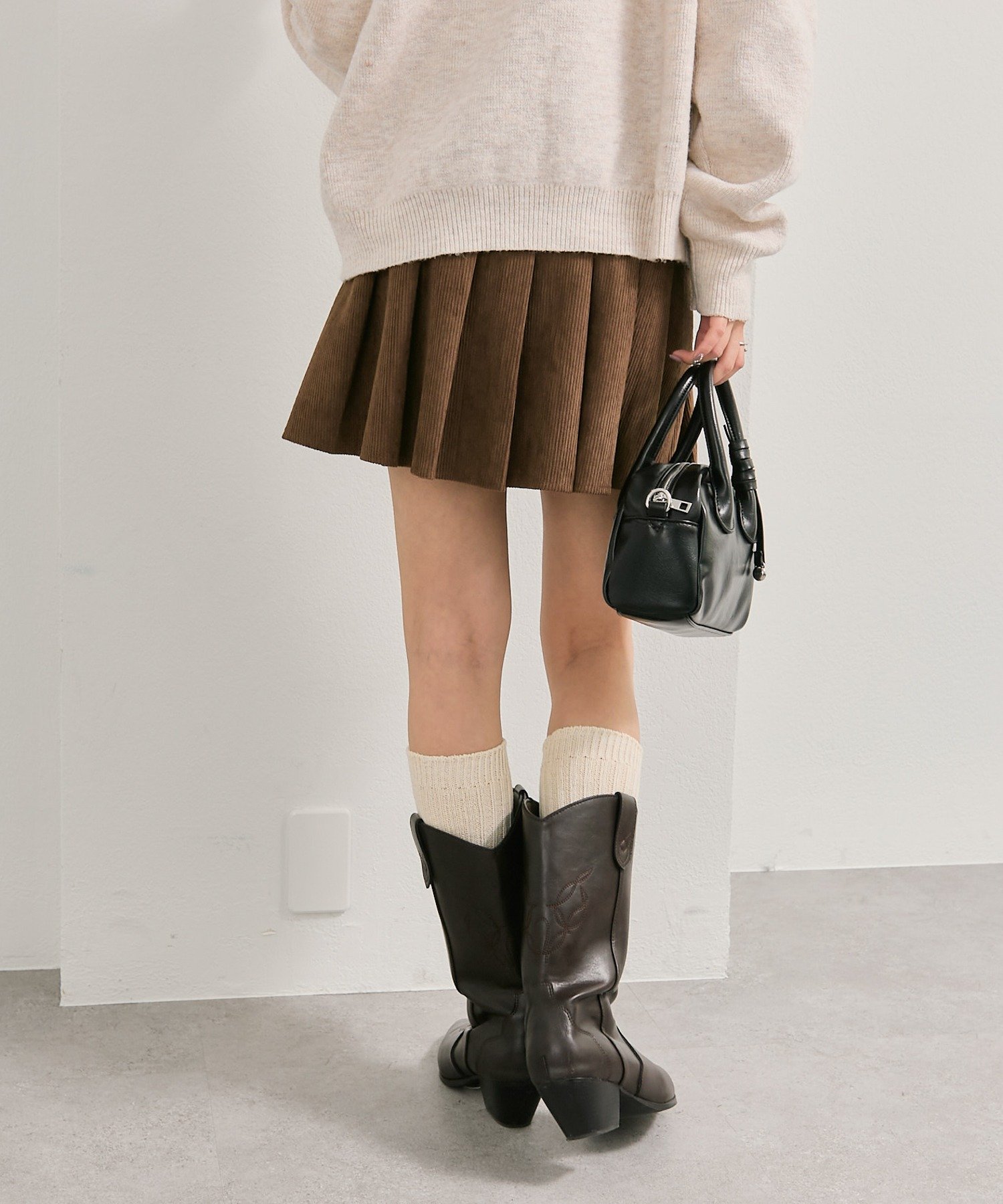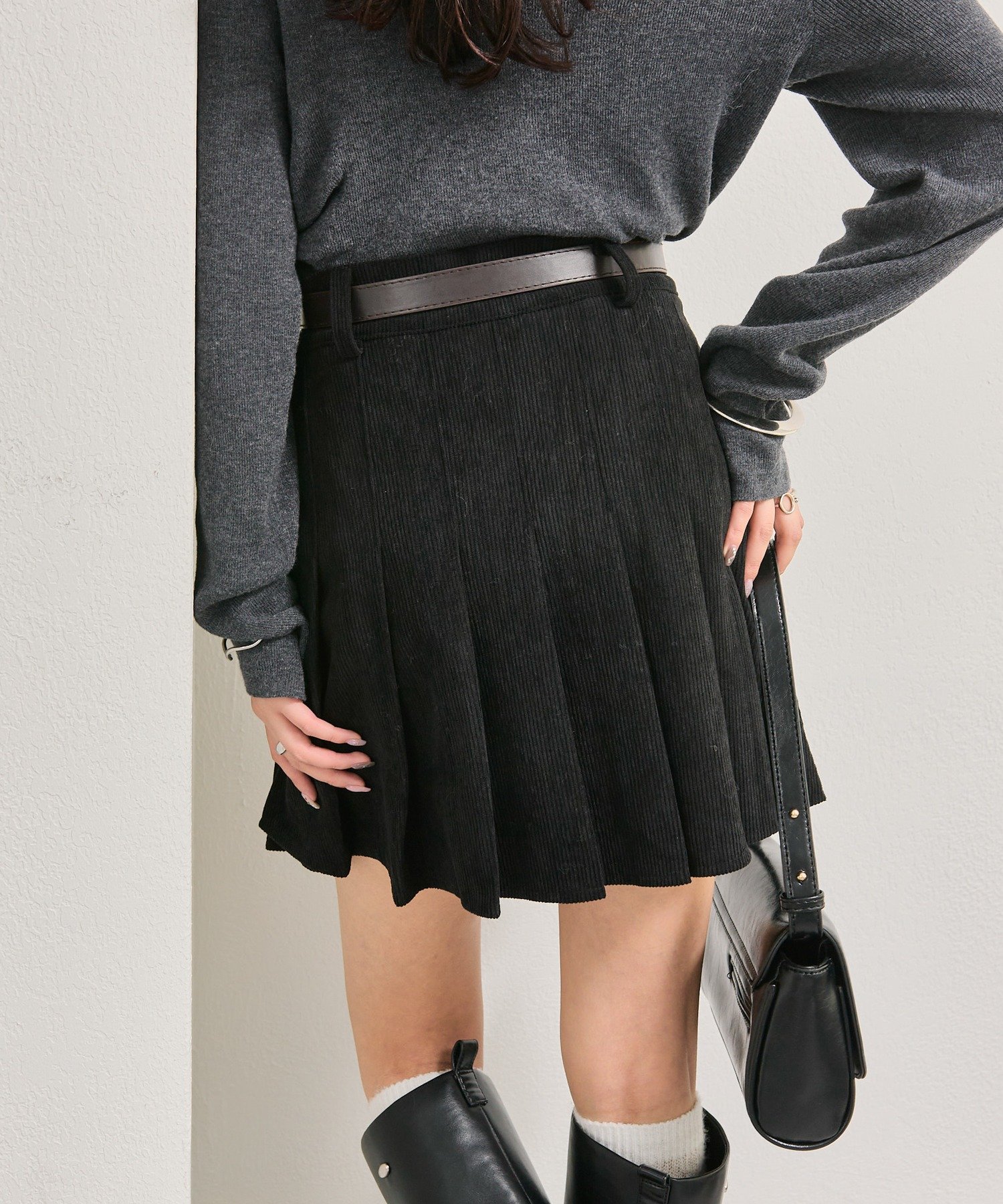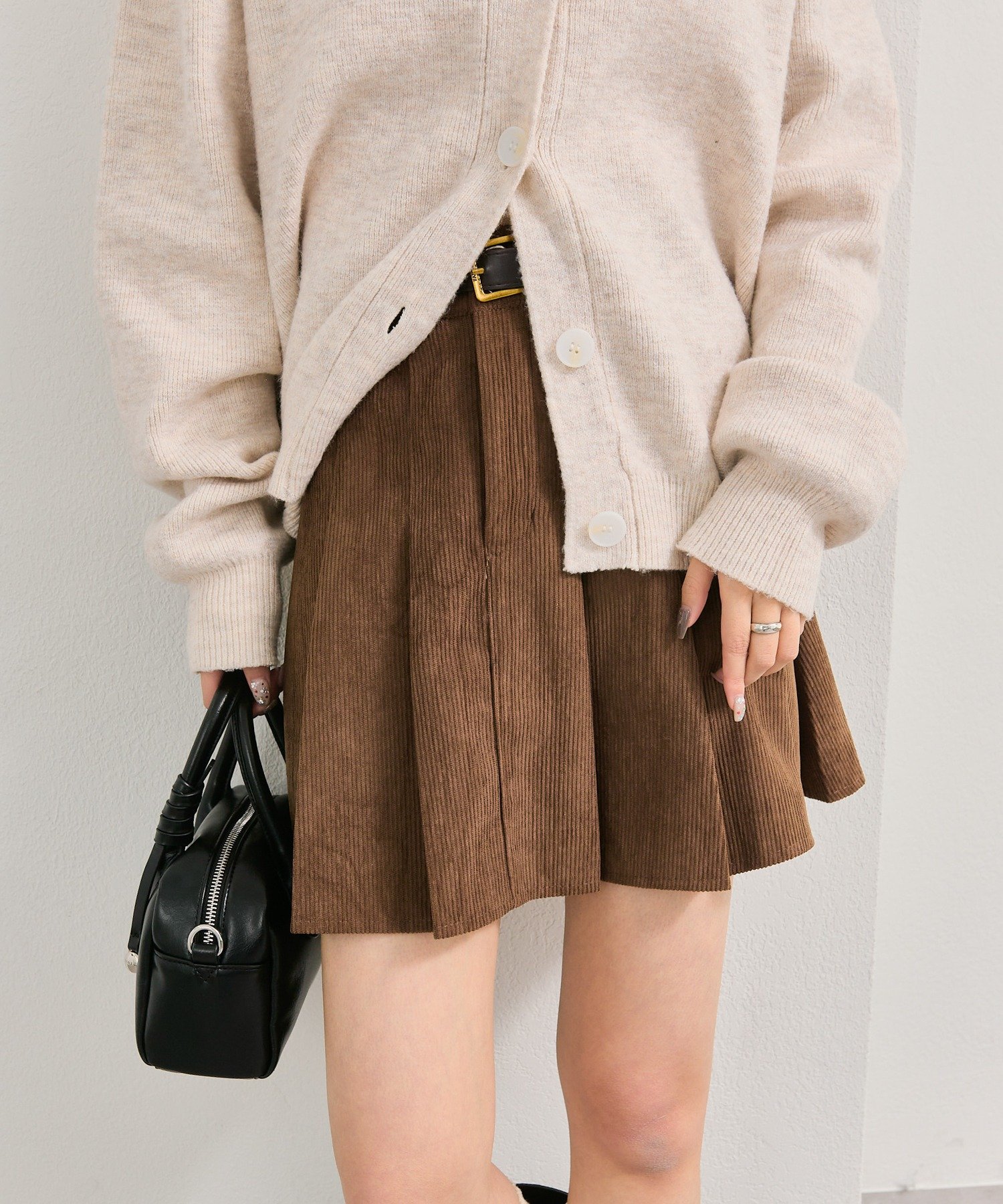 プリーツデザインが可愛い◎コーデュロイ素材でシーズンムード高まるミニスカート