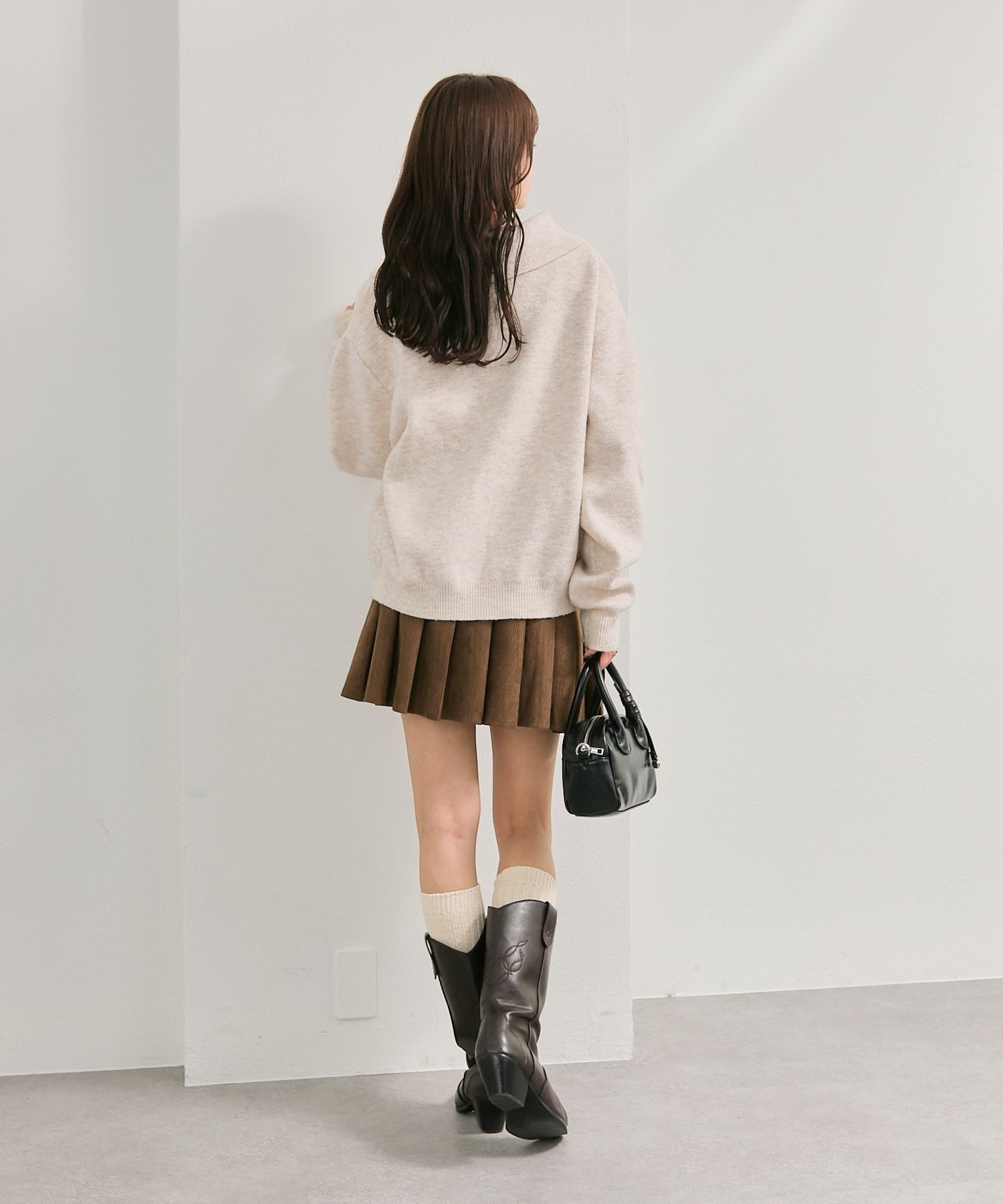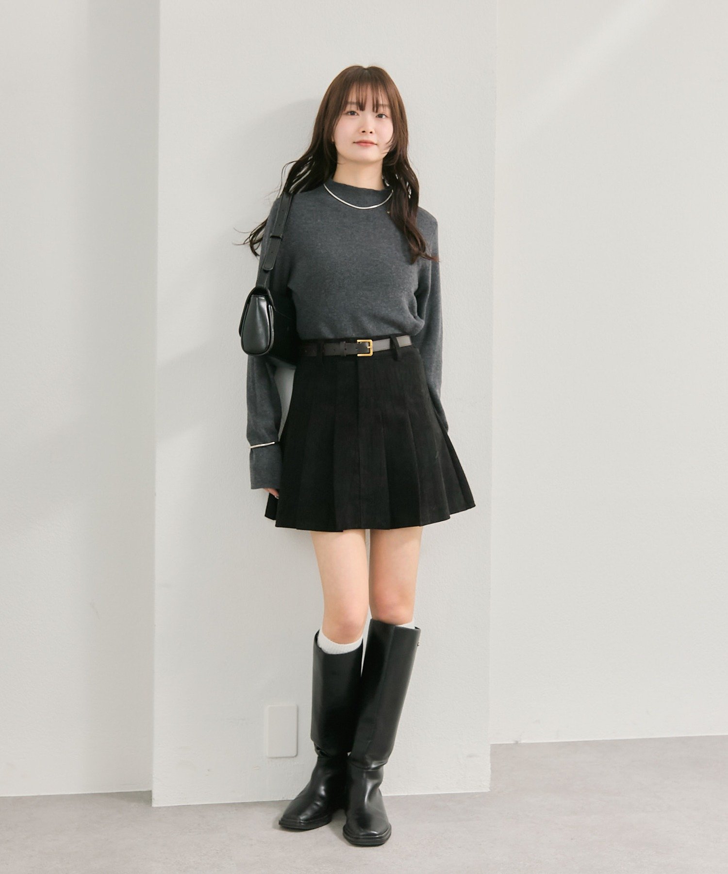 ・タートルニットやショート丈のトップスと合わせてフェミニンスタイルに。