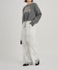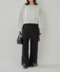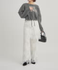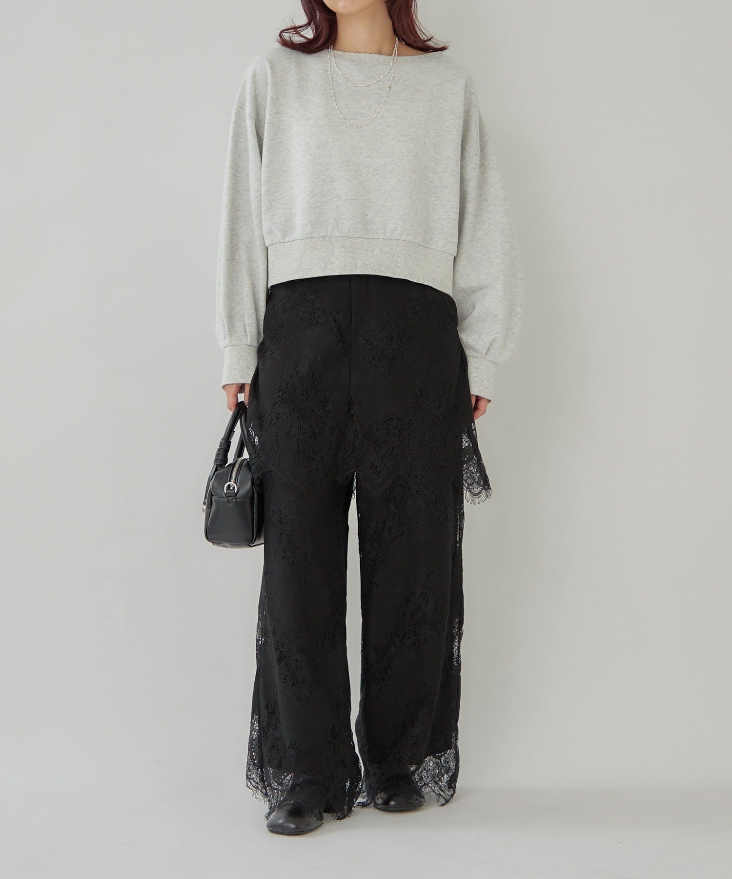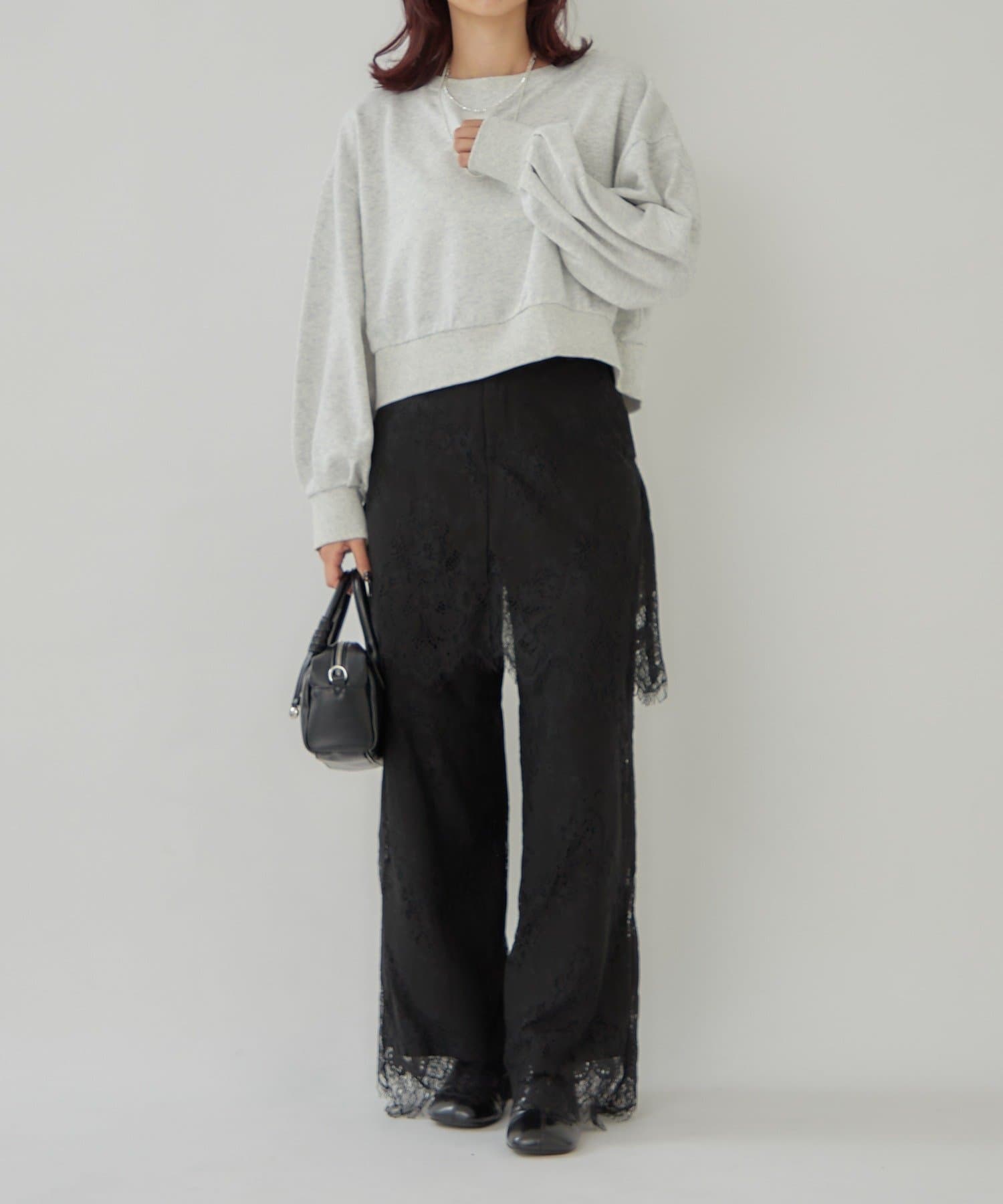 ・ロゴスウェットやニットなどカジュアルトップスを合わせて、レースの甘さを少し抑えたスタイリングも。