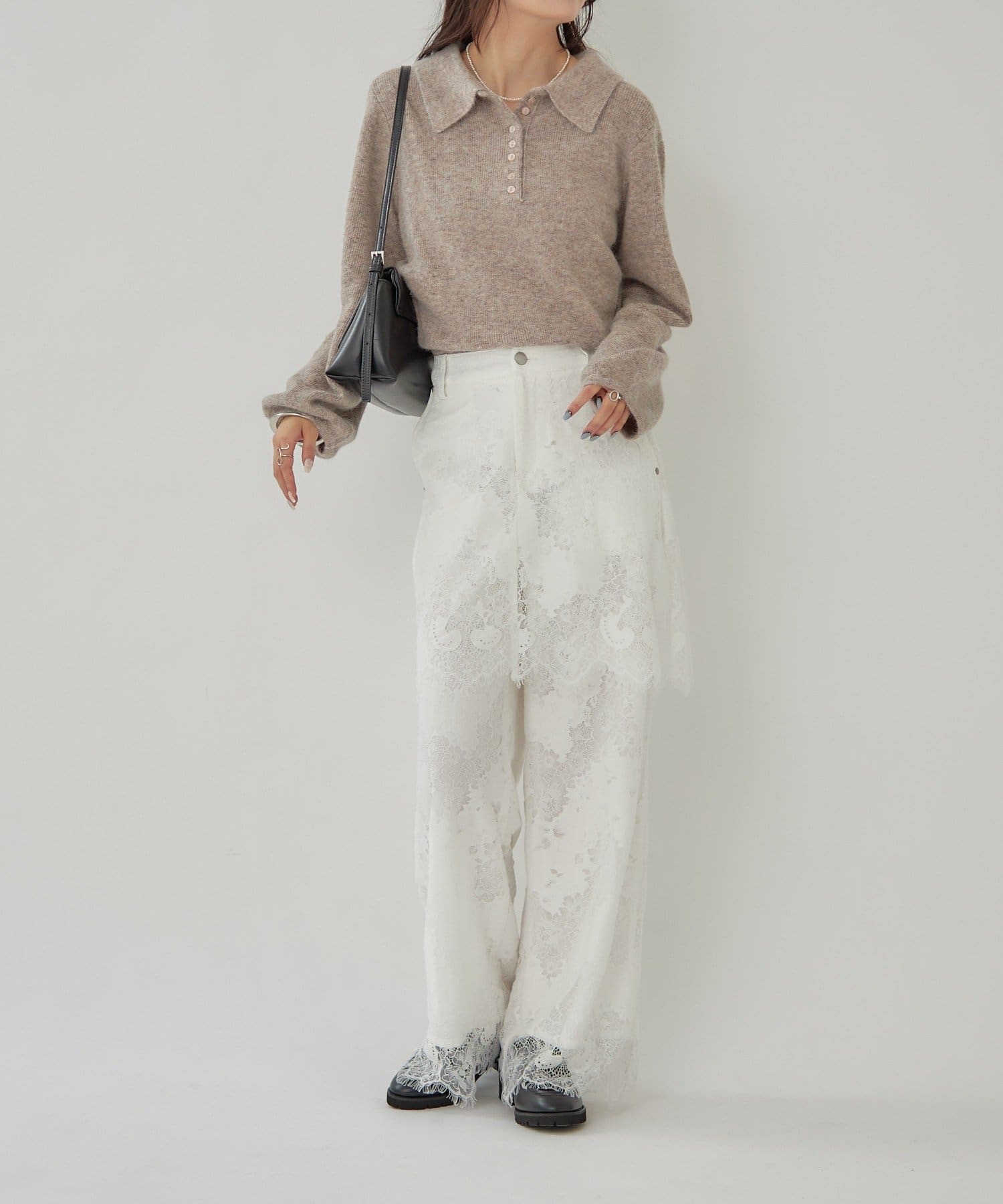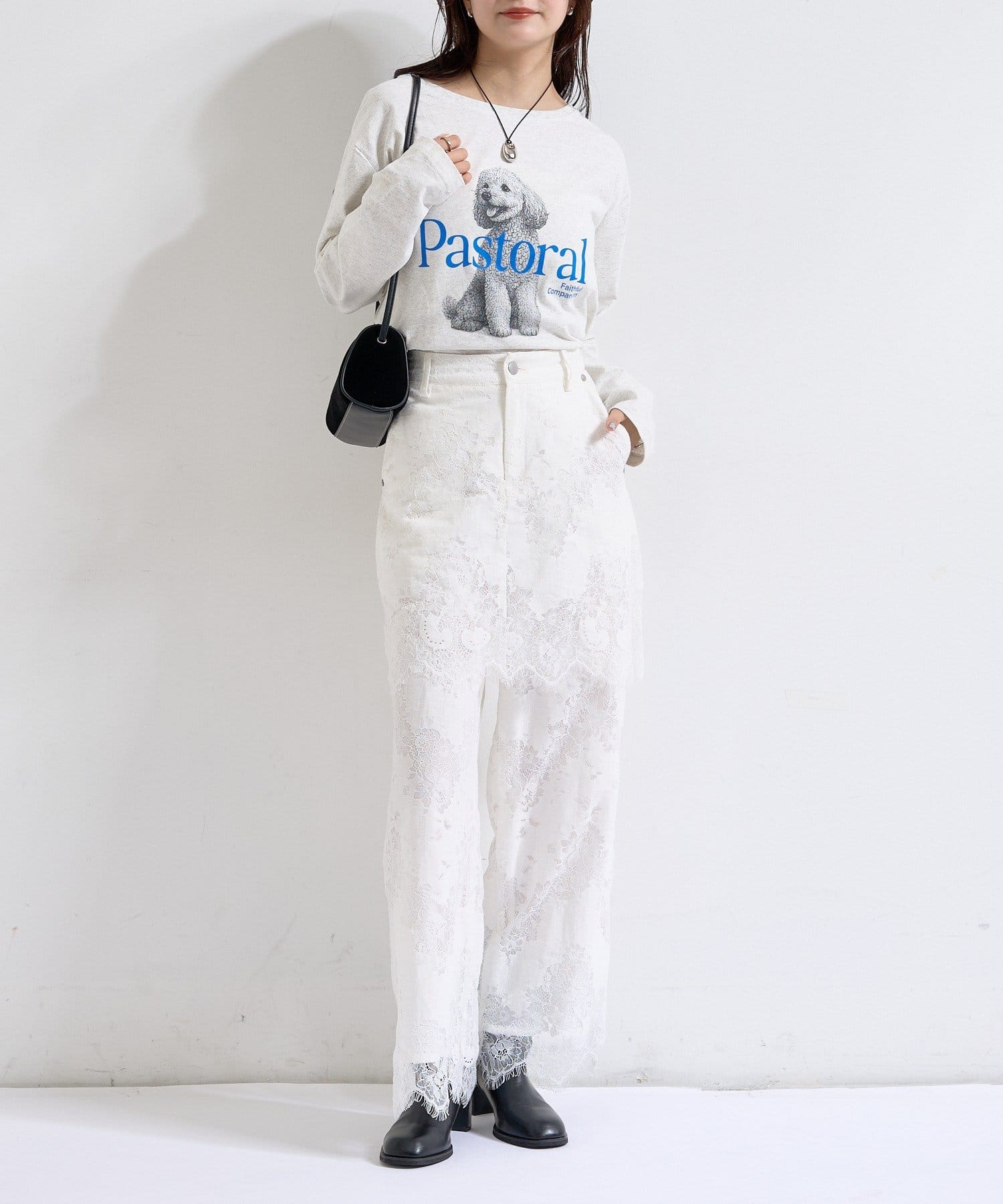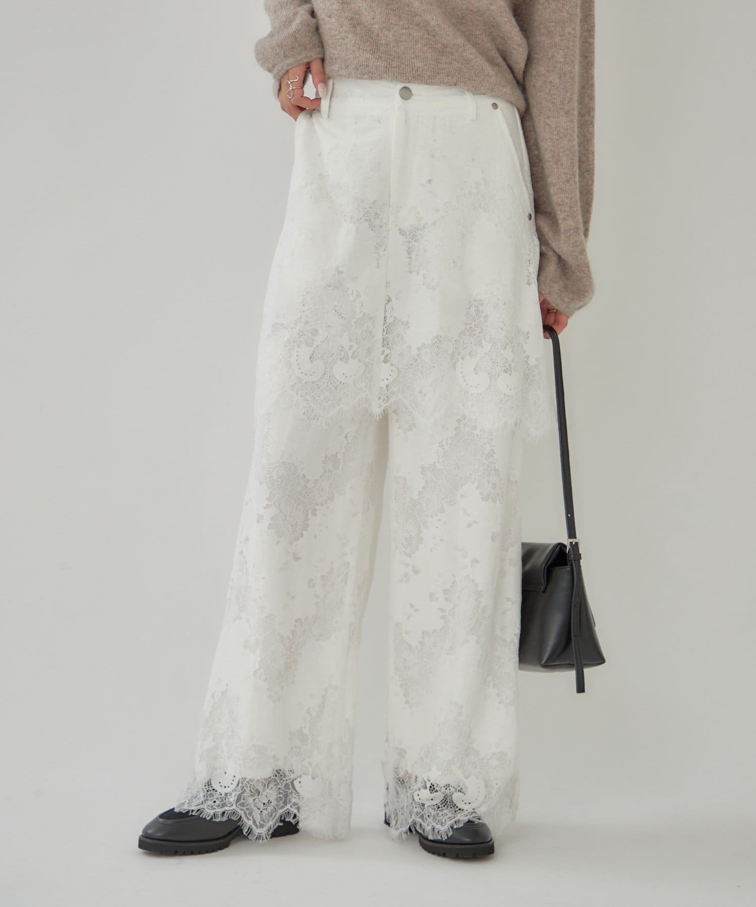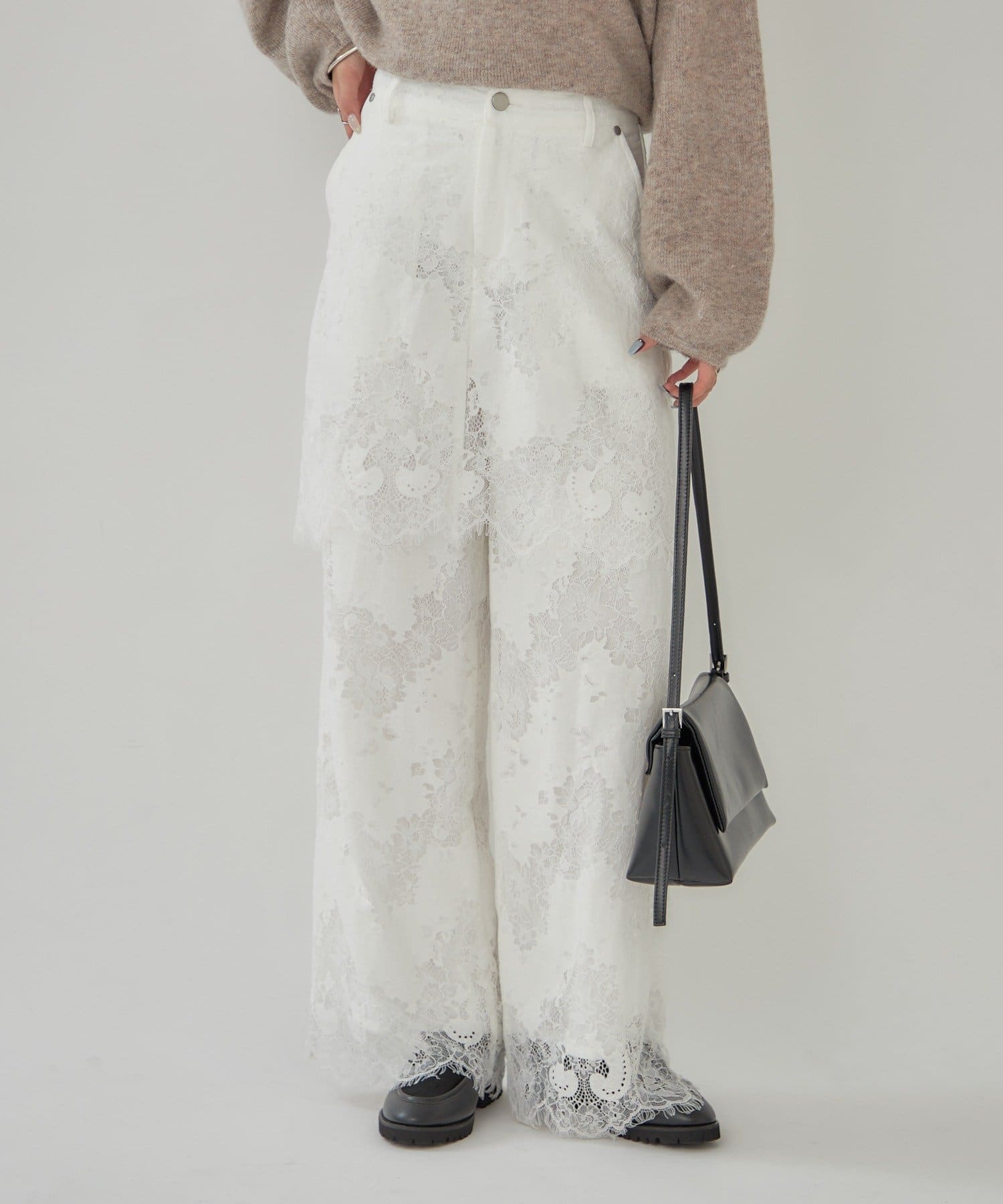 ・スカラップレースを贅沢に使用したレイヤードパンツ。
