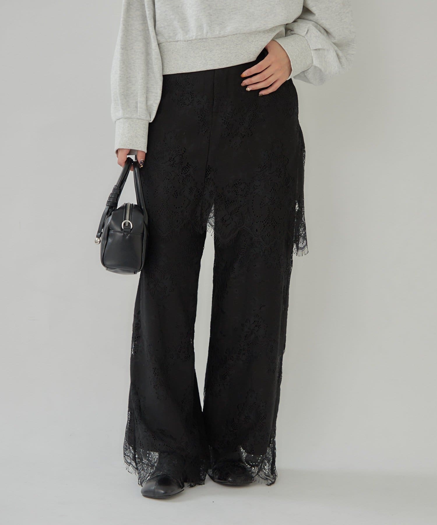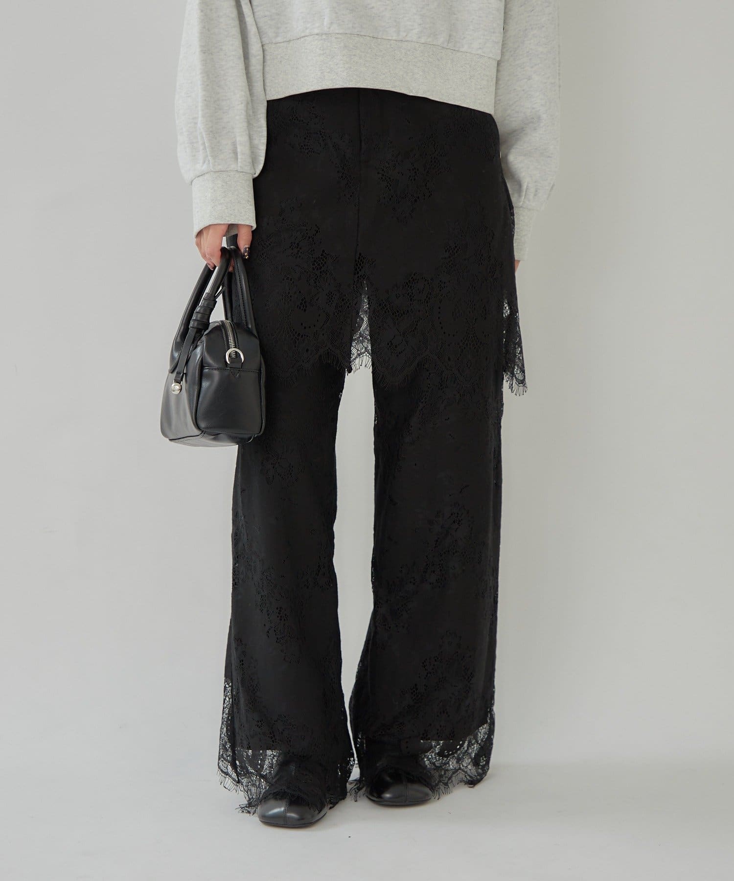 一枚で決まる◎スカラップレースが上品さをプラスいてくれるレイヤードパンツ!