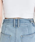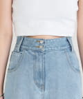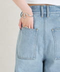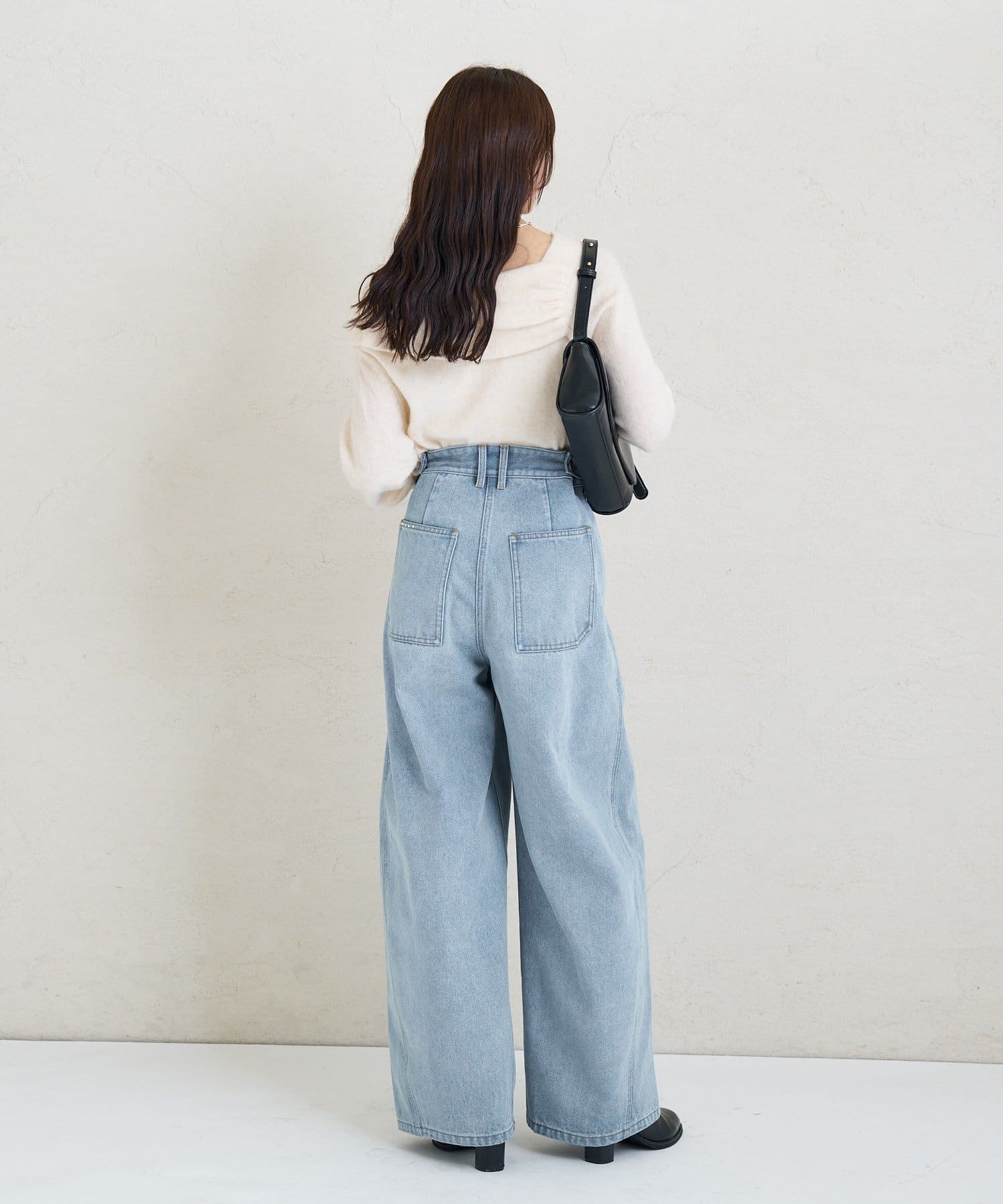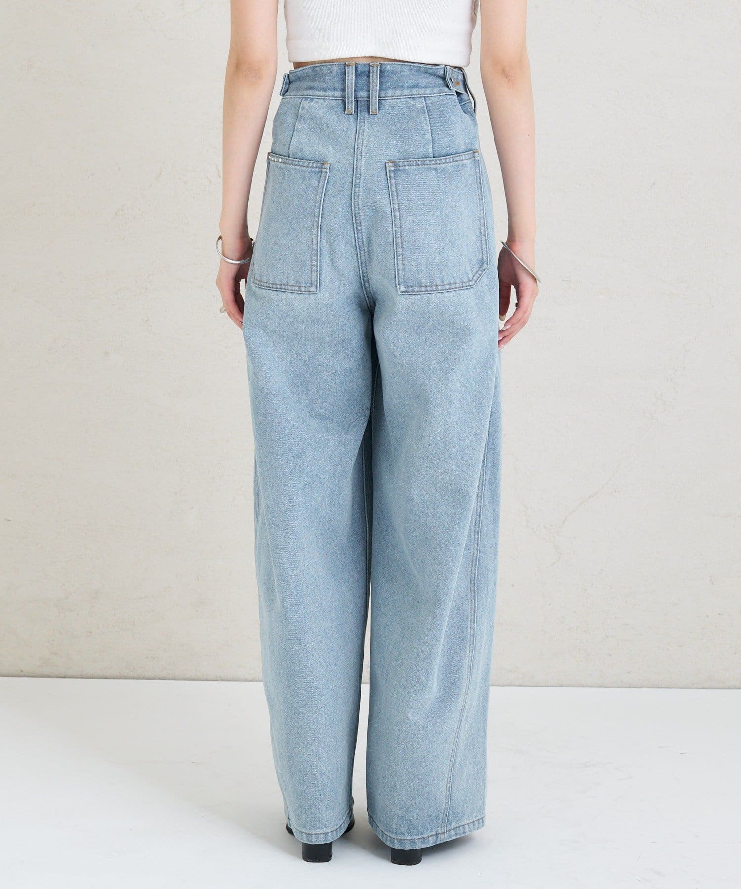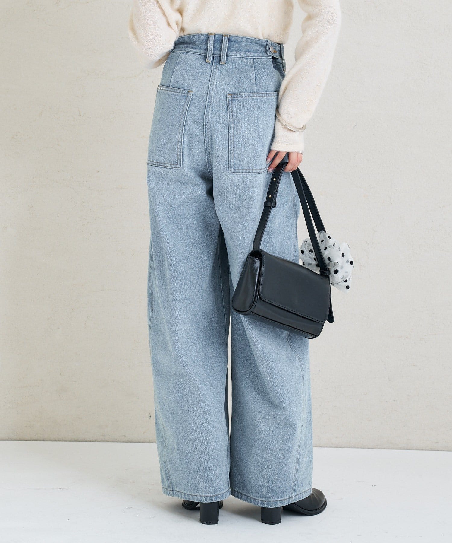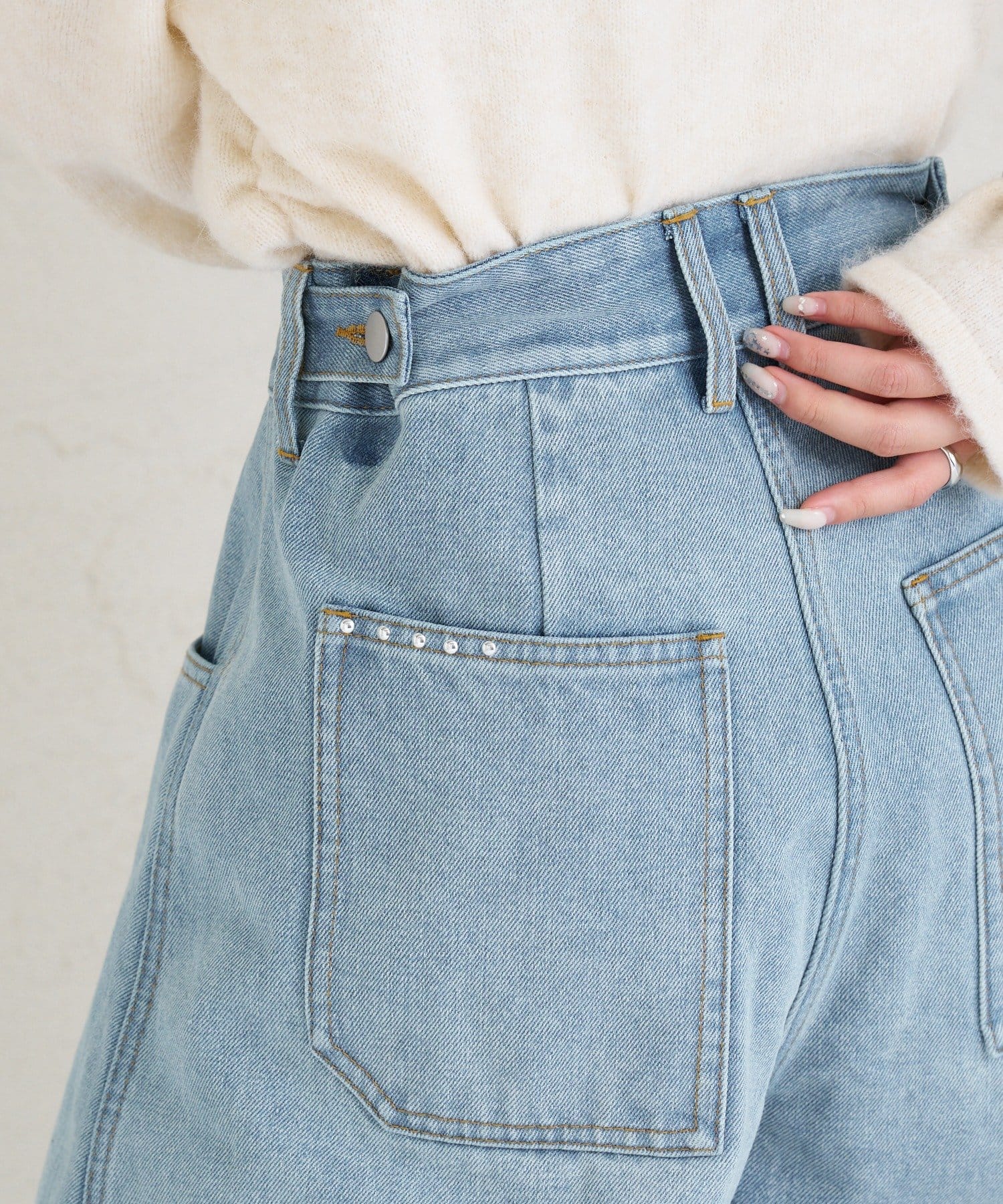 ・ ポケット部分にさりげなく施されたスタッズがポイントになったワイドデニム。