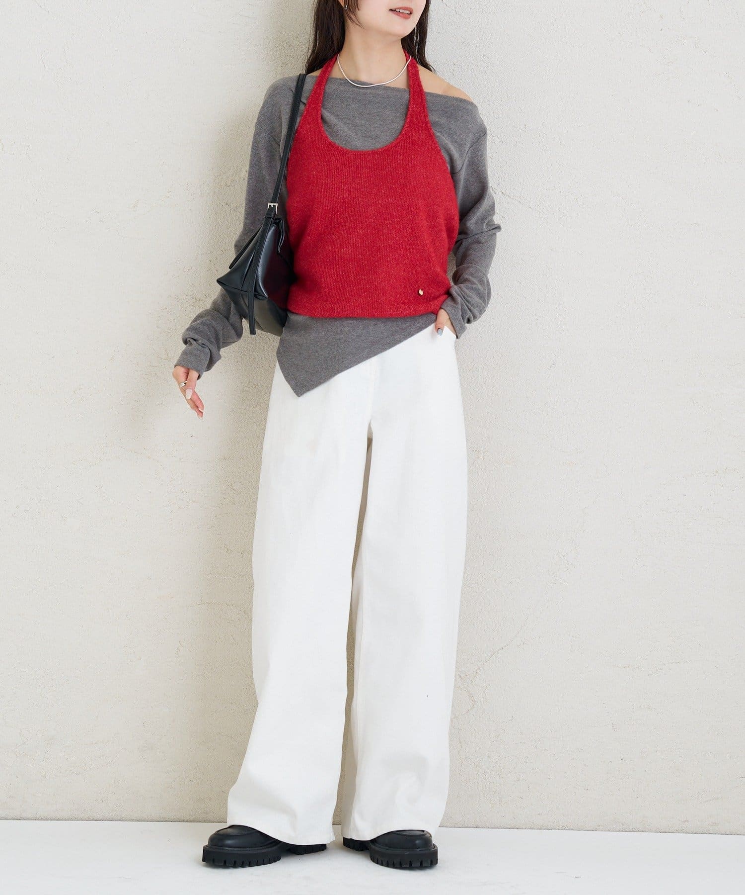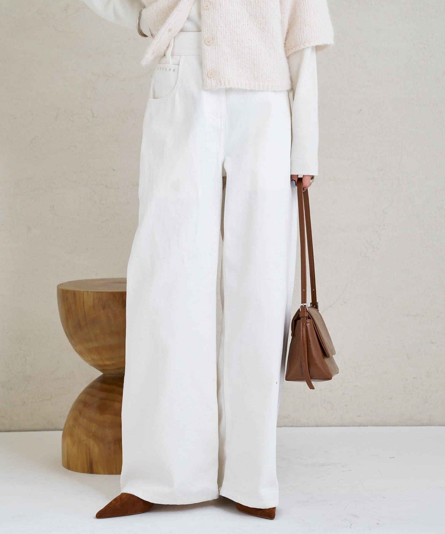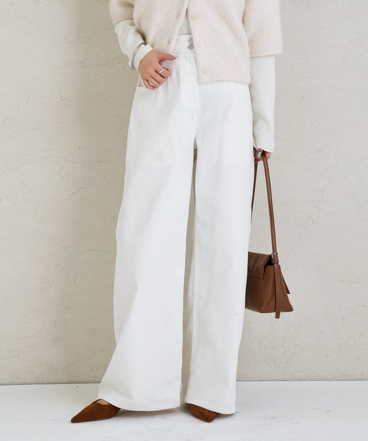 オフホワイトはどんなトップスにも合わせやすいので、着回し力抜群です!