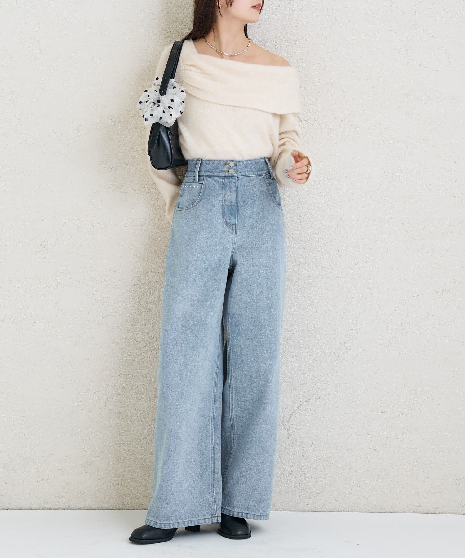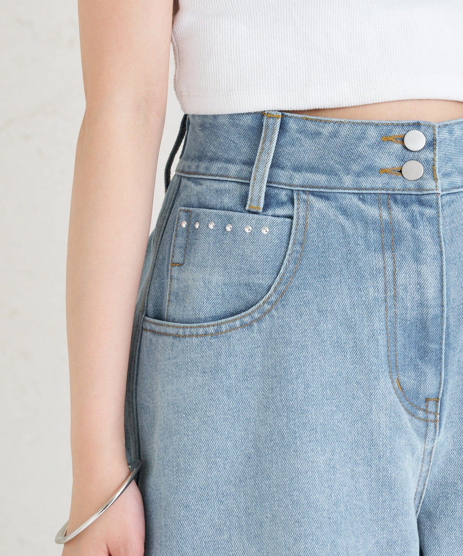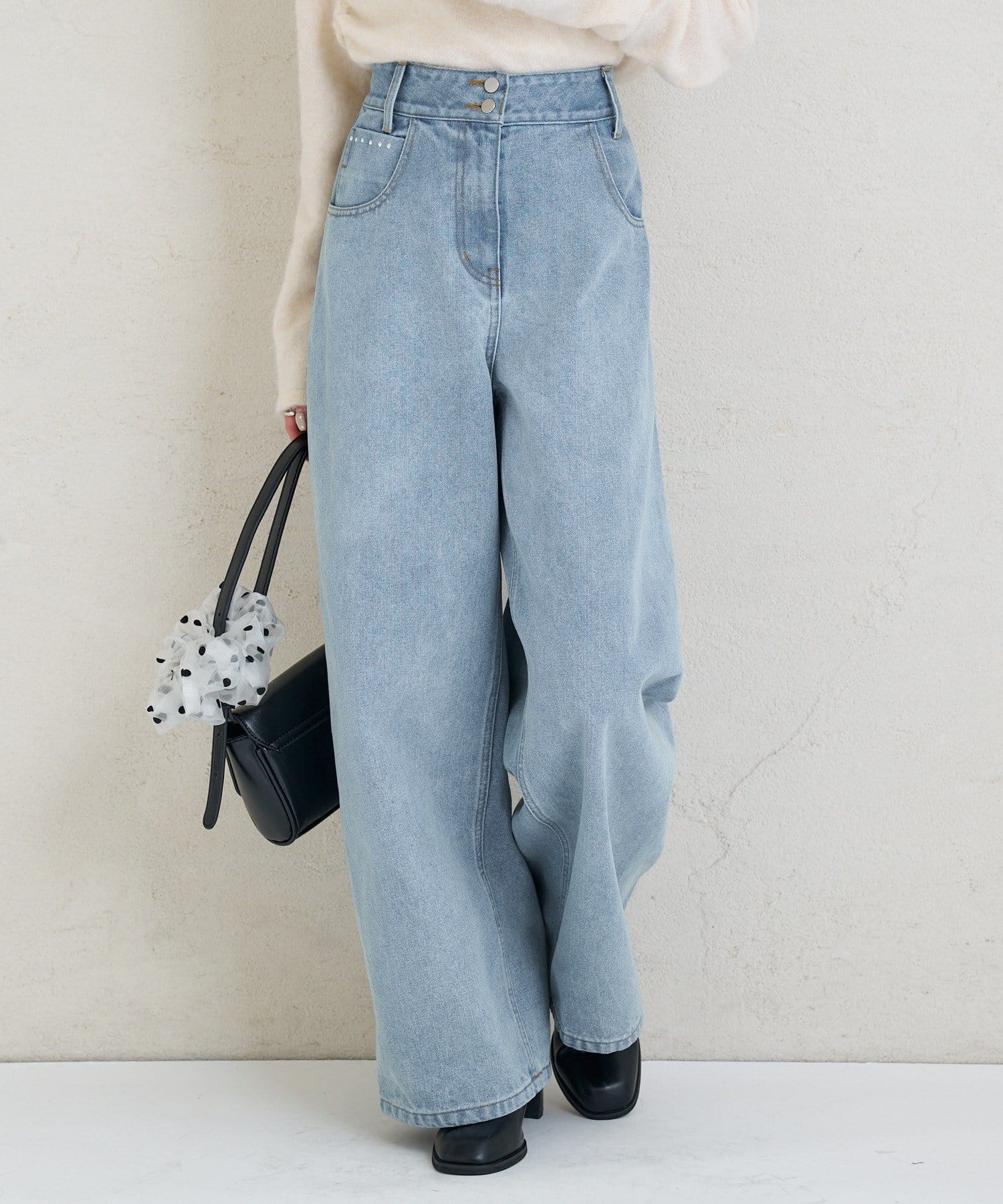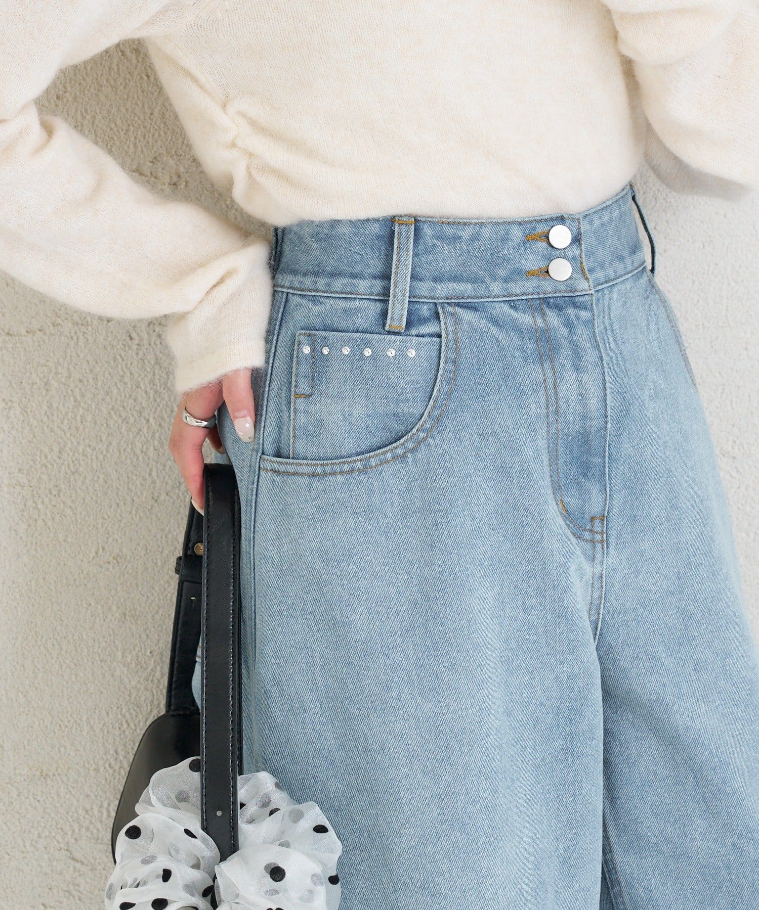 垢抜けシルエットが叶う!スタッズが可愛いトレンドライクなワイドデニムが登場!