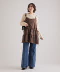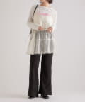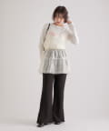 濃い色味のパンツと合わせることで甘くなりすぎずにスタイリングできます。