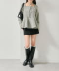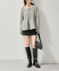 ・ミニボトムに足元はブーツを合わせてフェミニン感あふれるスタイリングもおすすめです。
