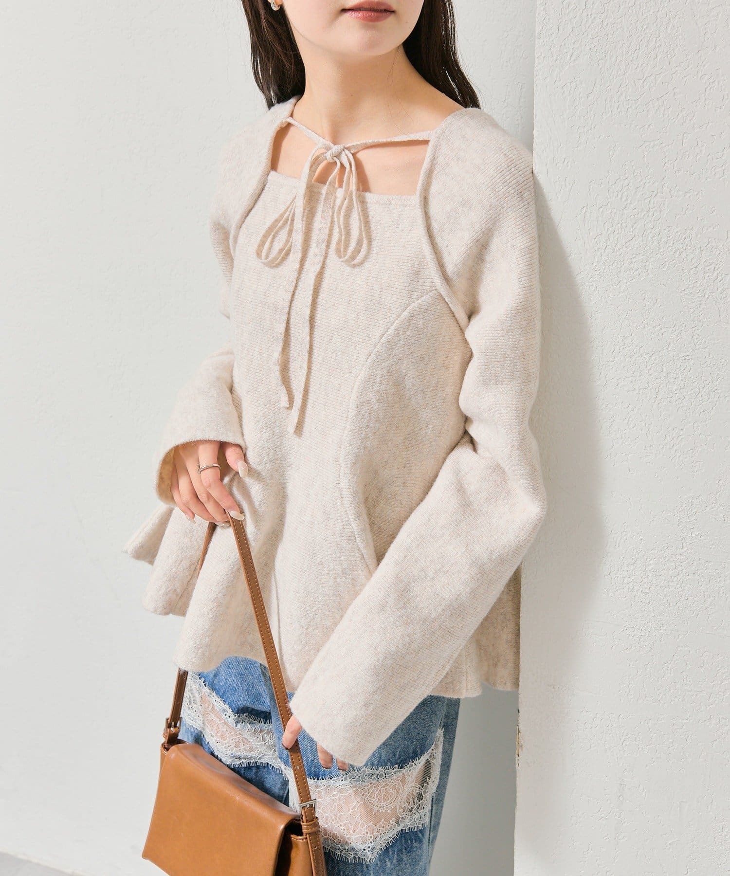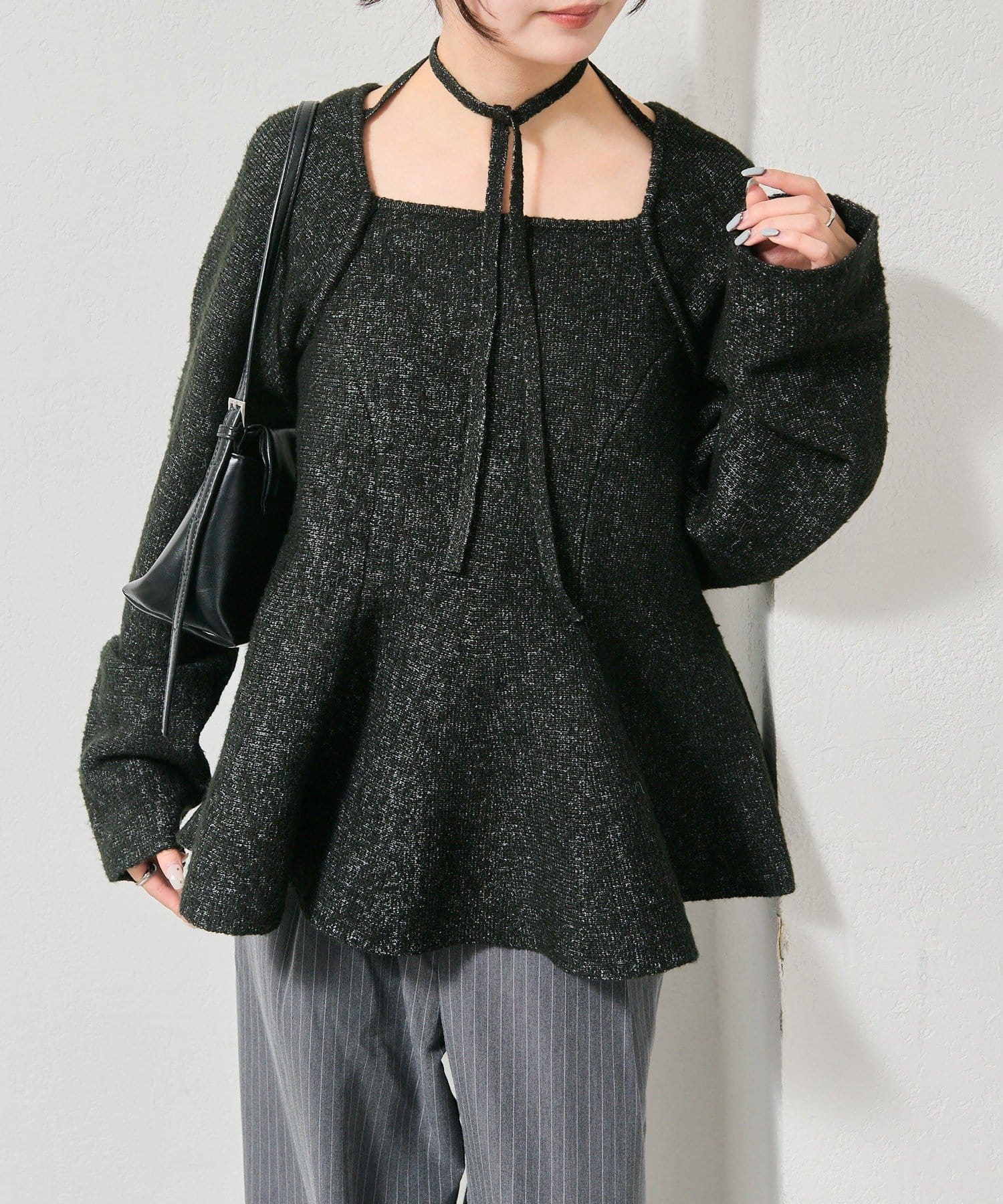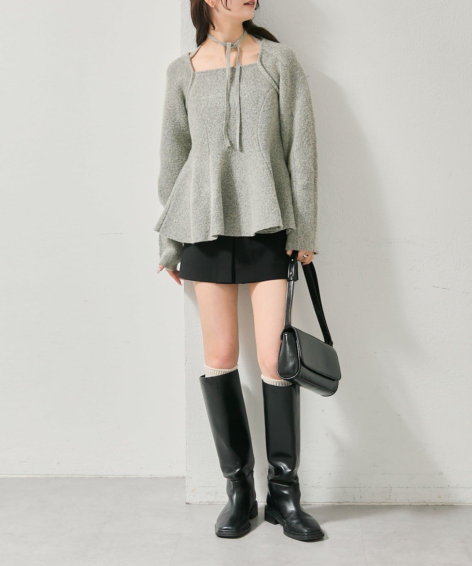 立体感のあるペプラムデザインが目を惹くスクエアネックニットが登場!