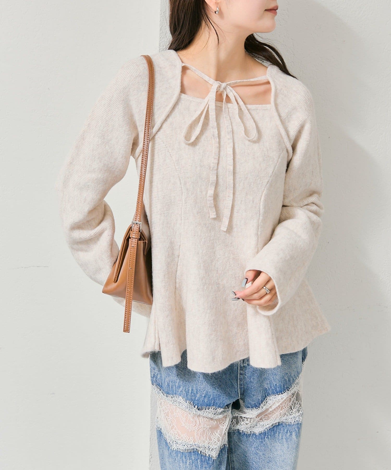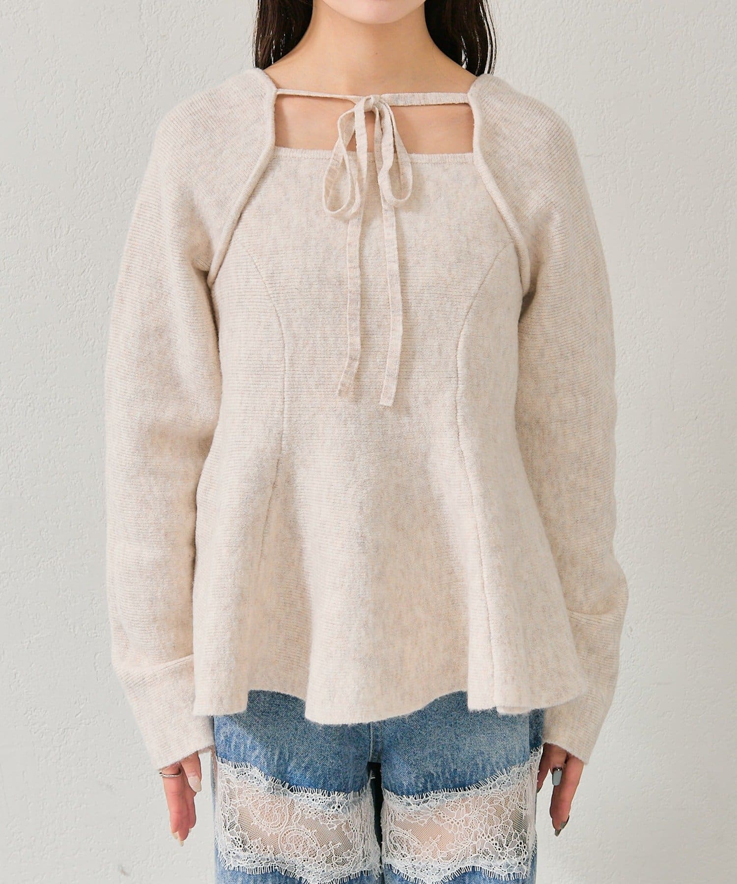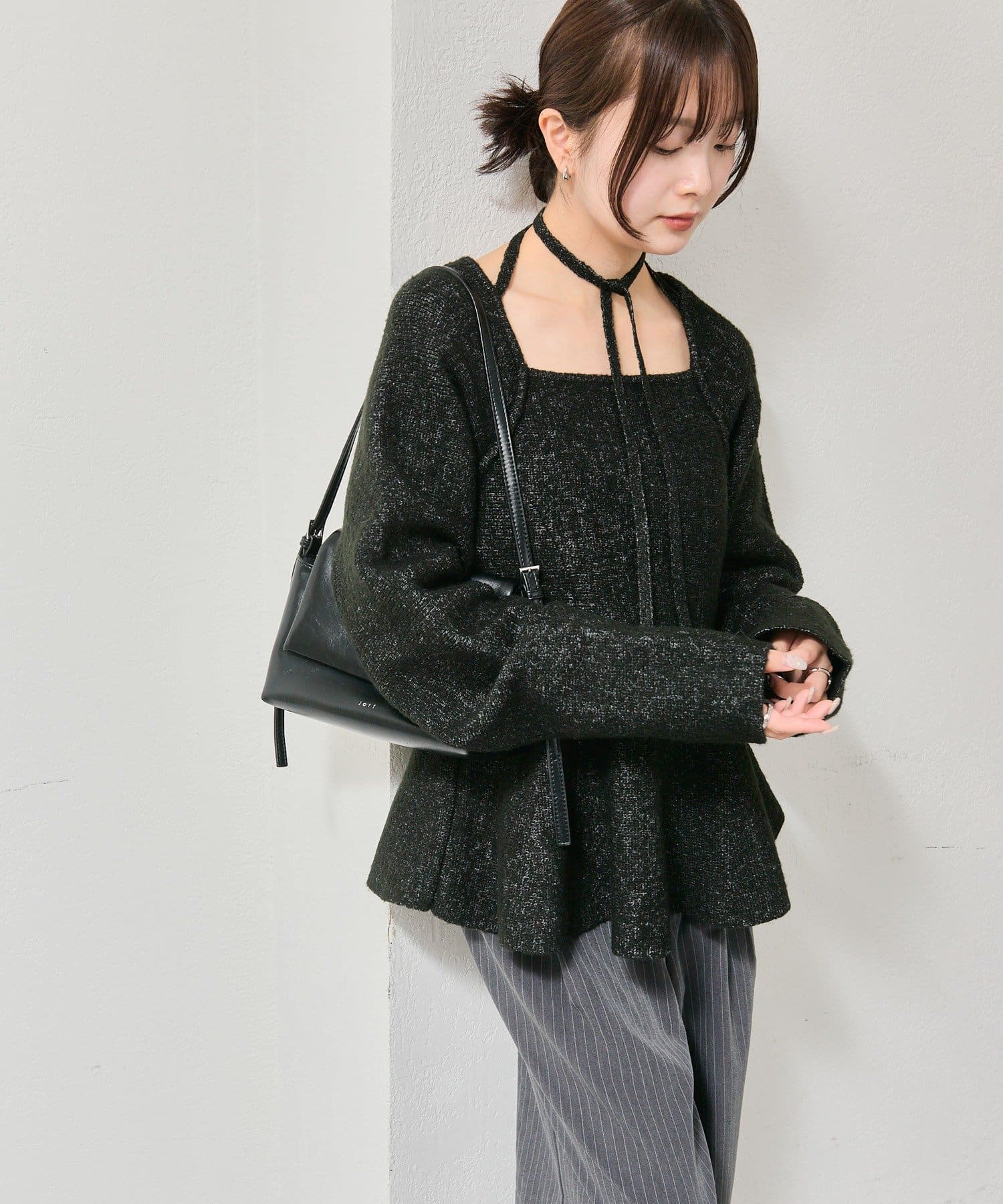 立体感のあるペプラムデザインが目を惹くスクエアネックニットが登場!