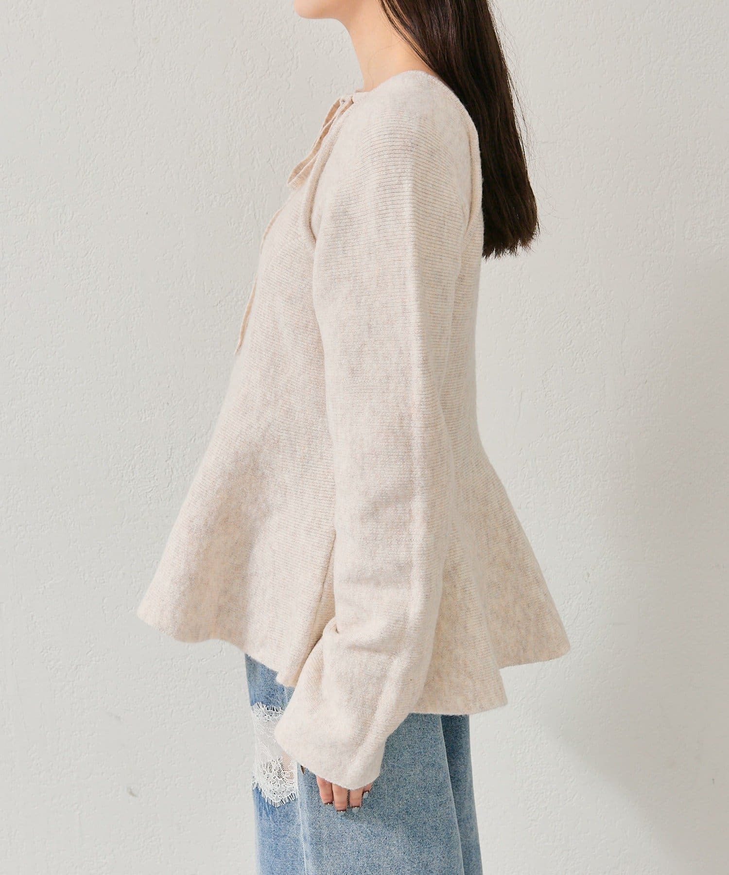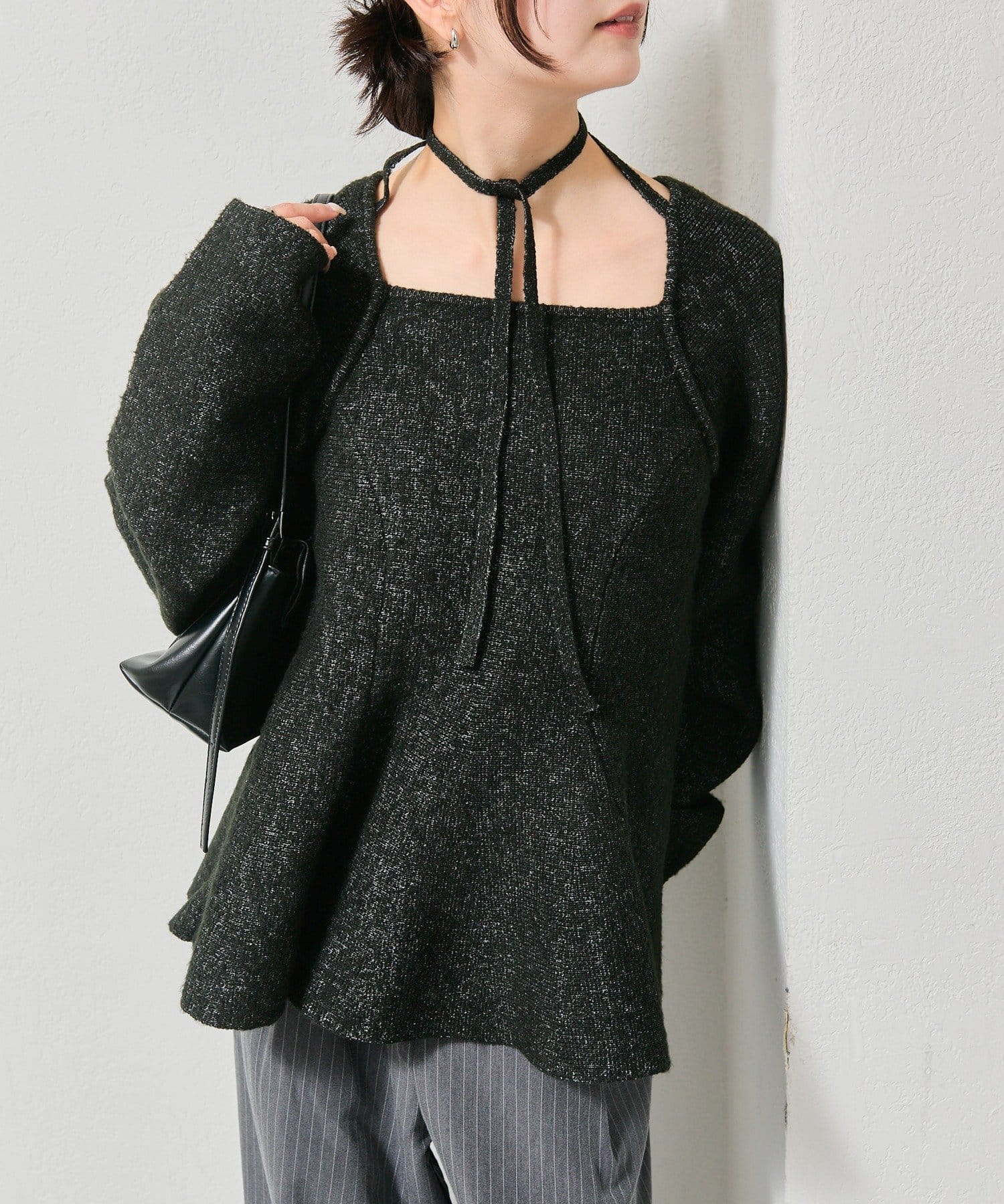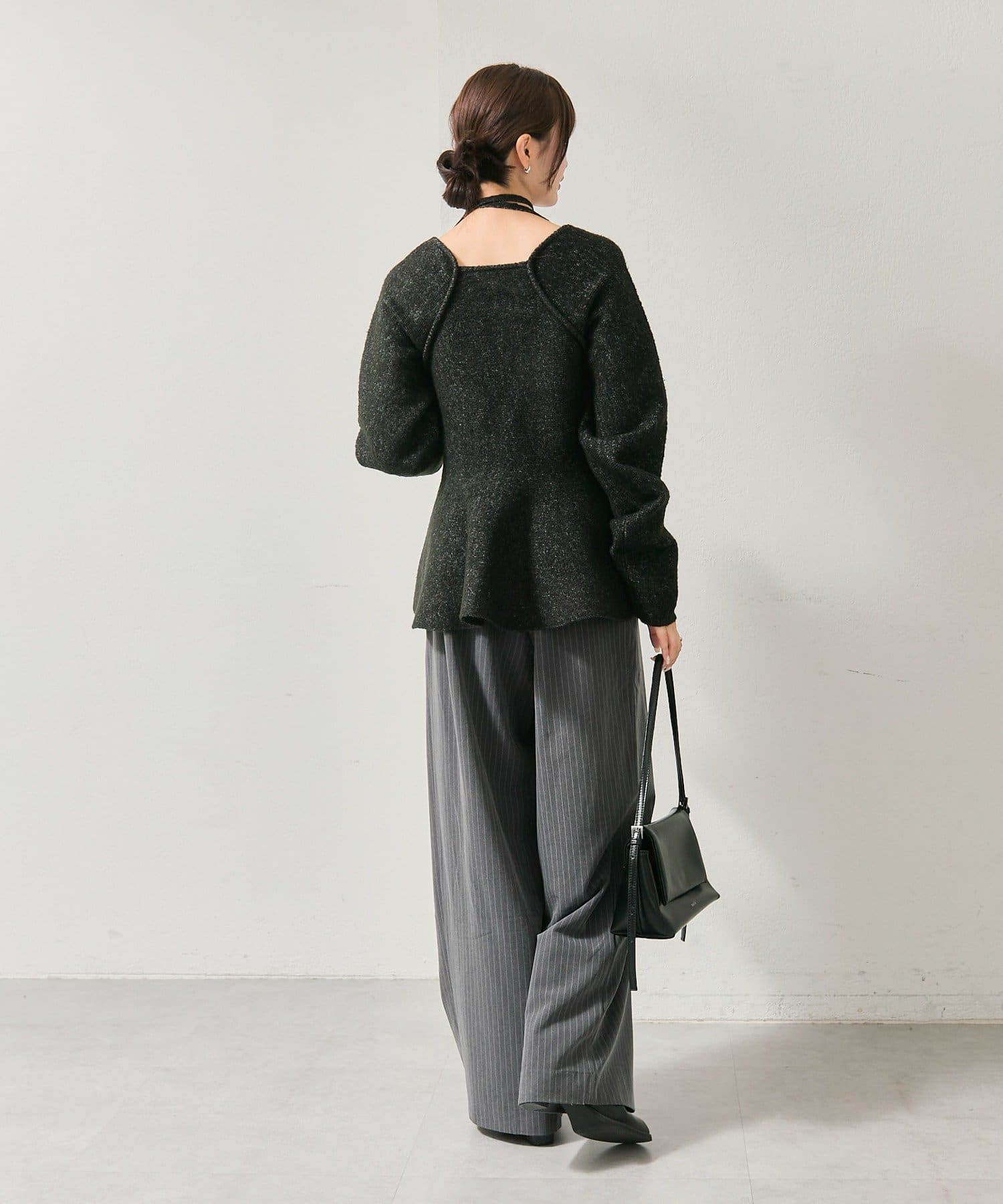 ・ペプラムデザインが立体的で存在感のあるデザインニット。
