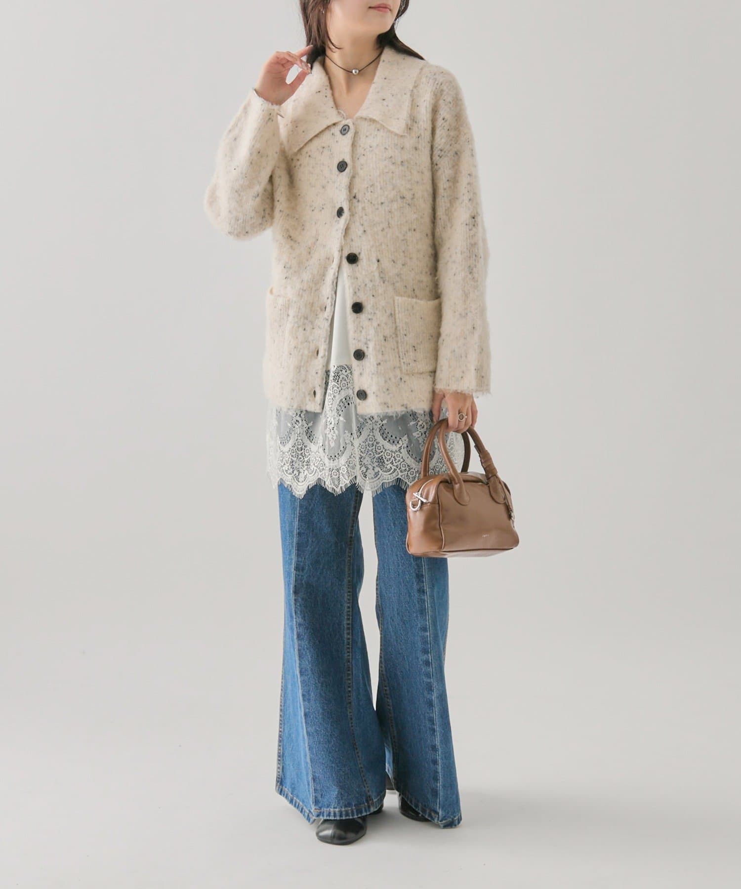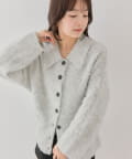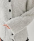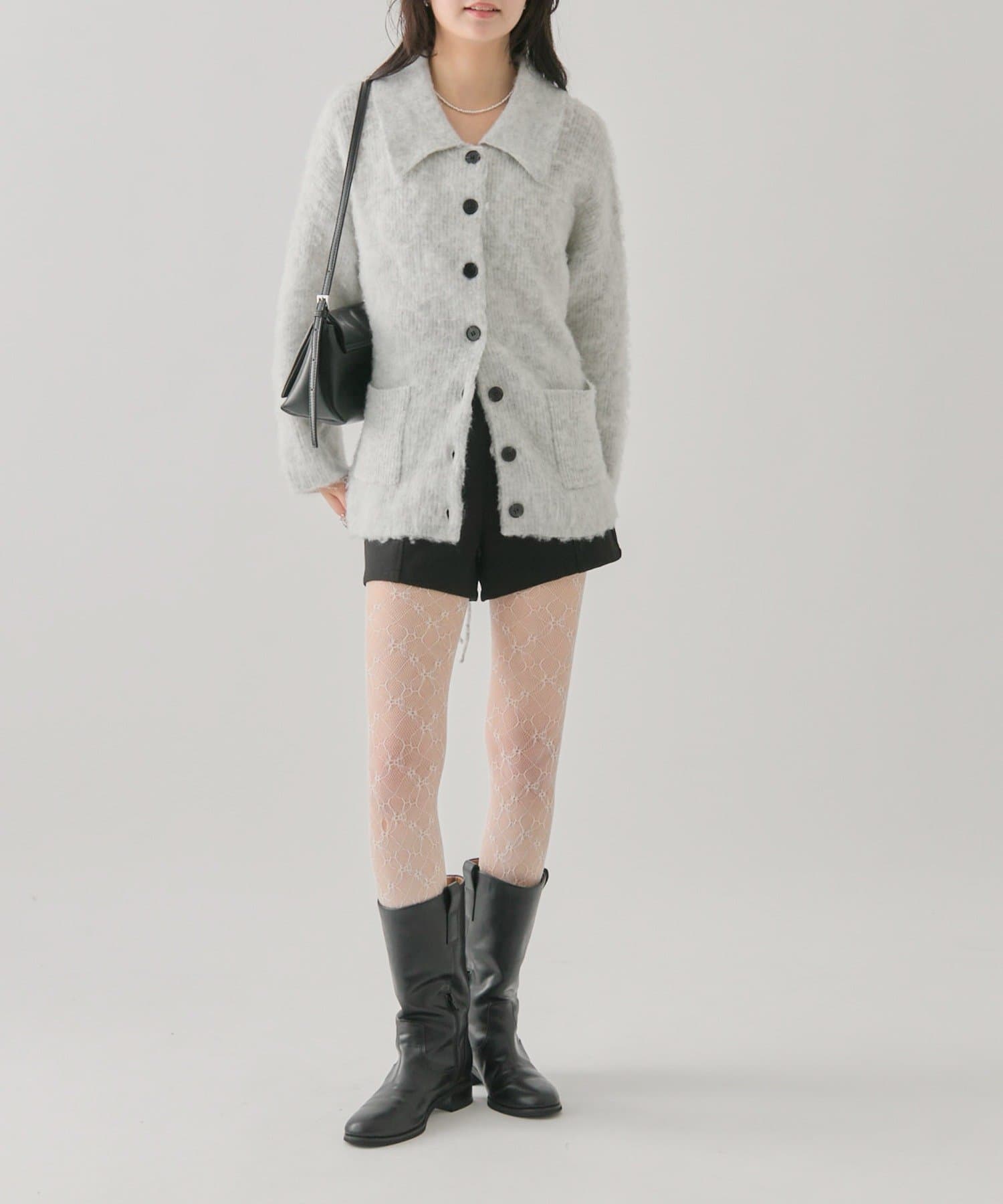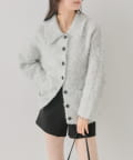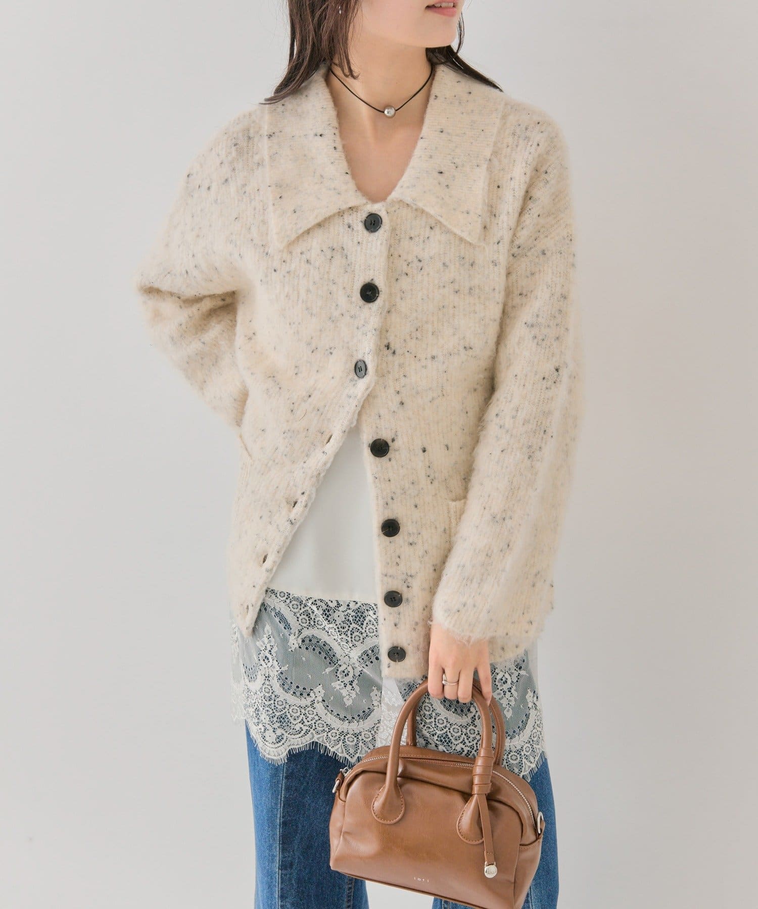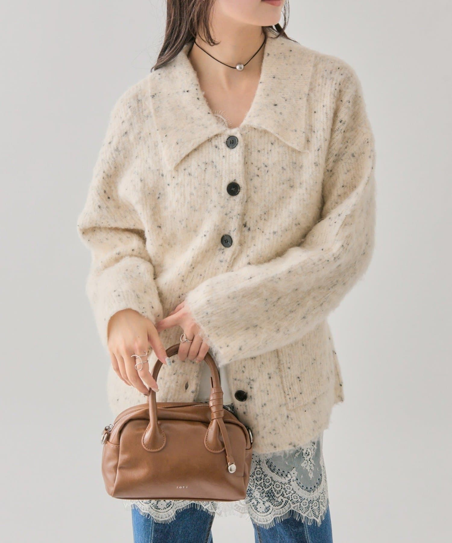・大きめの襟とフロントのボタンがポイントになったニットカーディガン。