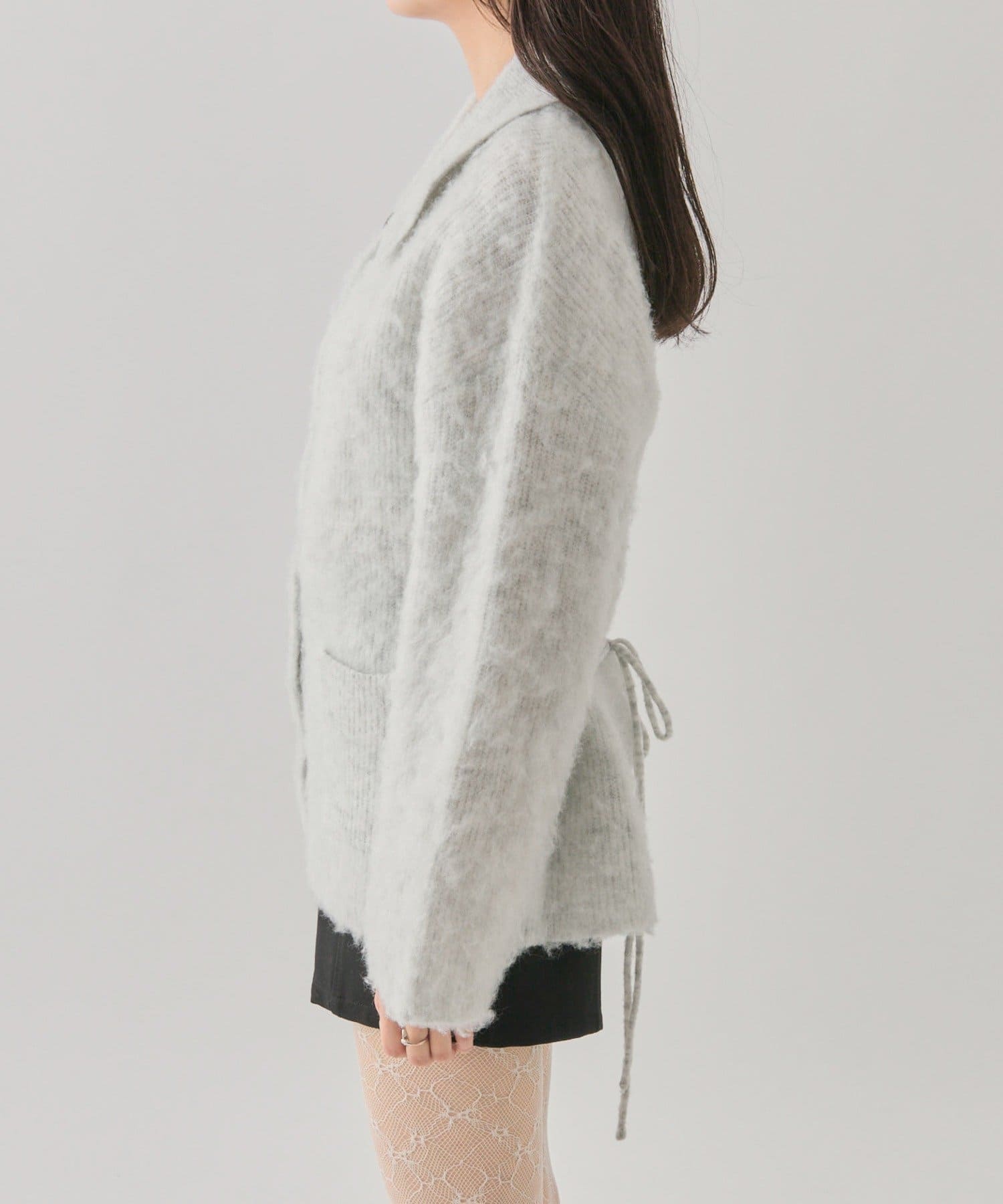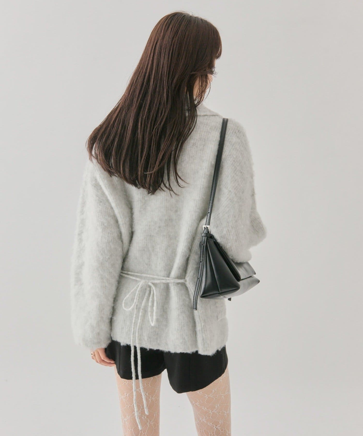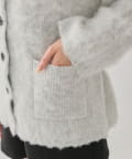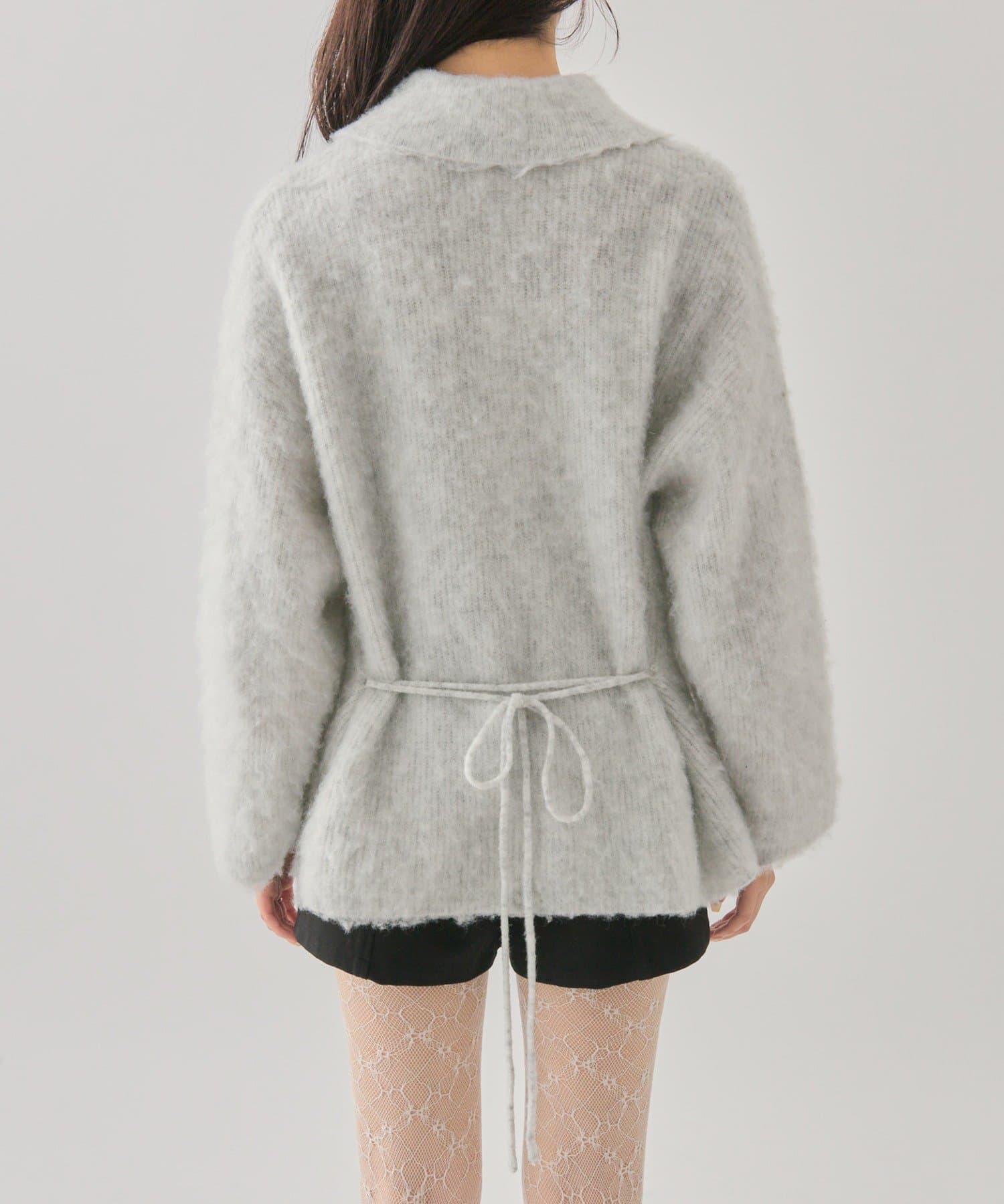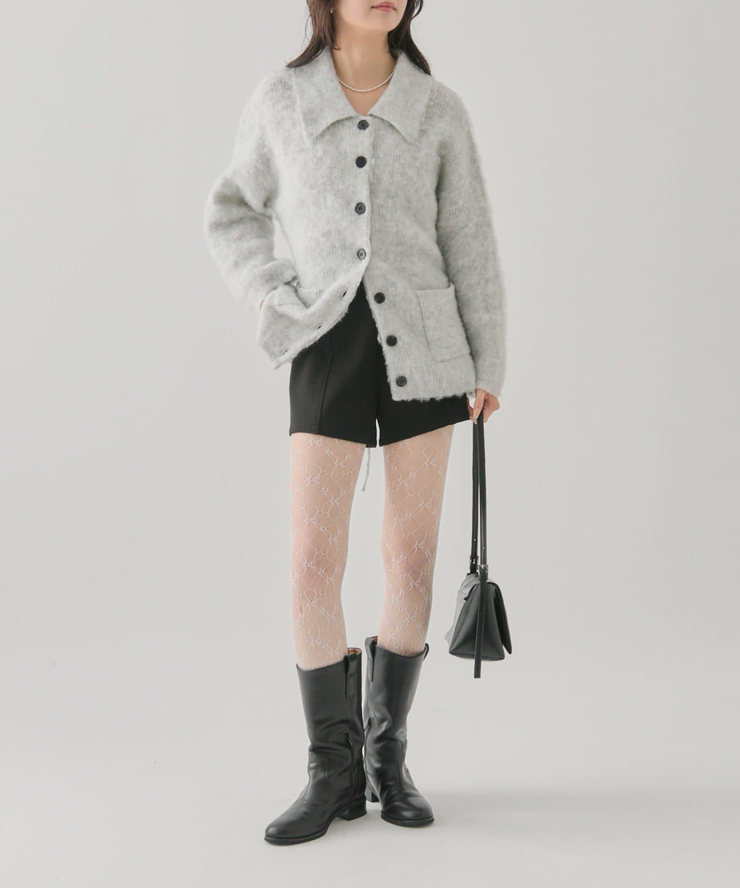 ・大きめの襟とフロントのボタンがポイントになったニットカーディガン。