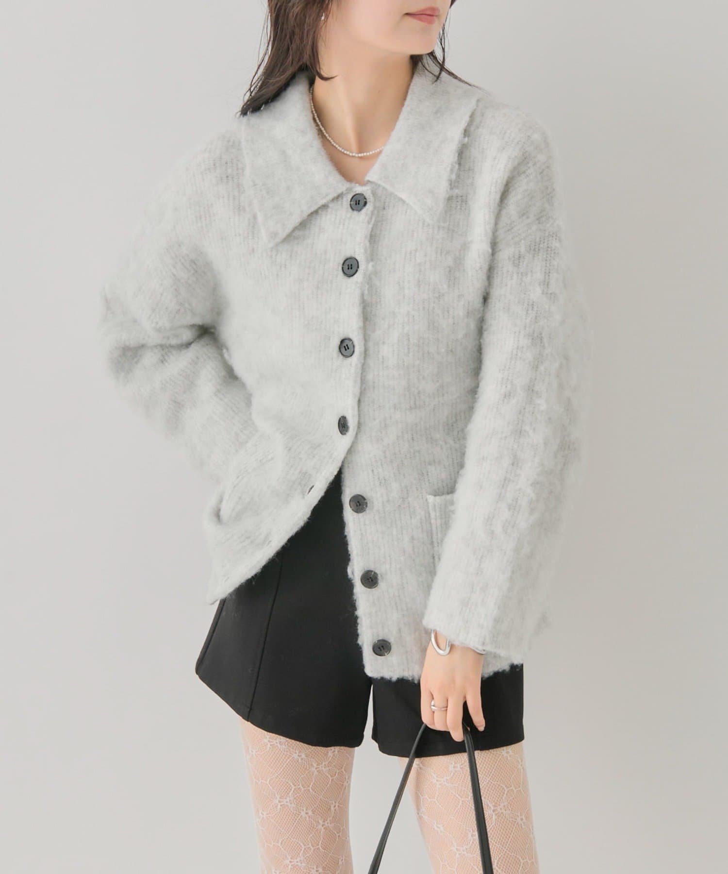 リラックスシルエットで抜け感のある襟付きデザインのニットカーディガン