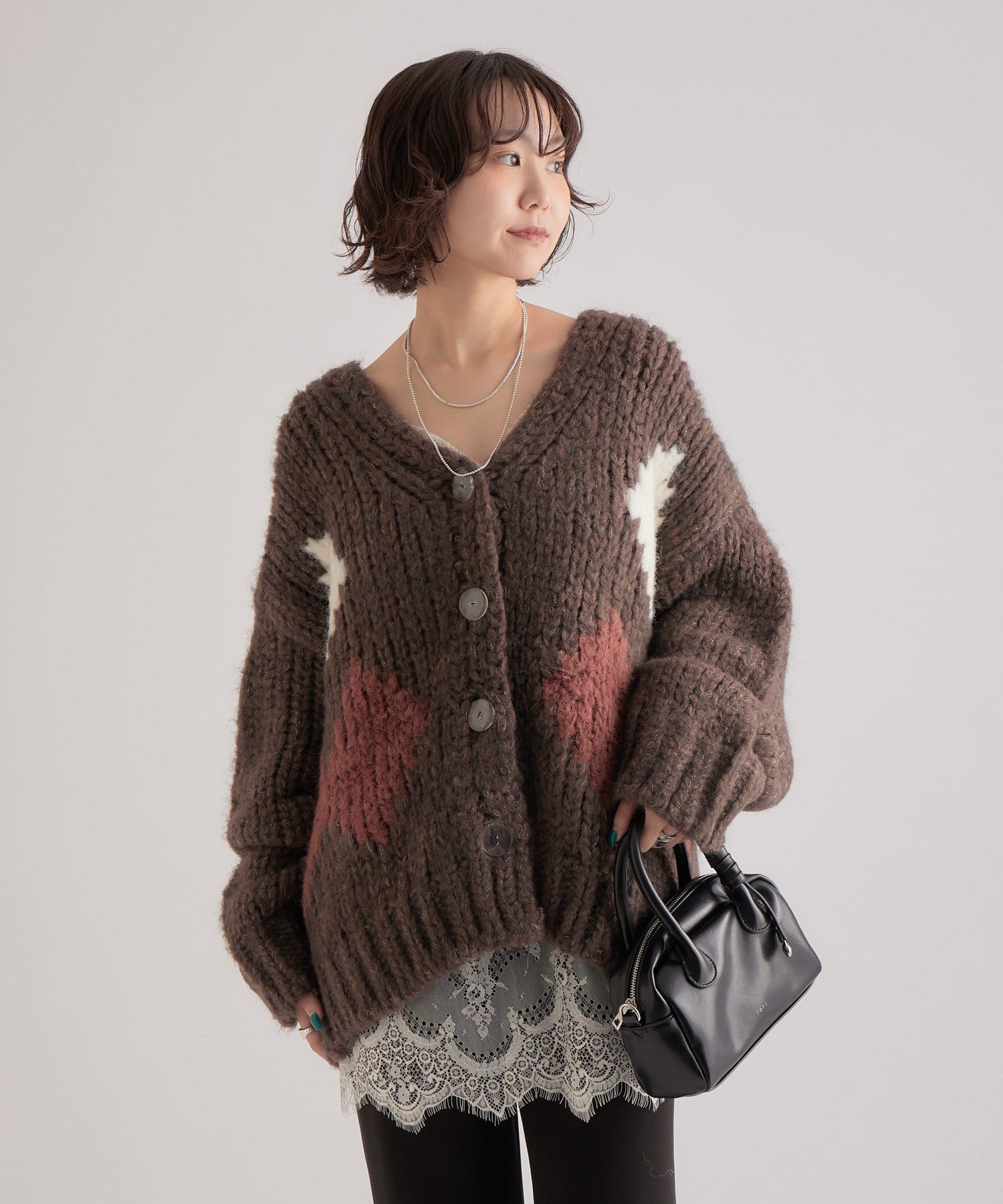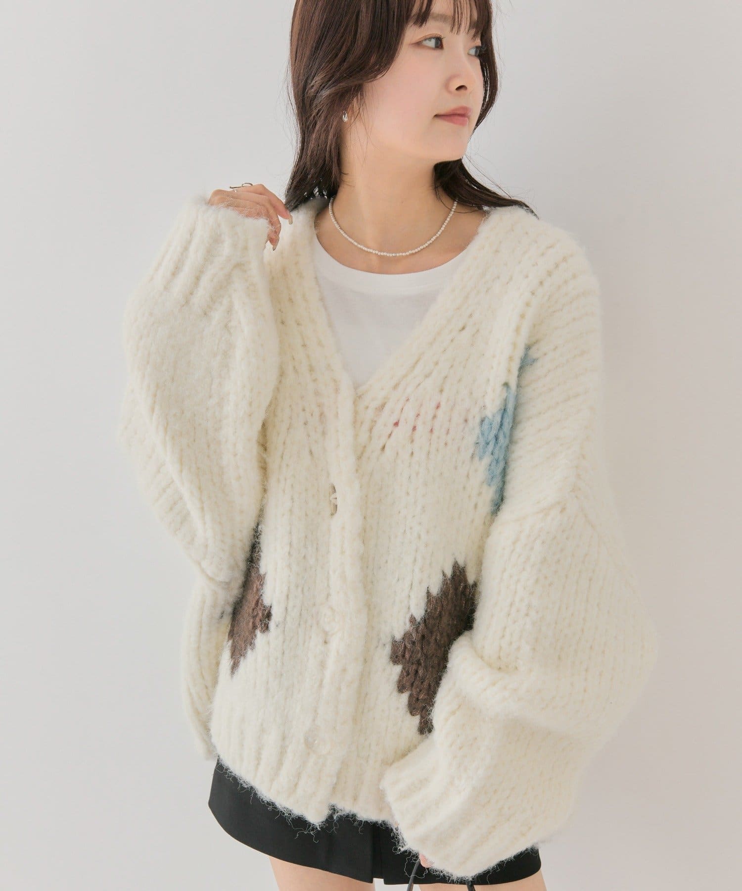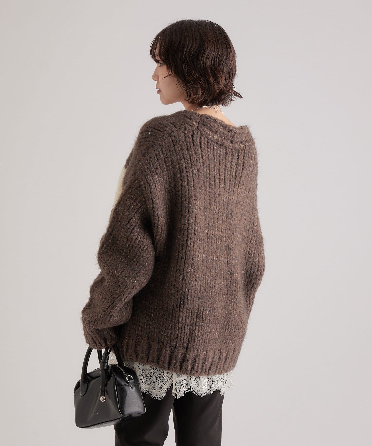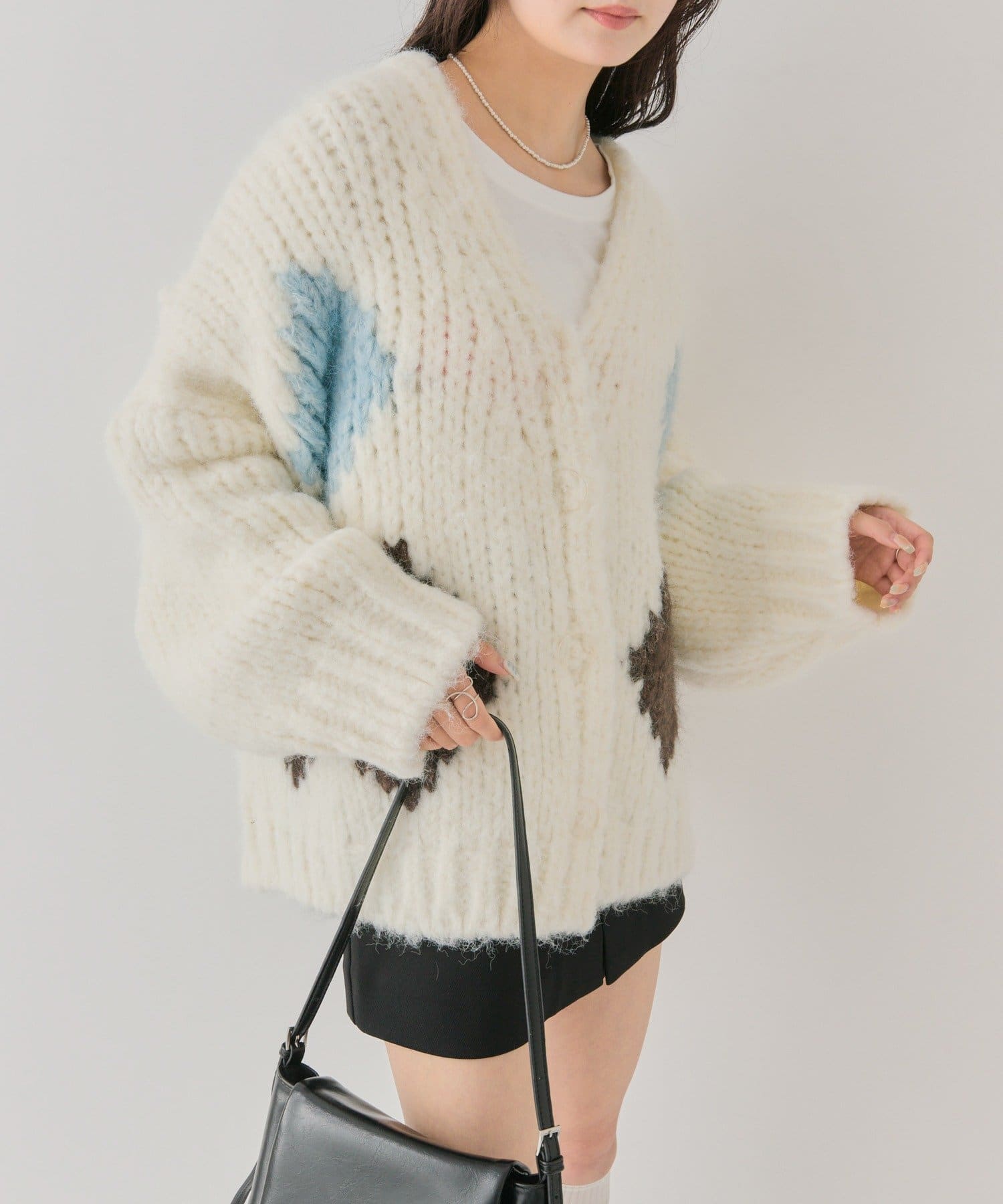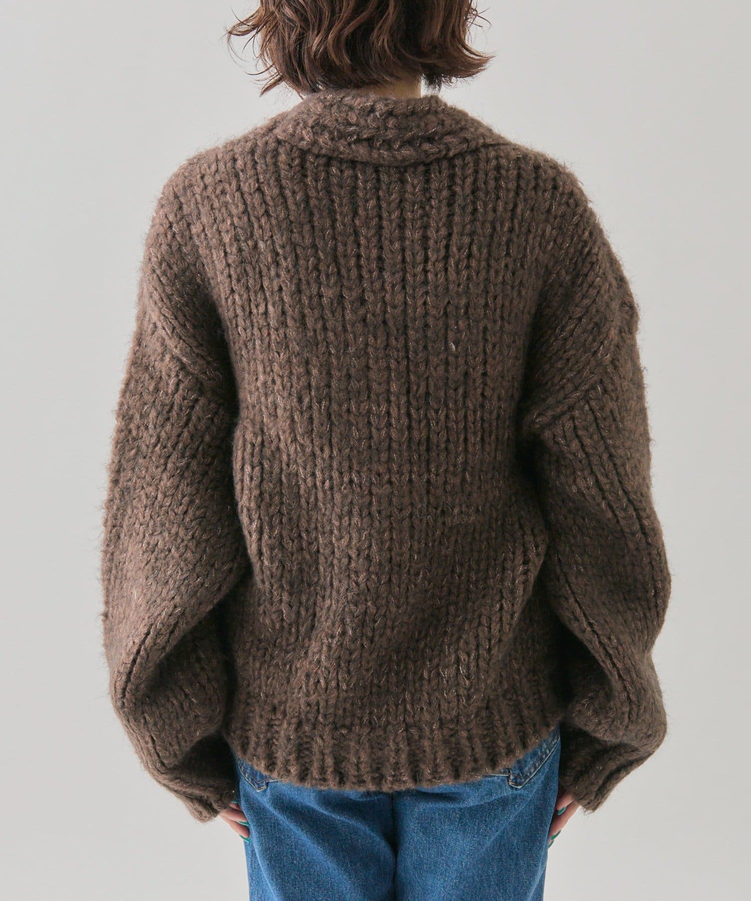 太めの毛糸でざっくり編みのカーディガンが登場。