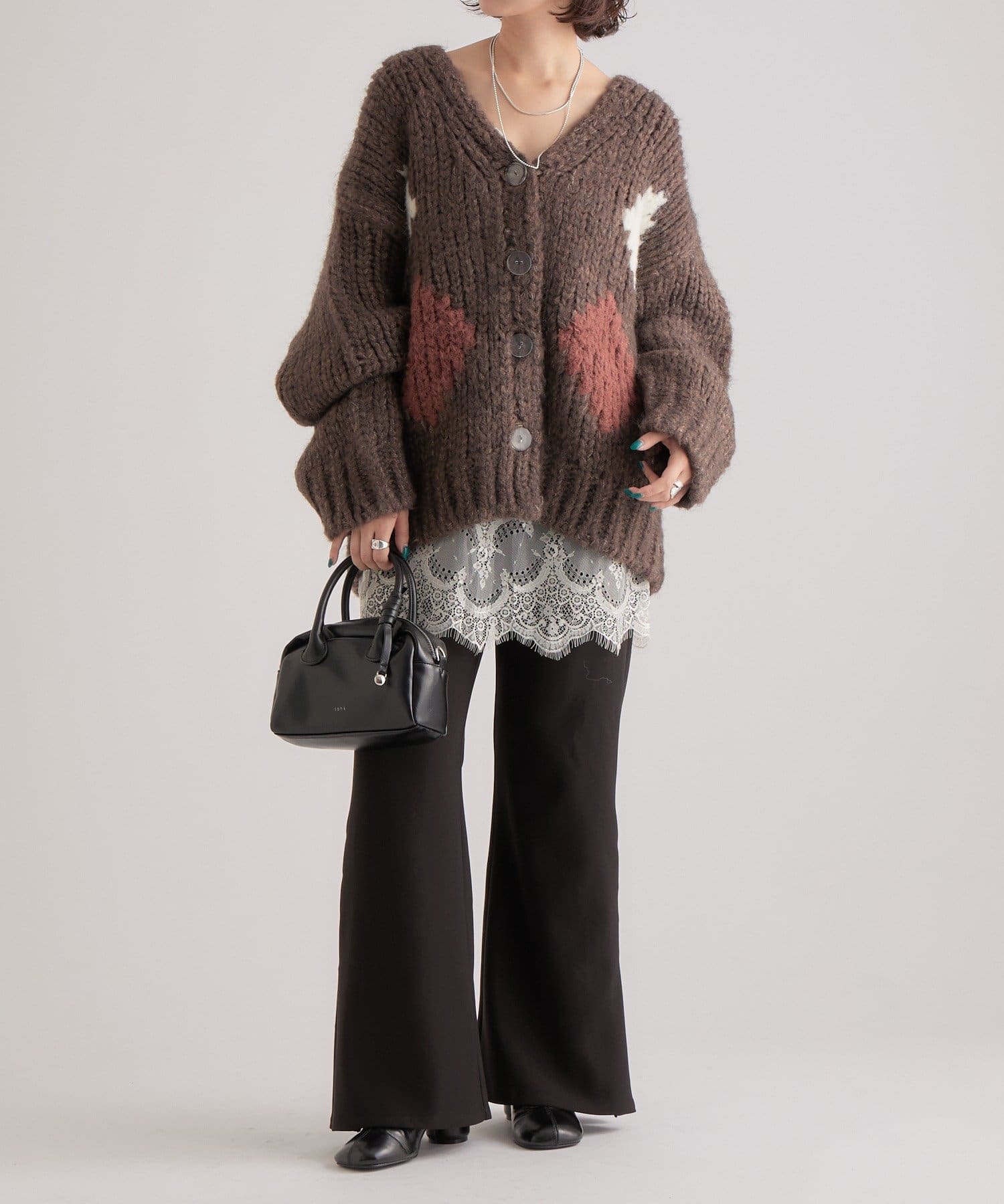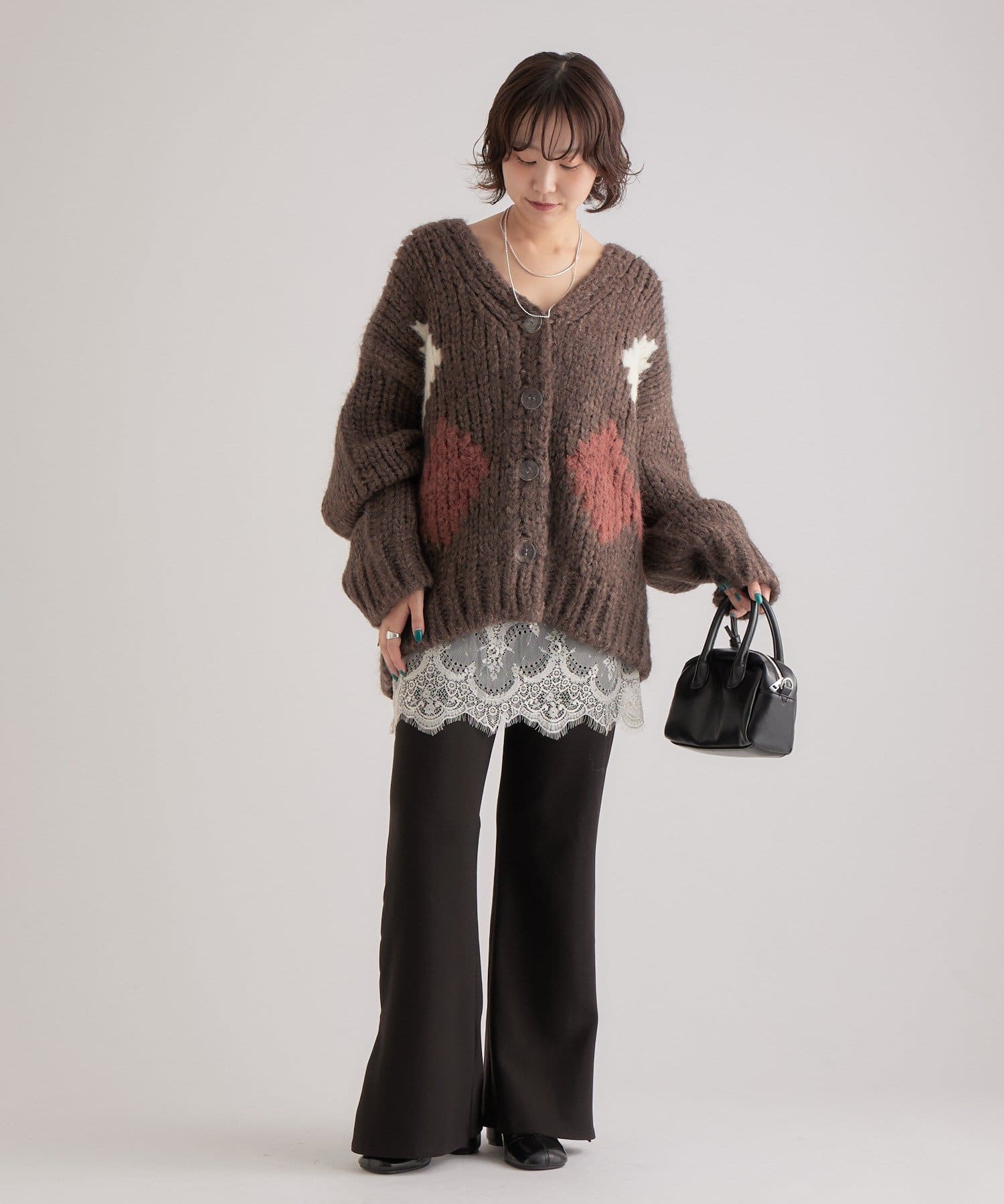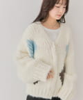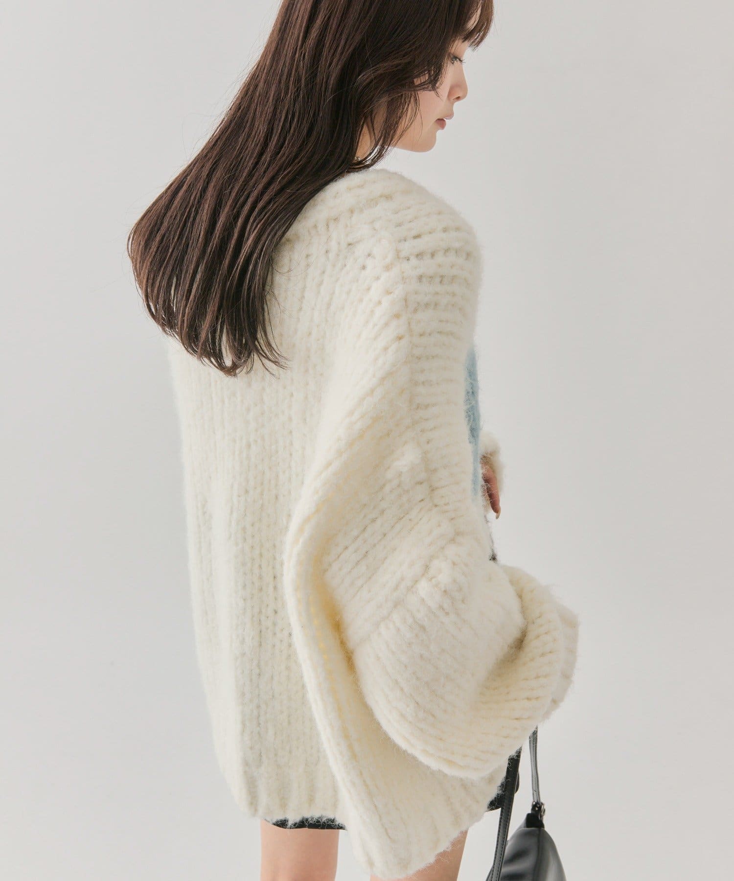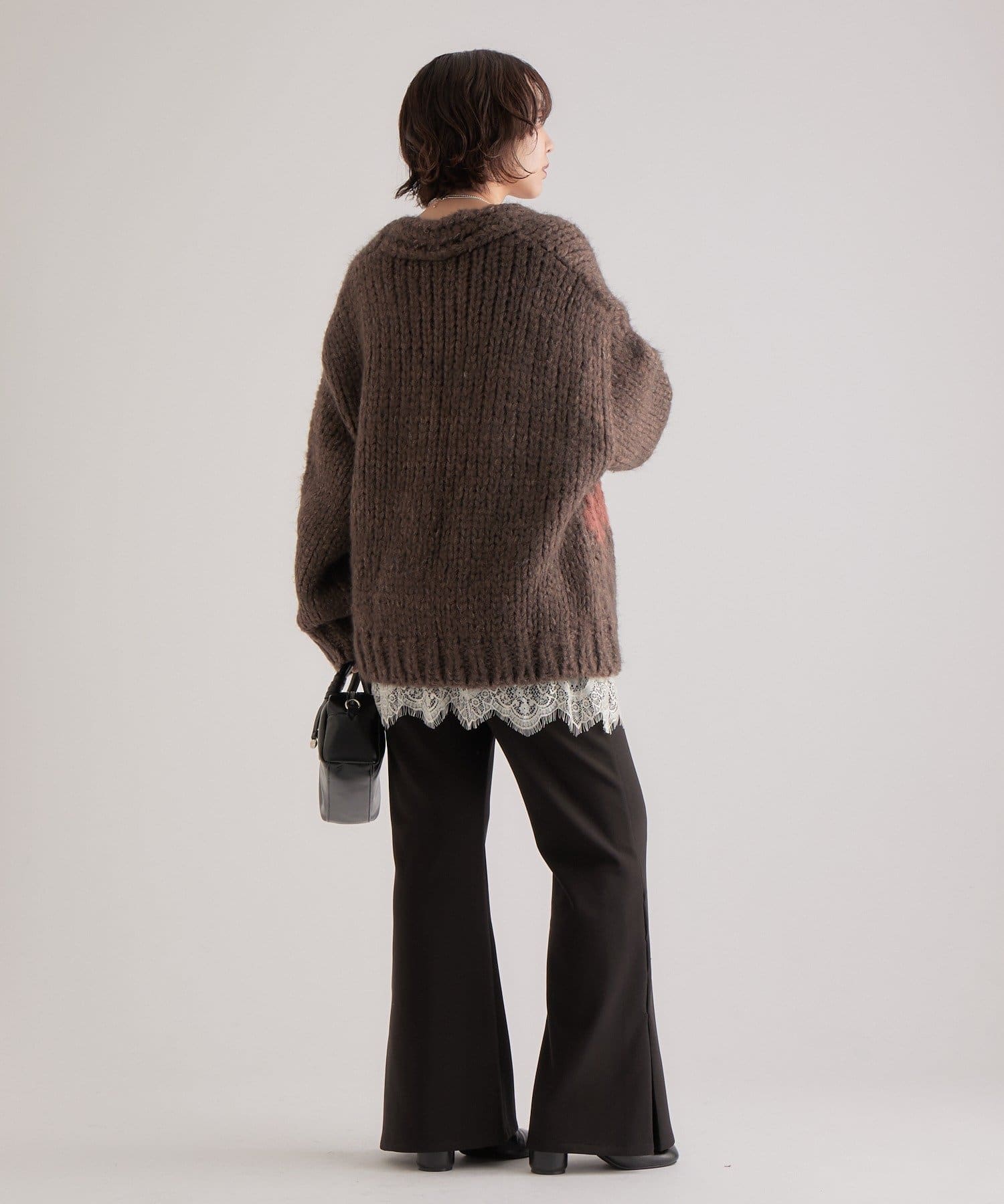 太めの毛糸でざっくり編みのカーディガンが登場。