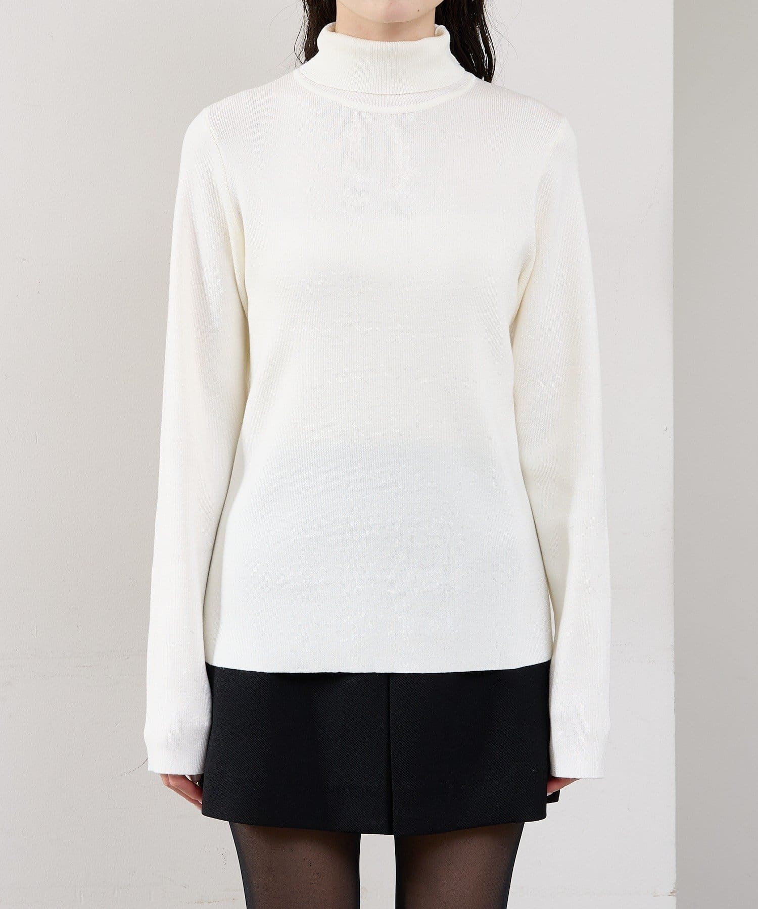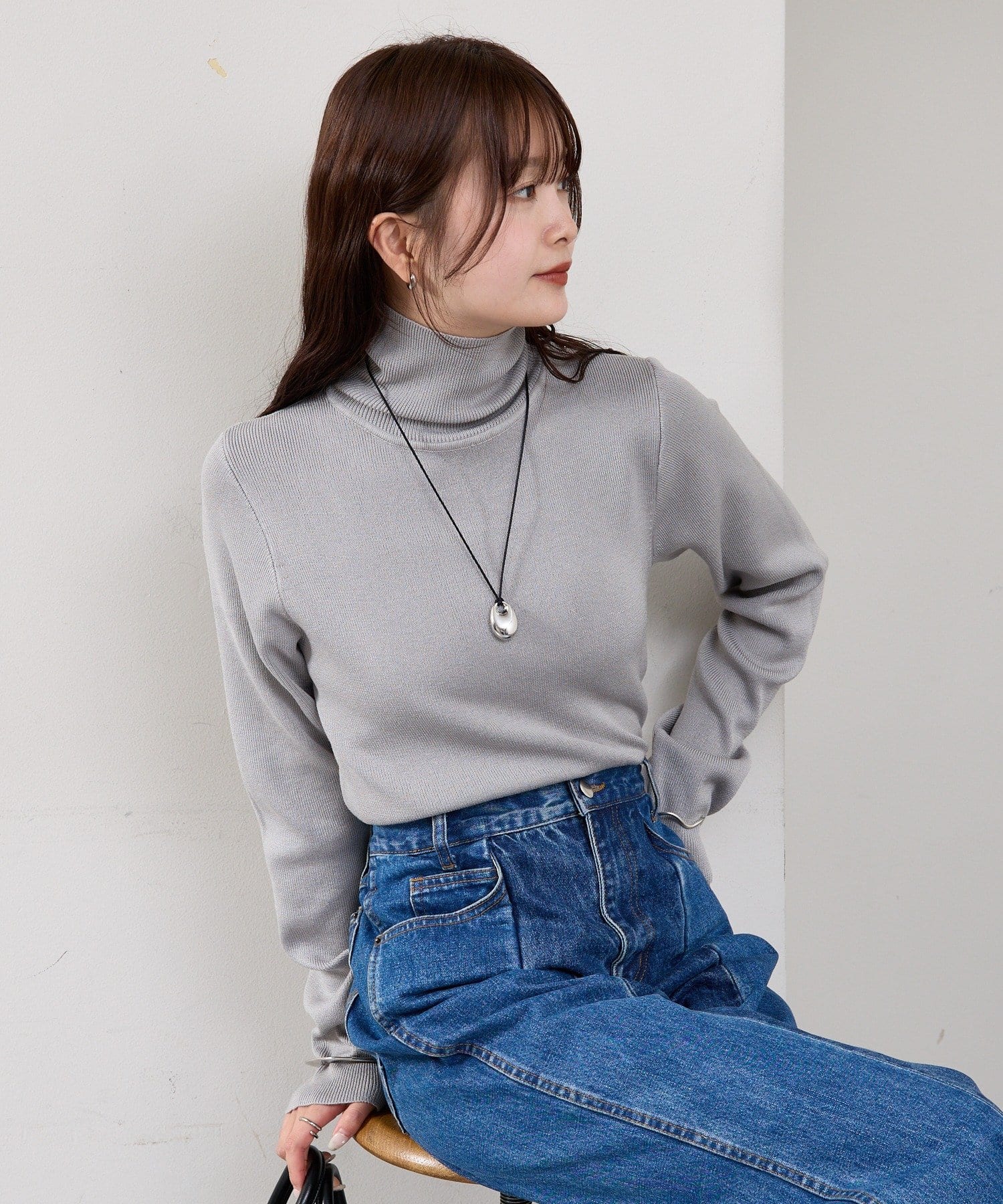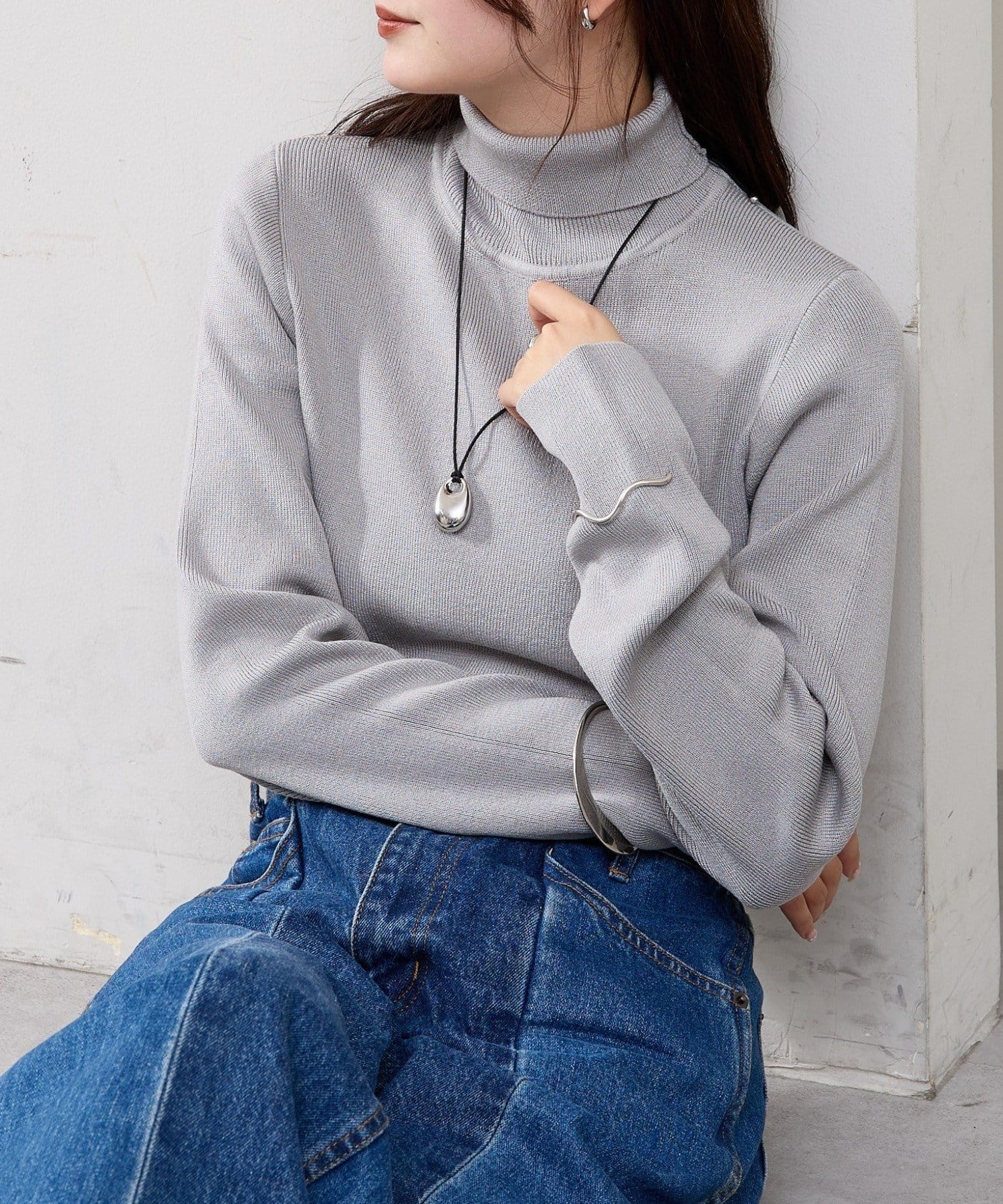 ・体のラインを拾いすぎないシルエットで、リラックスした着心地のタートルニット。