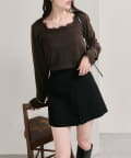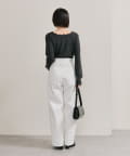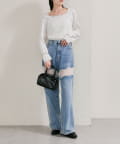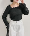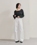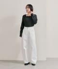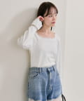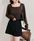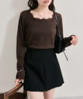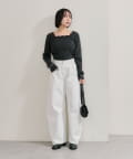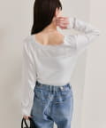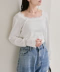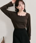 スクエアネックデザインで顔周りがスッキリ華奢見えします。